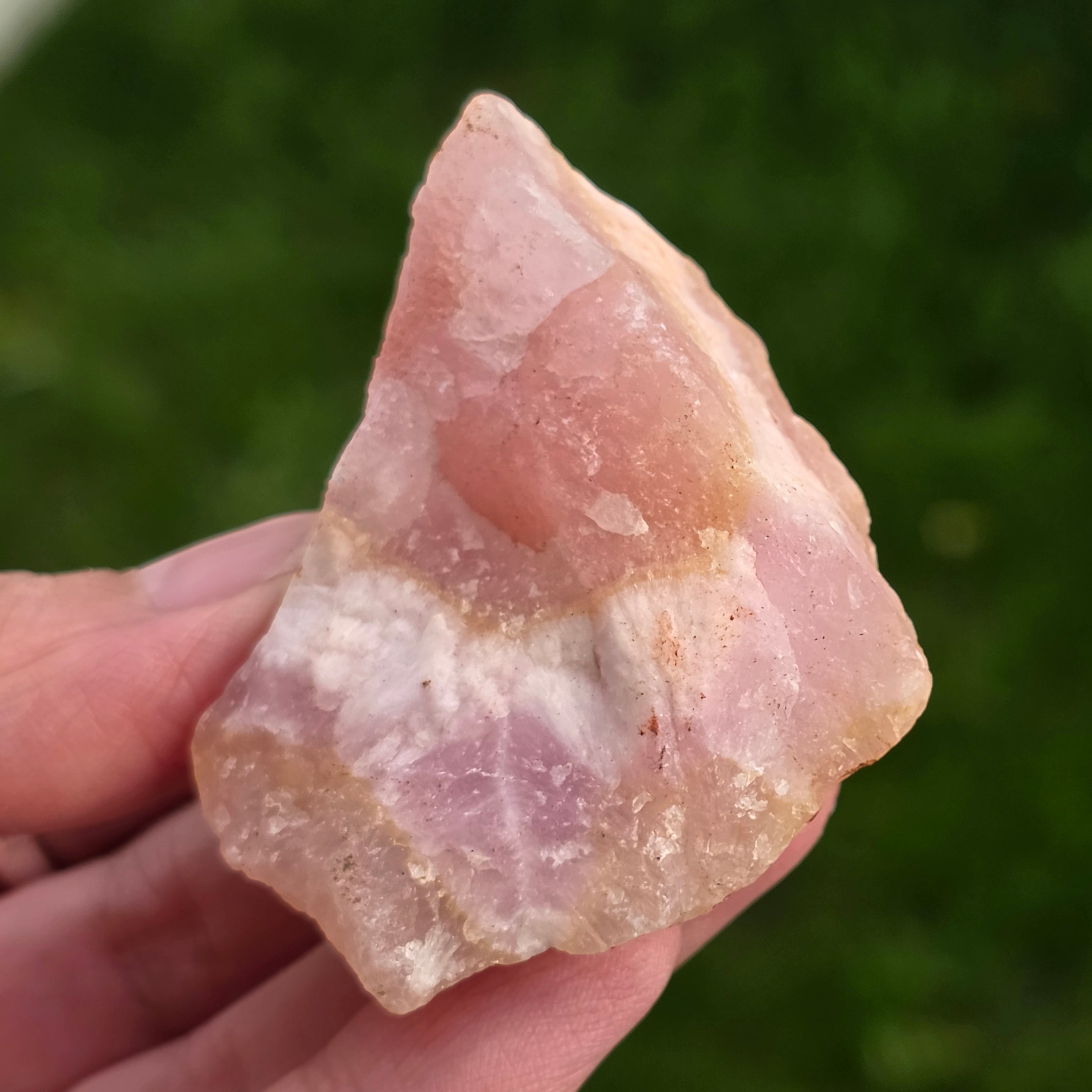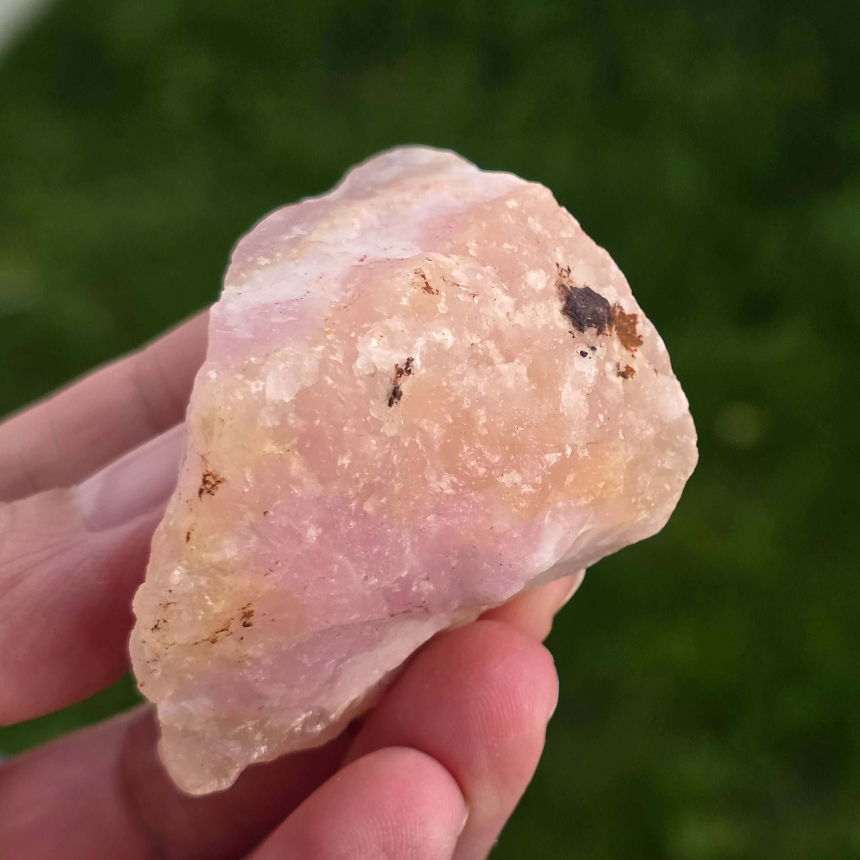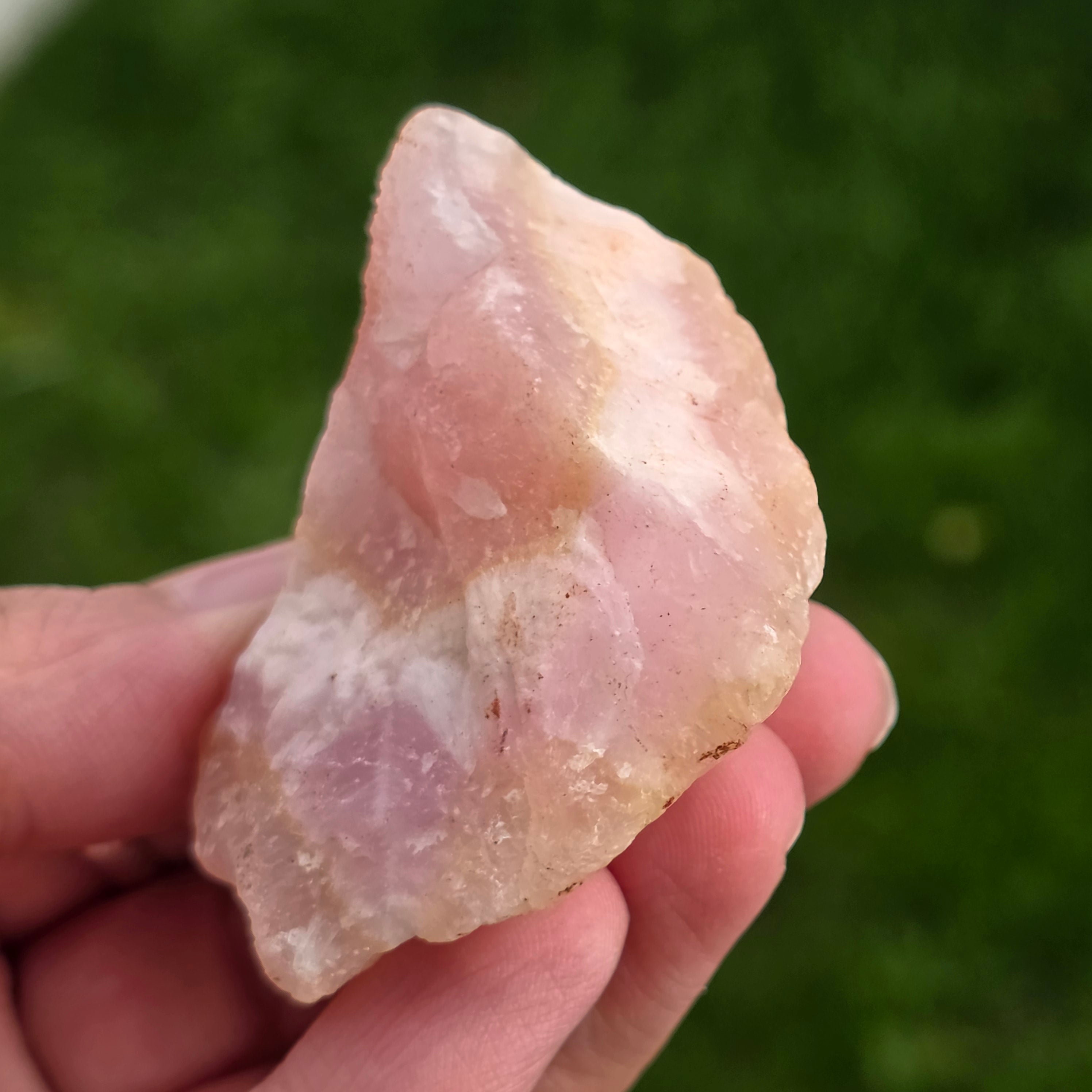 Розовият арагонит е рядък полускъпоценен камък. Състои се от калциев карбонат и има розово-оранжев цвят поради примеси на желязо.