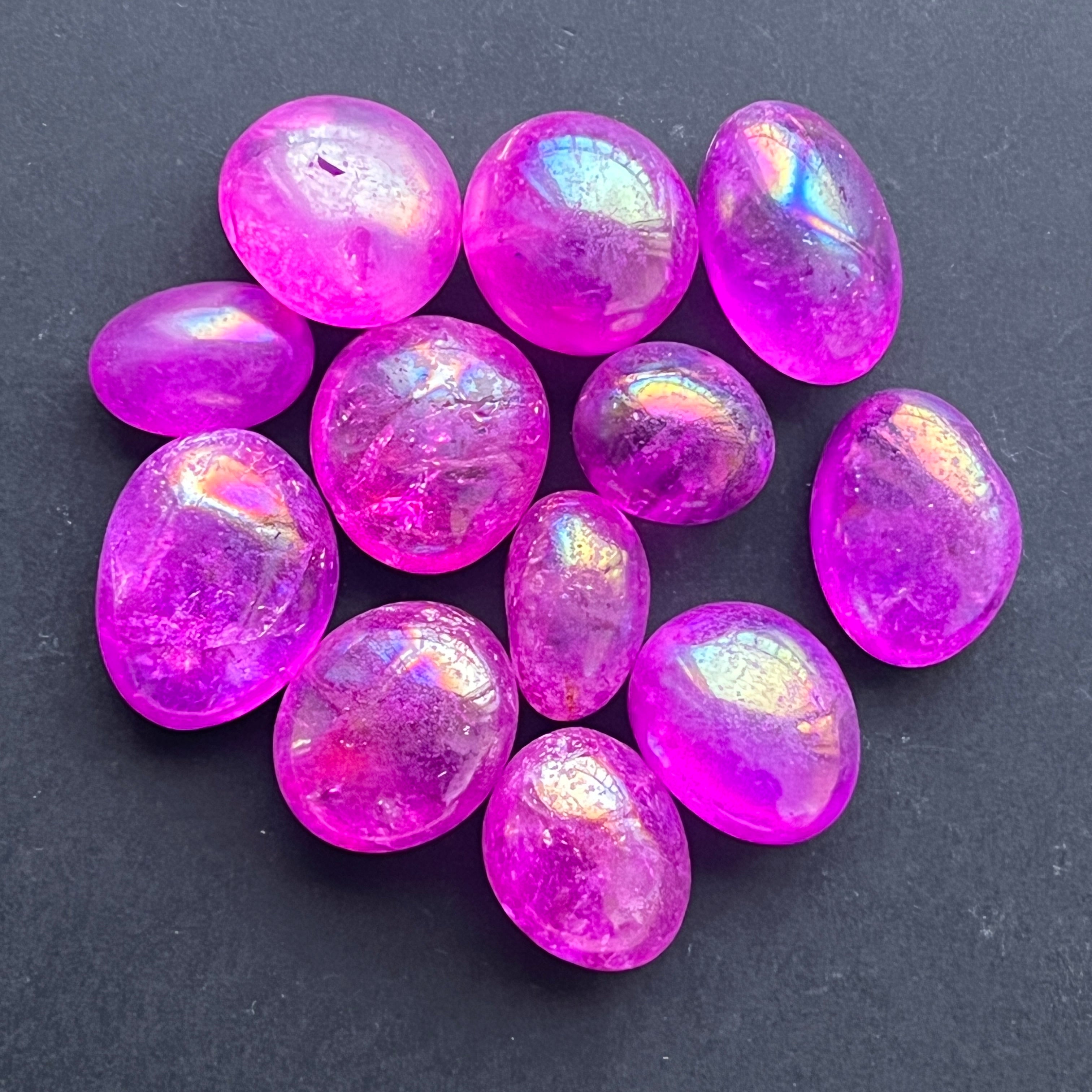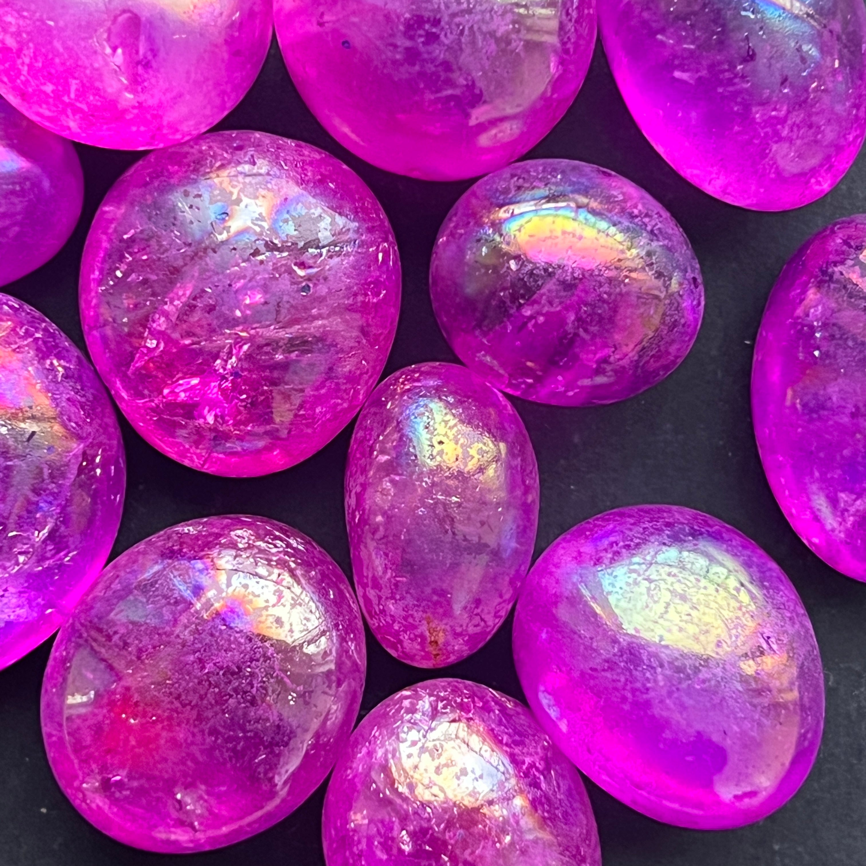 Този вид кварц е оцветен чрез процес, известен като аура покритие, за да се усилят иризираните отражения и енергията на кристала.