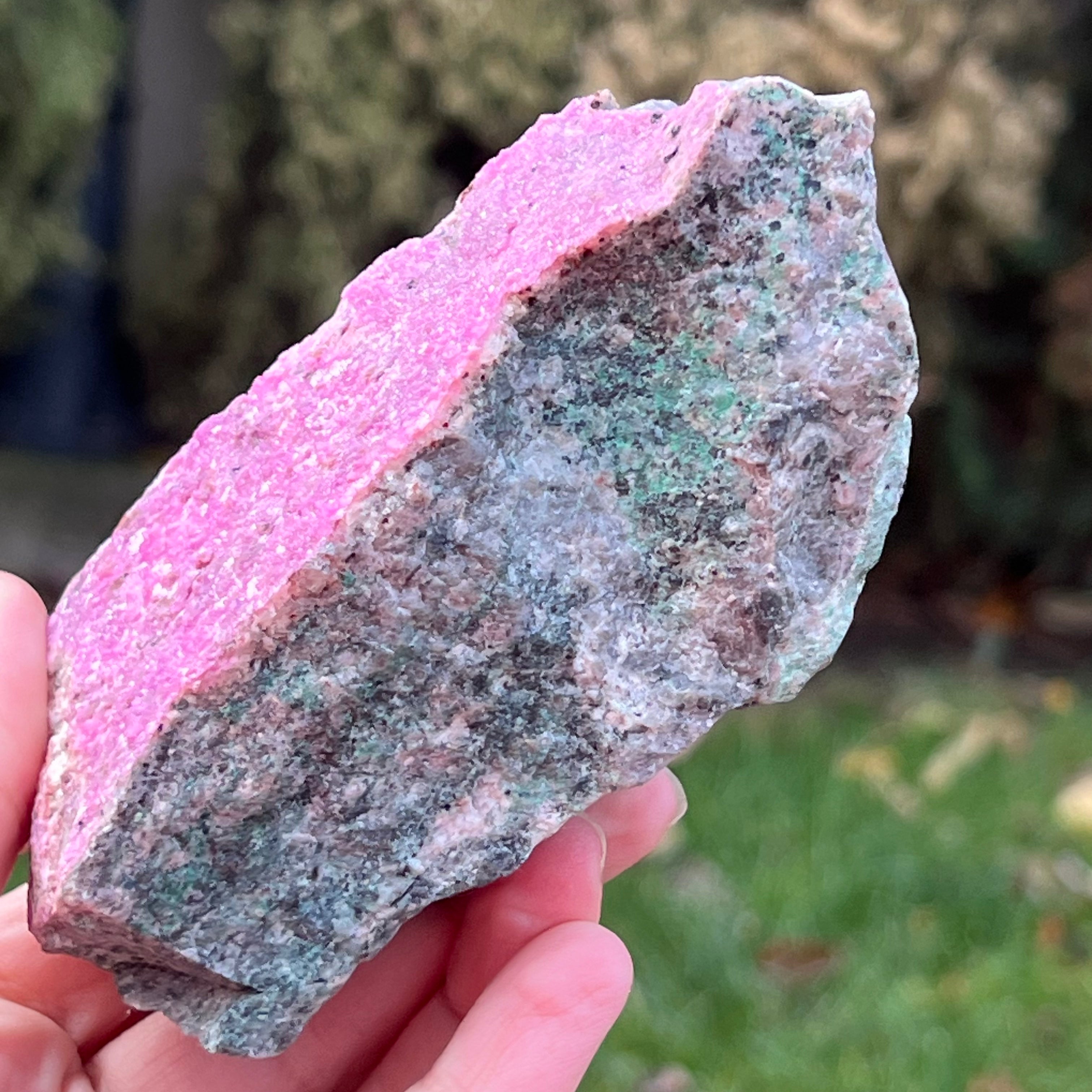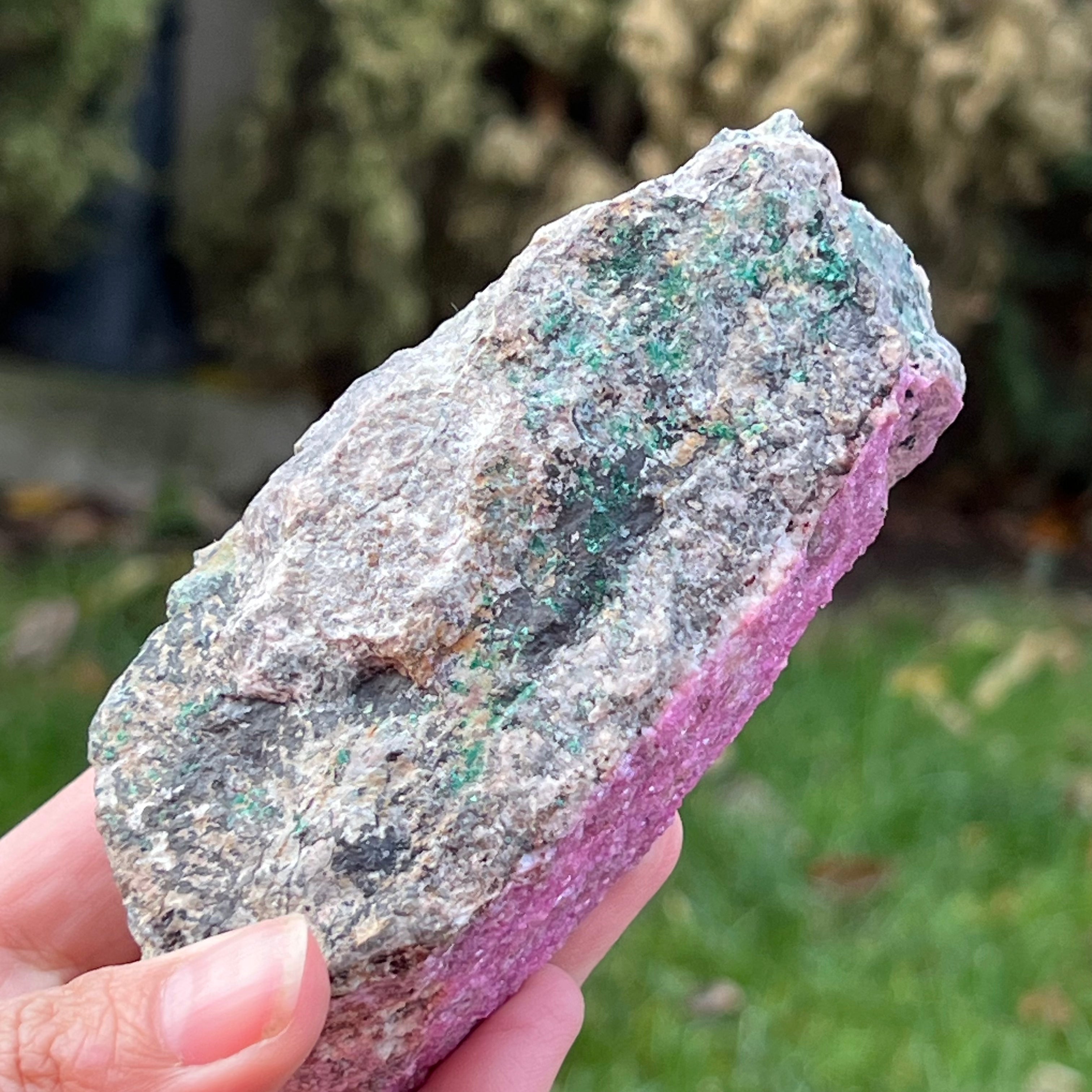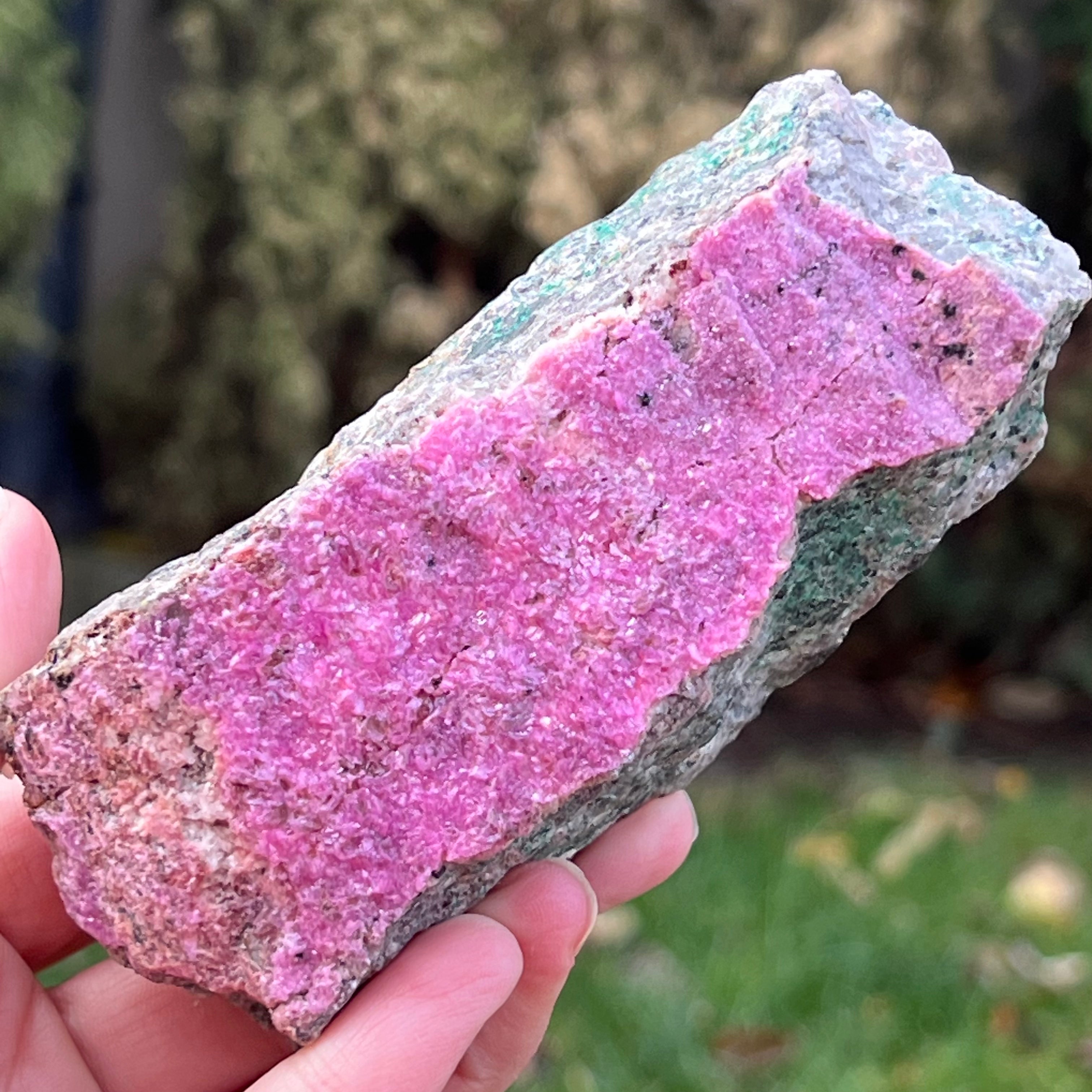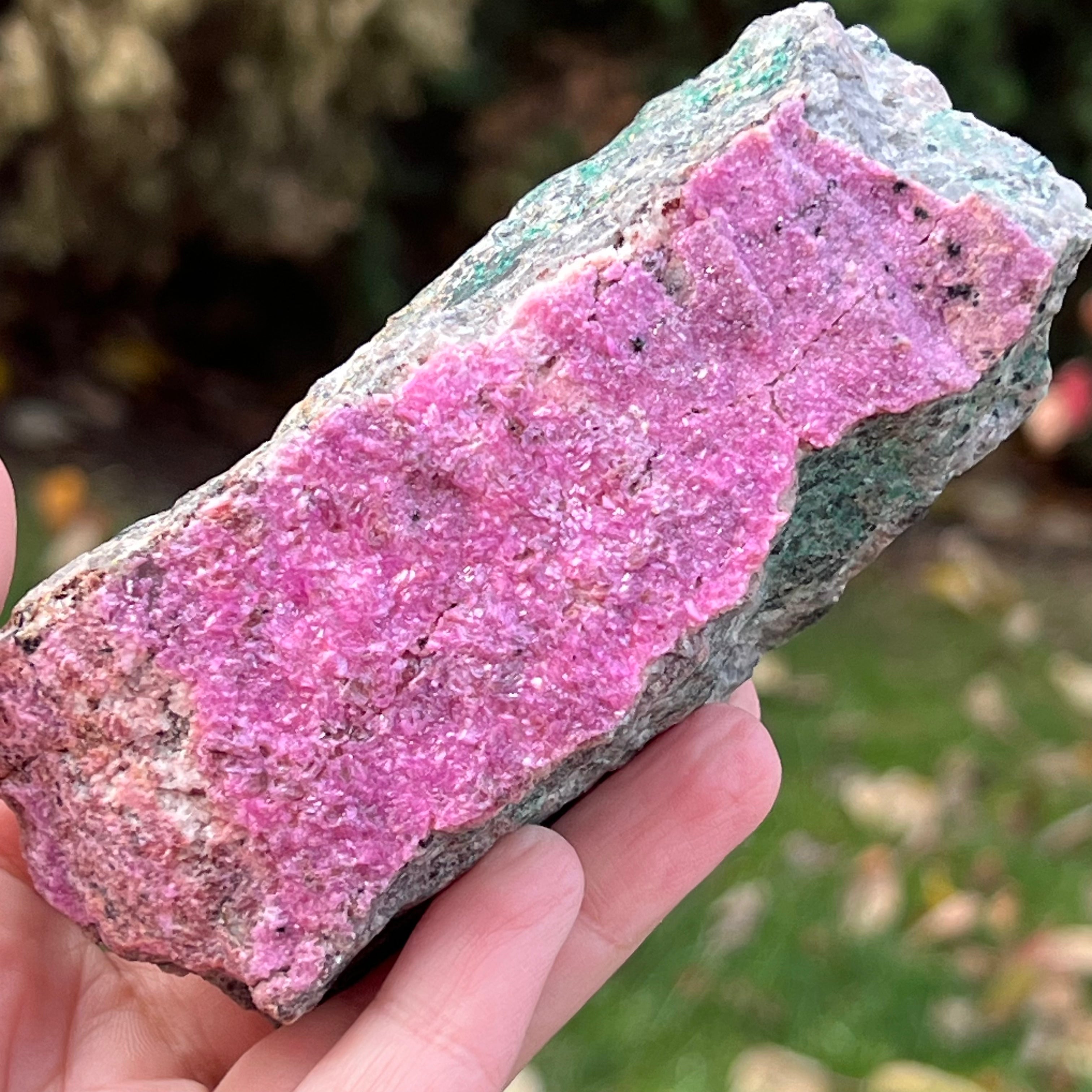 Розов доломит Salrose с вмъквания от малахит, необработен камък m4, размер: 12 * 5 * 5.2 см