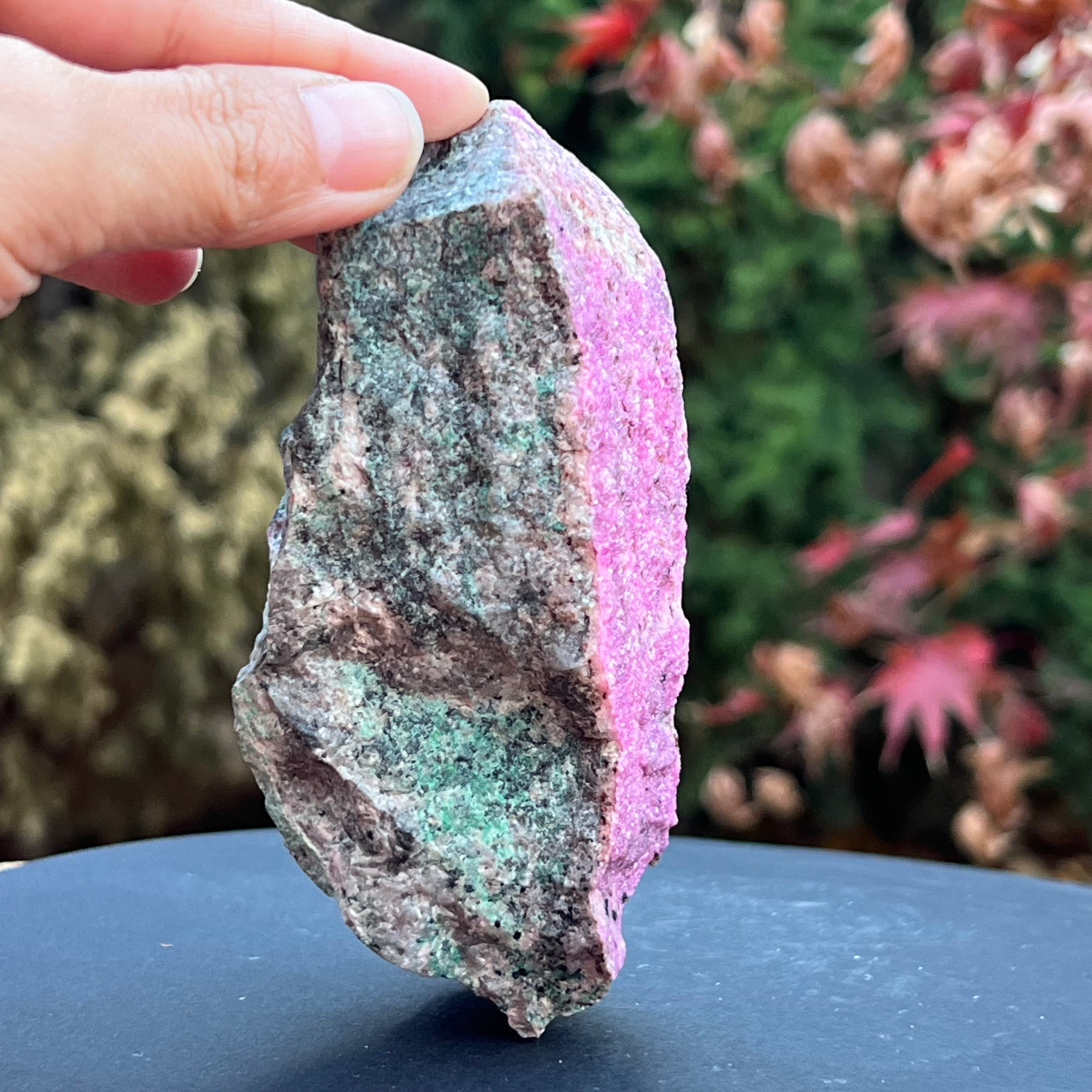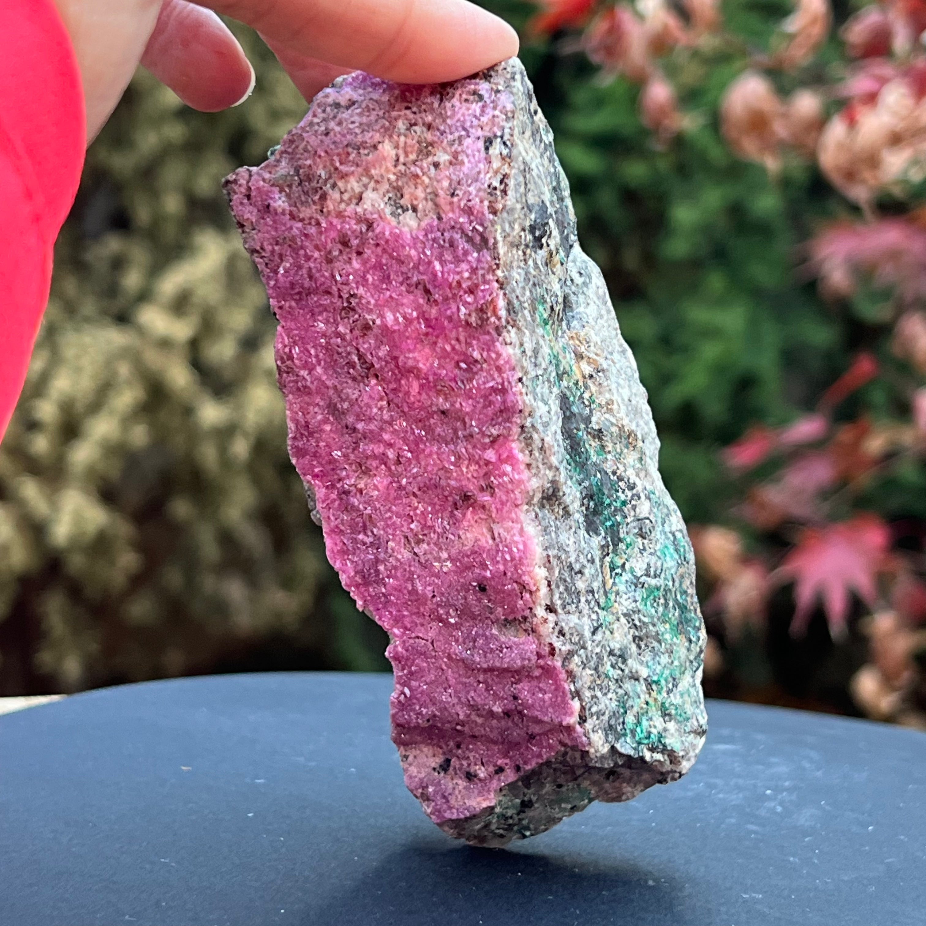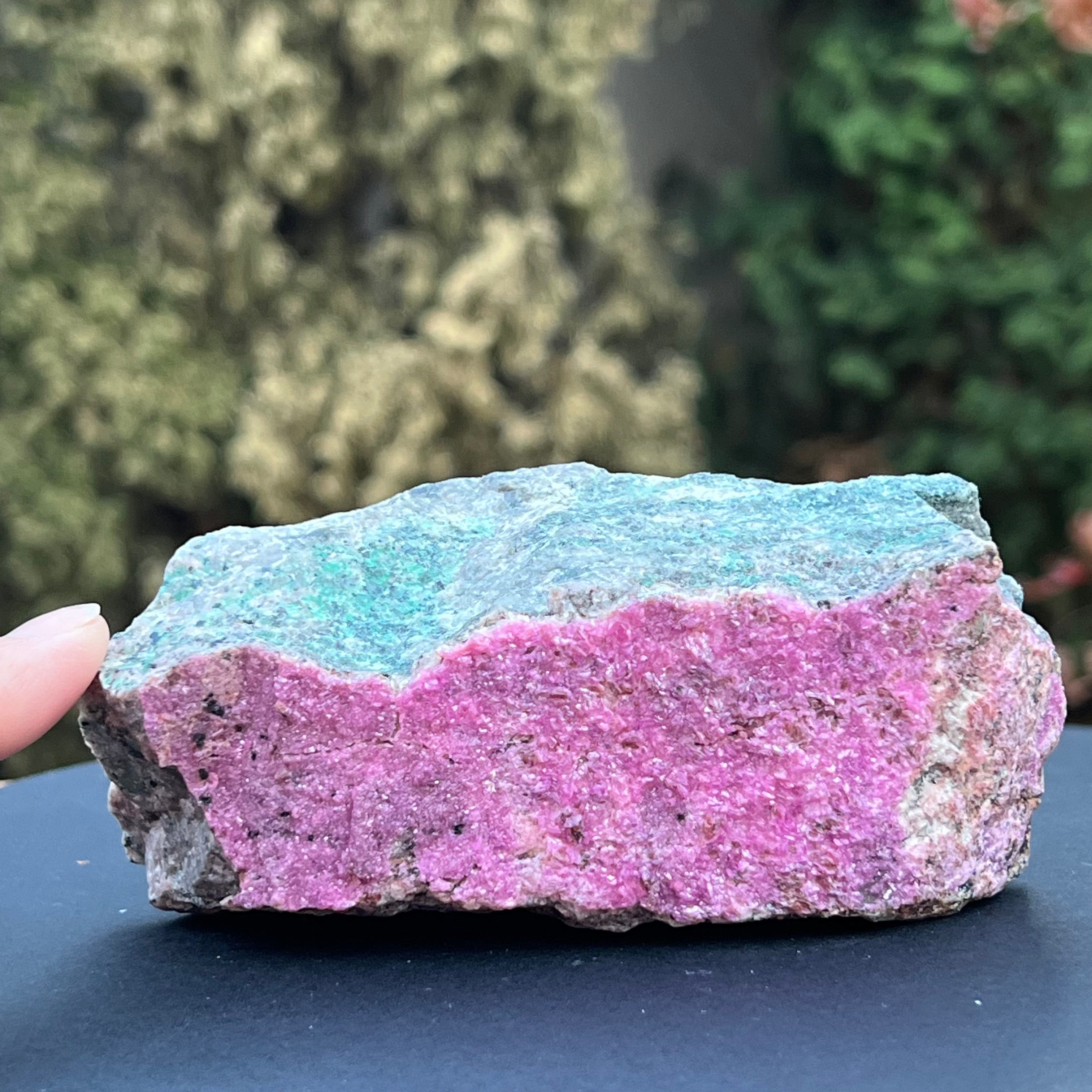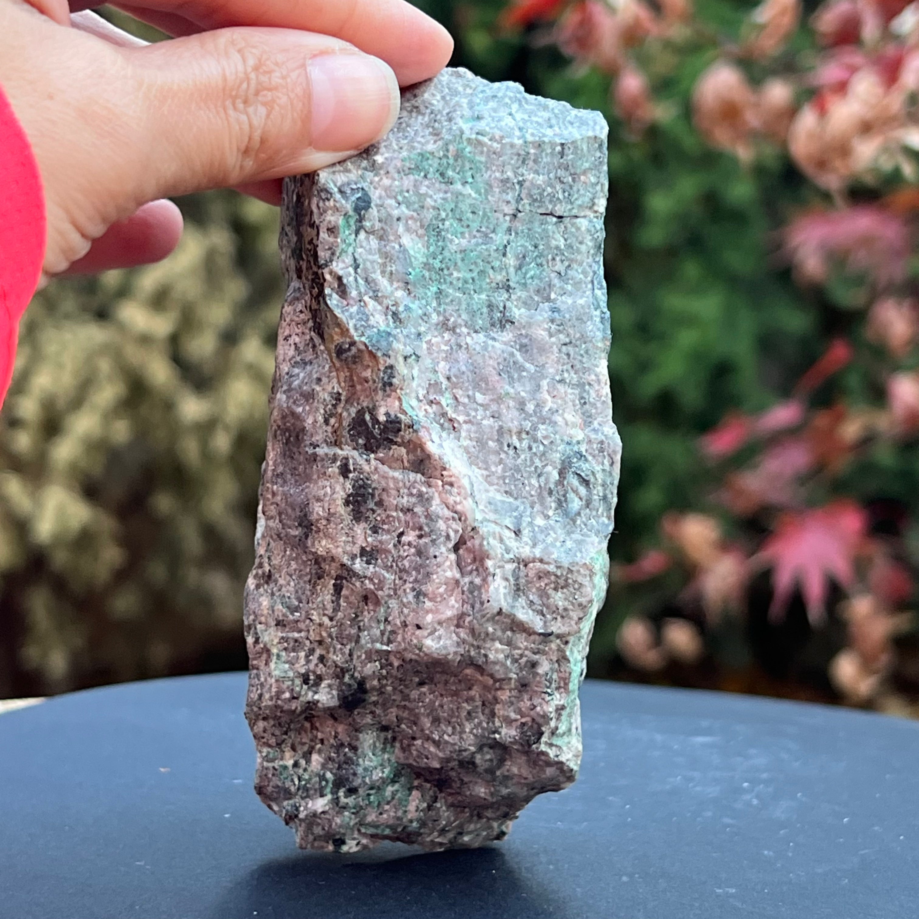 Розов доломит Salrose с вмъквания от малахит, необработен камък m4, размер: 12 * 5 * 5.2 см