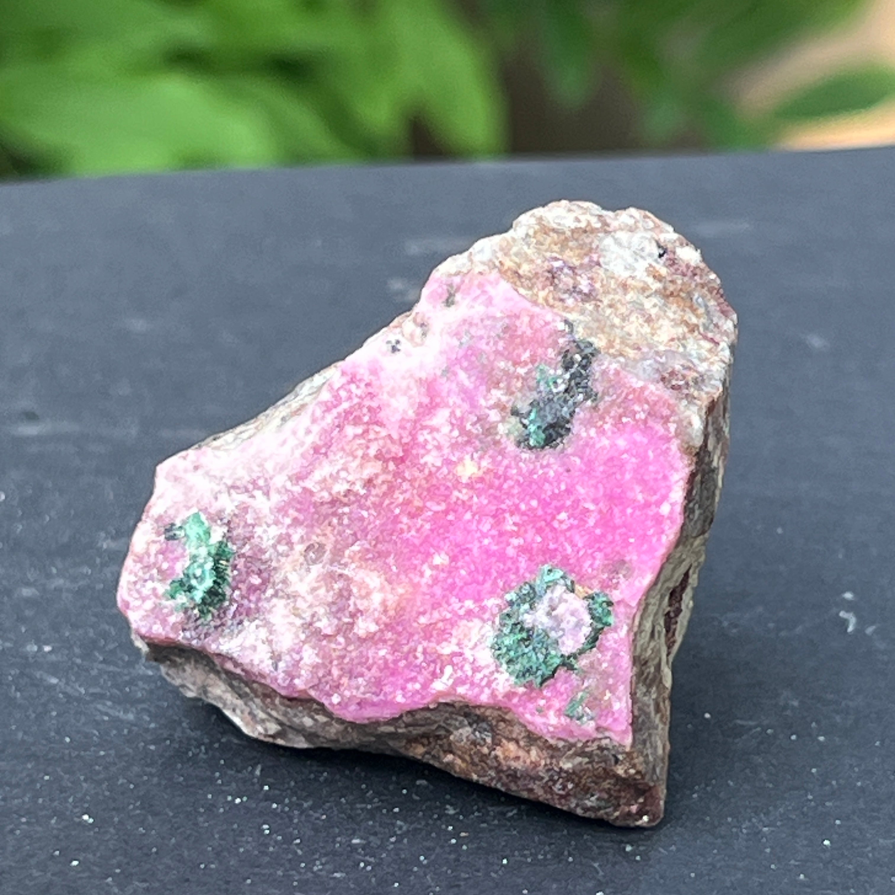 Розов доломит Salrose с малахитови вмъквания, необработен камък m31