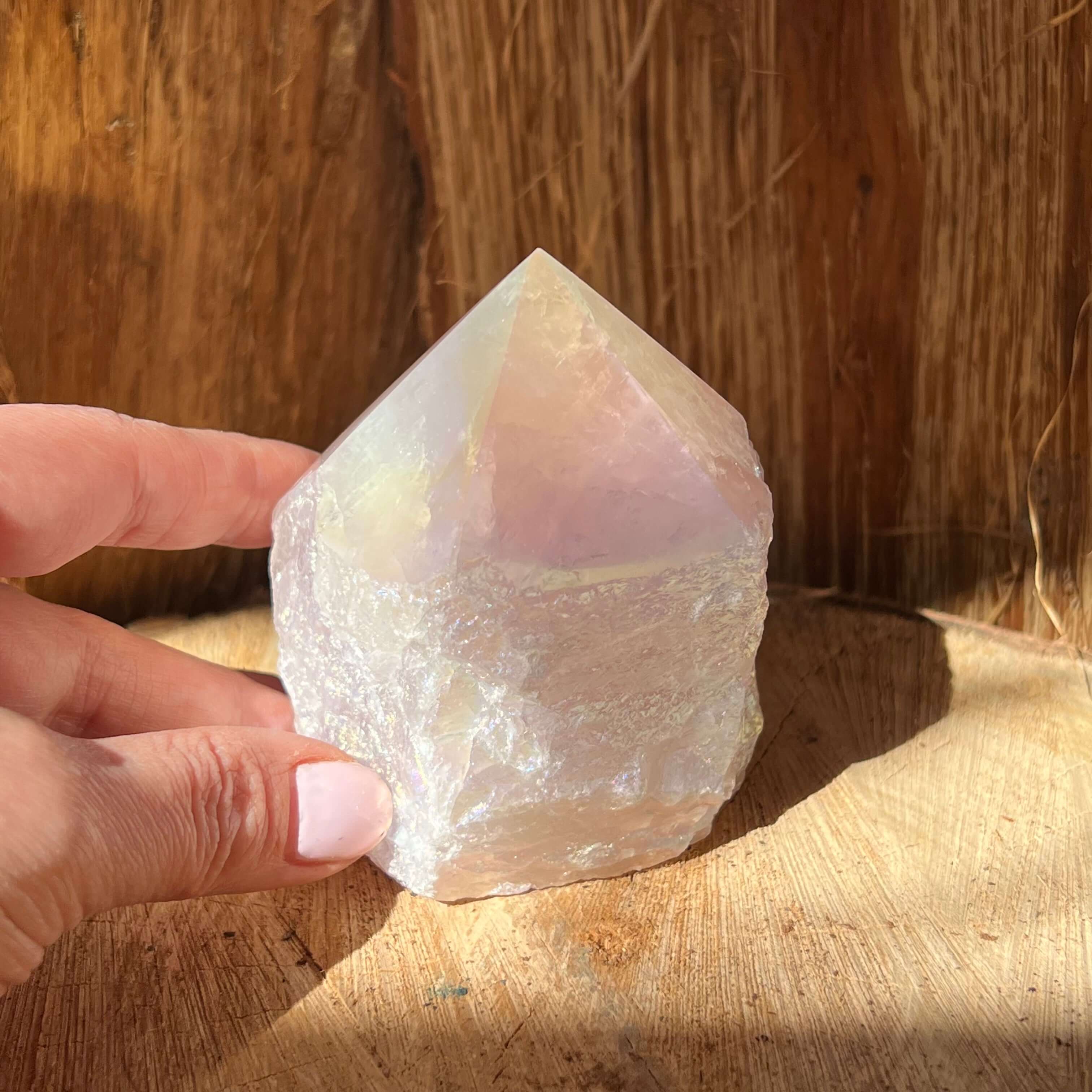 Розов кварцов връх генератор аура модел 1, размер: 8 см, 410-430 грама