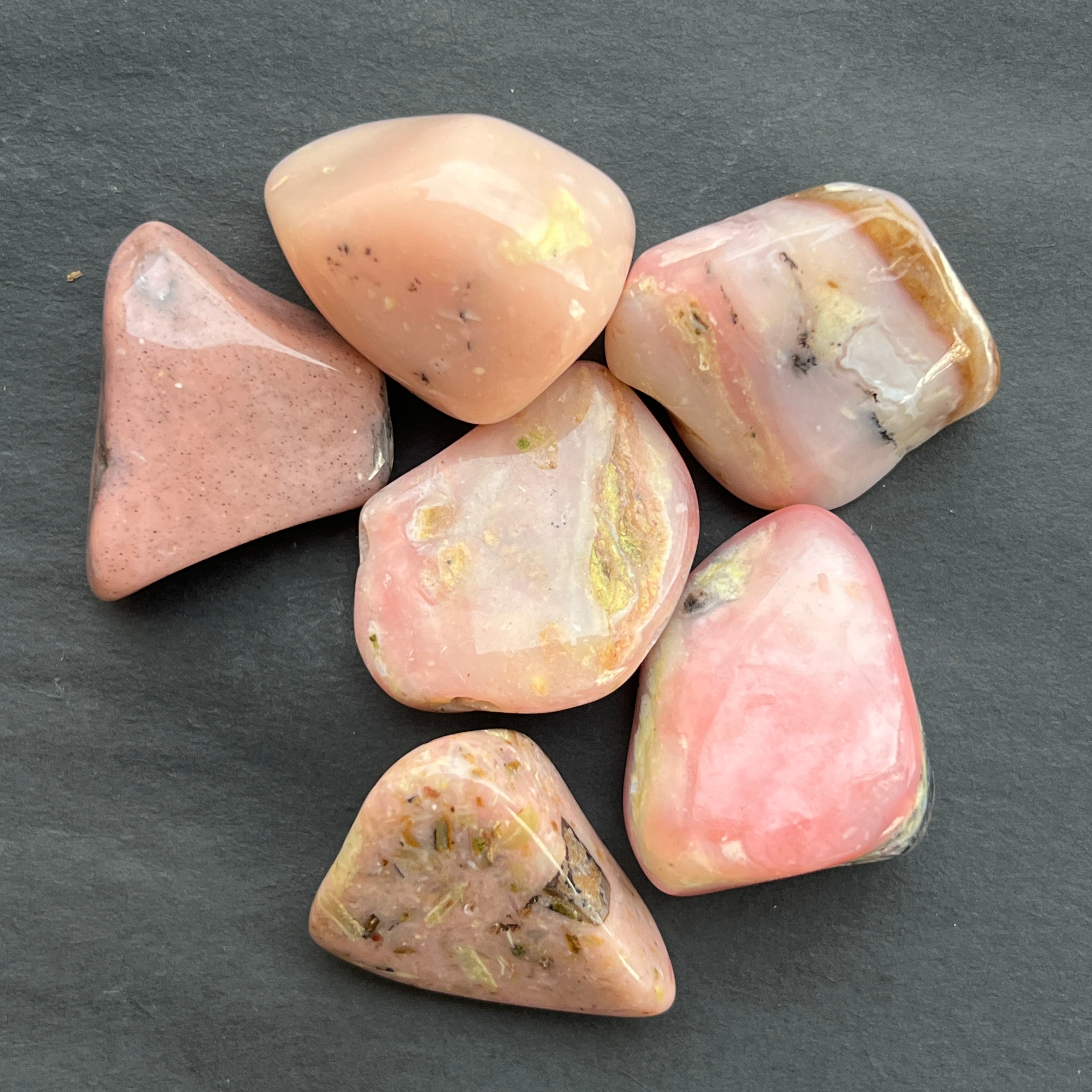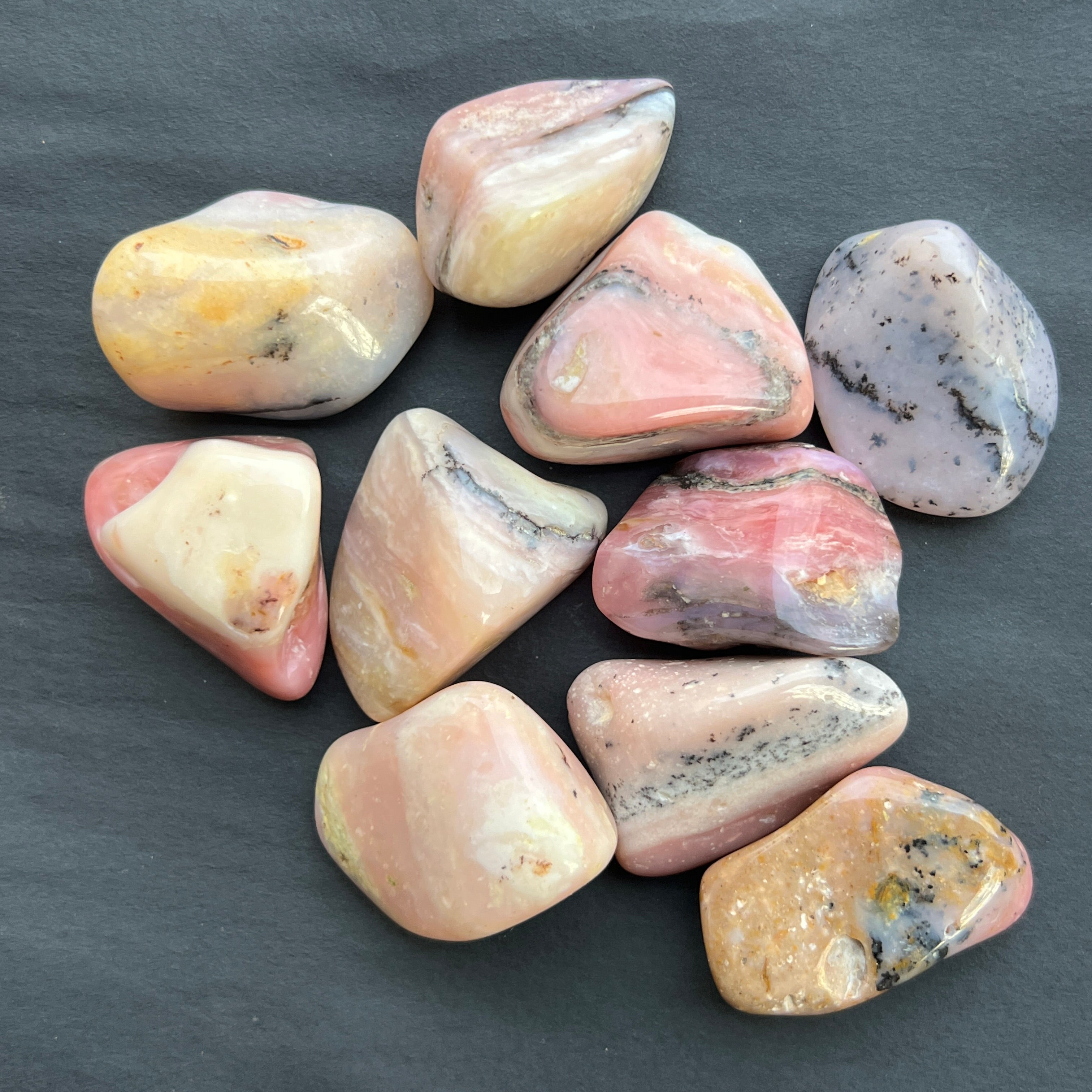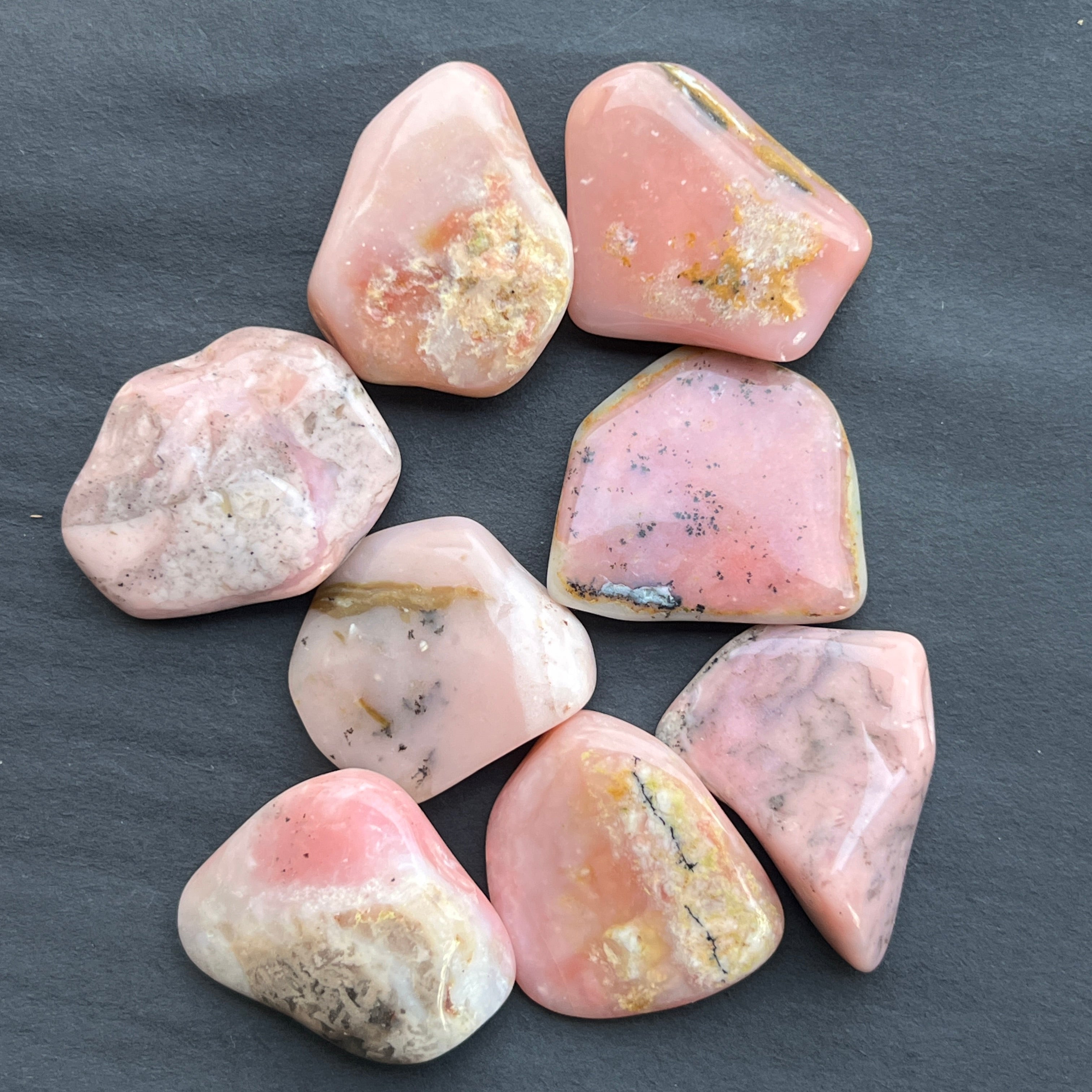 Розовият опал е разновидност на опала, ценена заради нежните си пастелни розови нюанси. Този тип опал основно идва от Перу, една от малкото източници на розов опал в света. Характерният му цвят варира от светлорозово до по-интензивни тонове на сьомгово розово, понякога с деликатни ивици или полупрозрачна мъглявина.