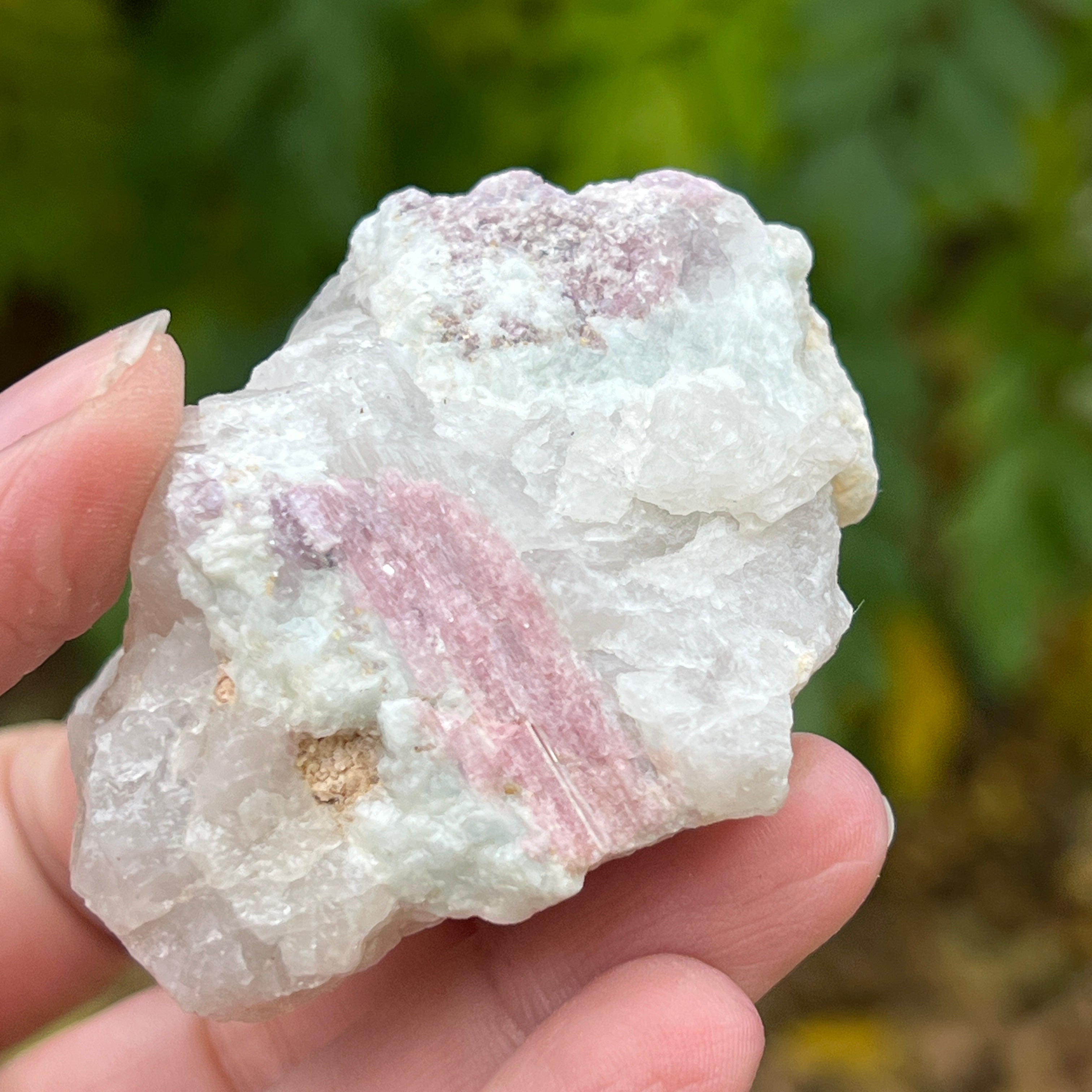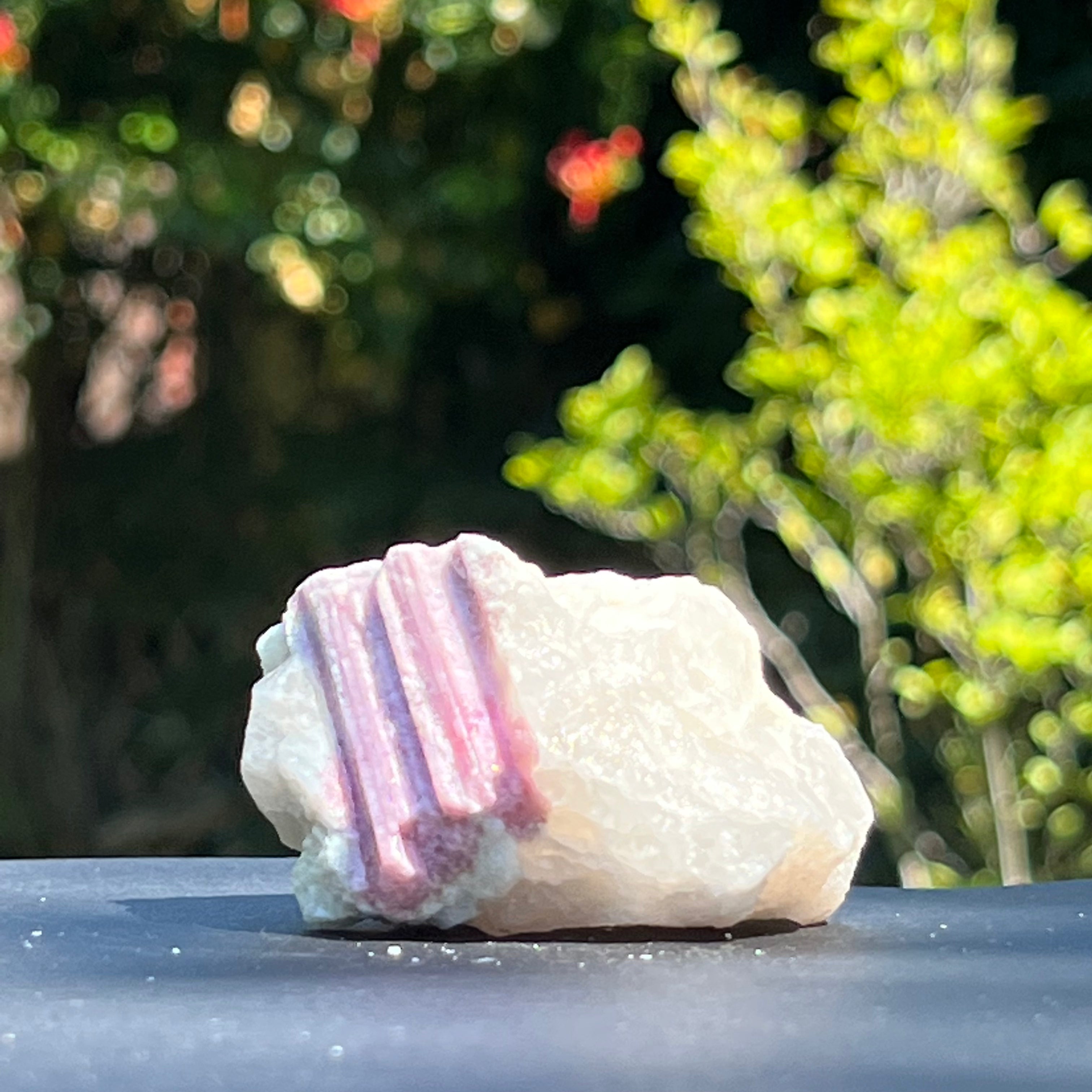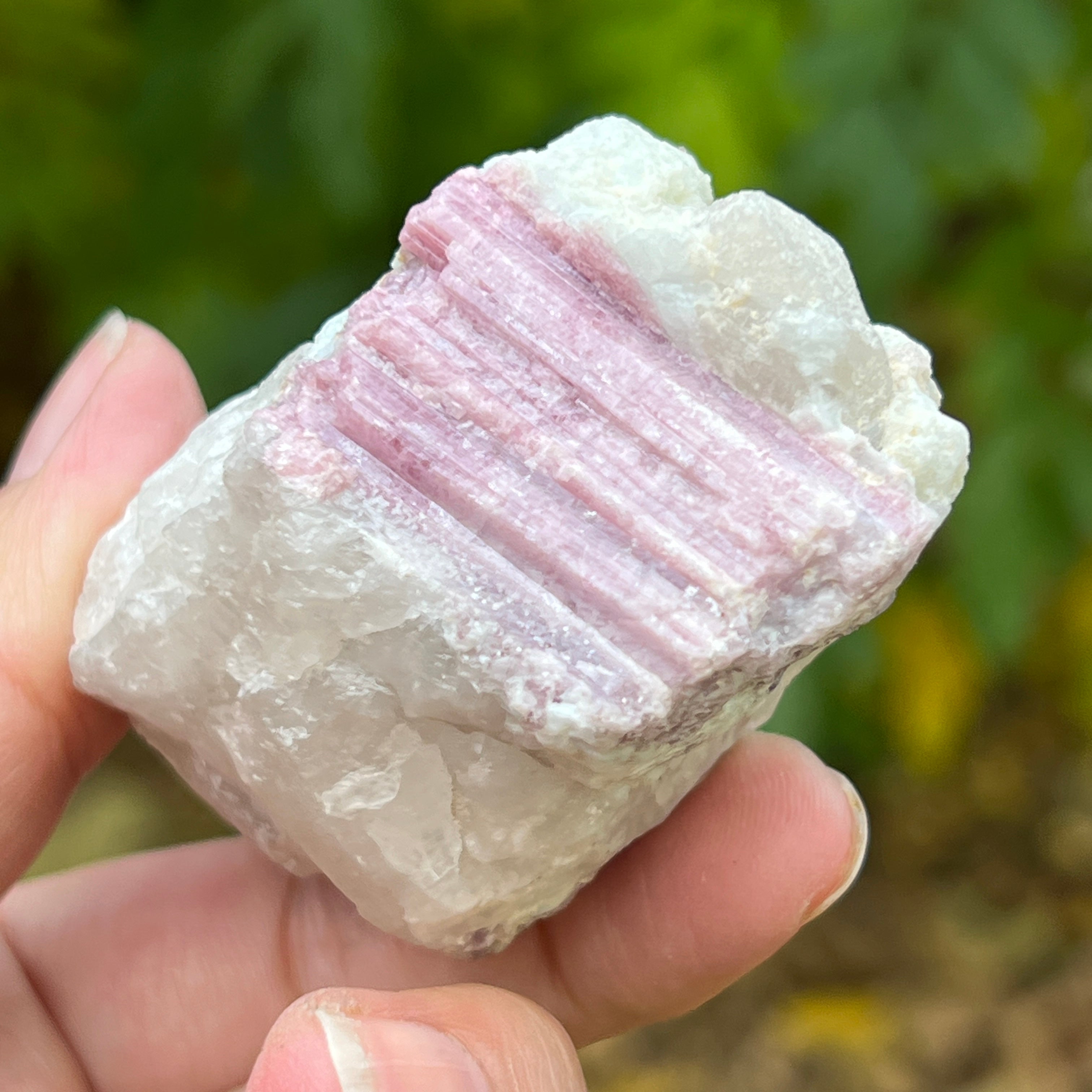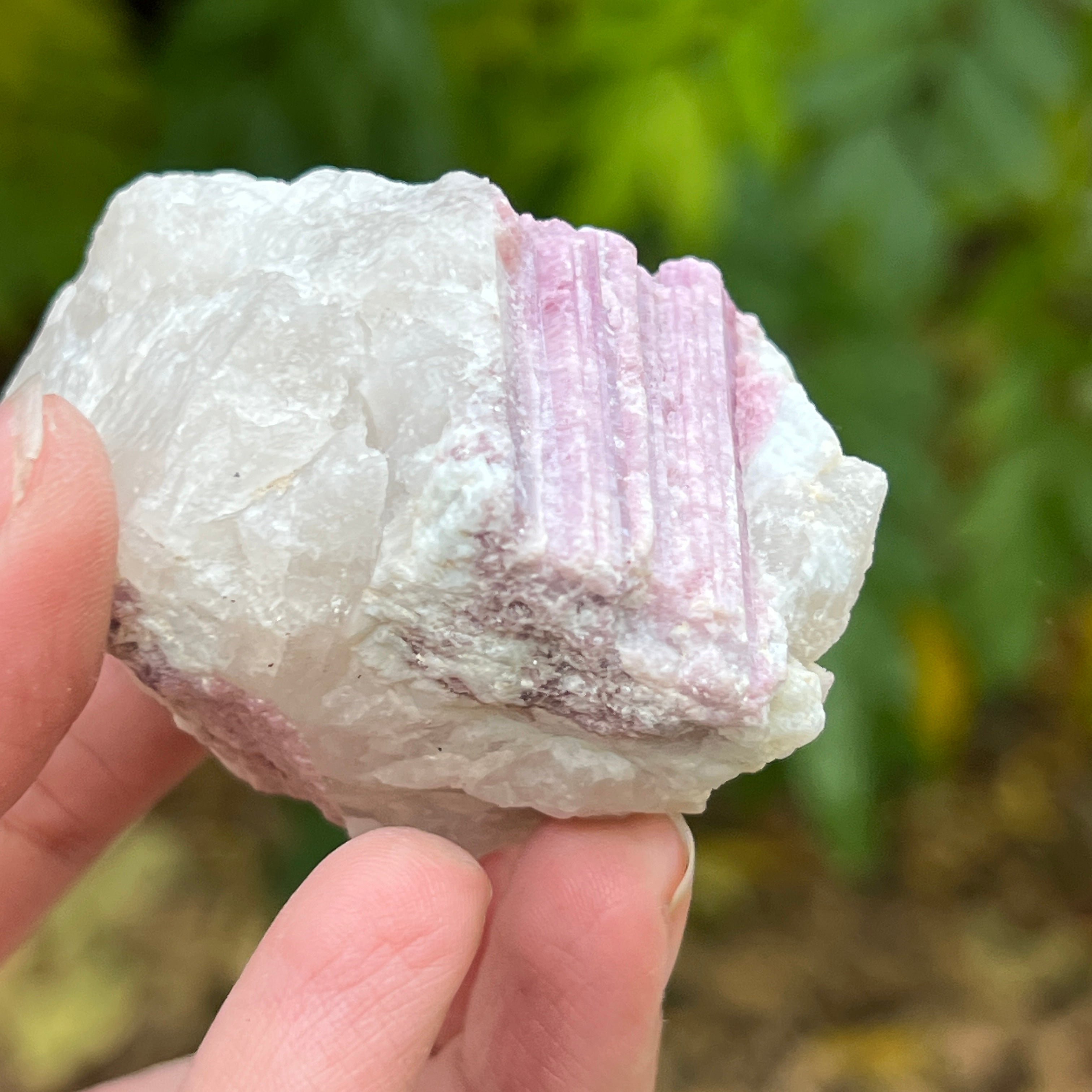 Розовият турмалин е свързан с енергията на сърцето и се счита за камък с успокояващи свойства, емоционално изцеление, насърчаване на любовта към себе си и хармоничните отношения.