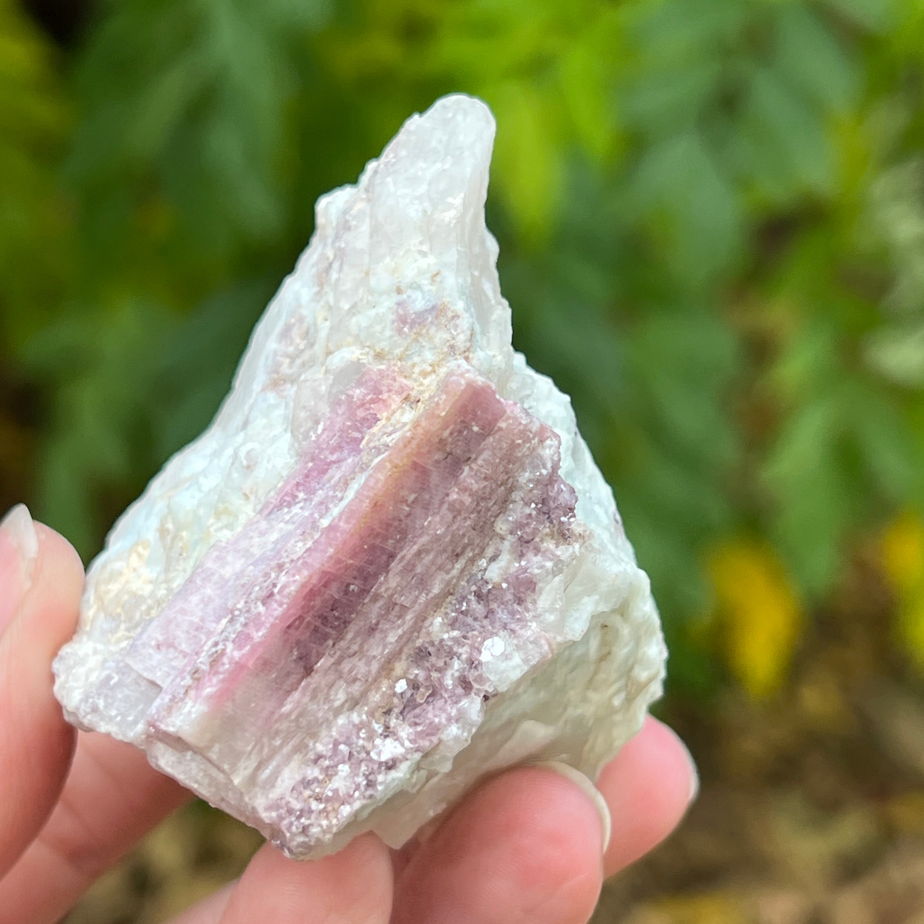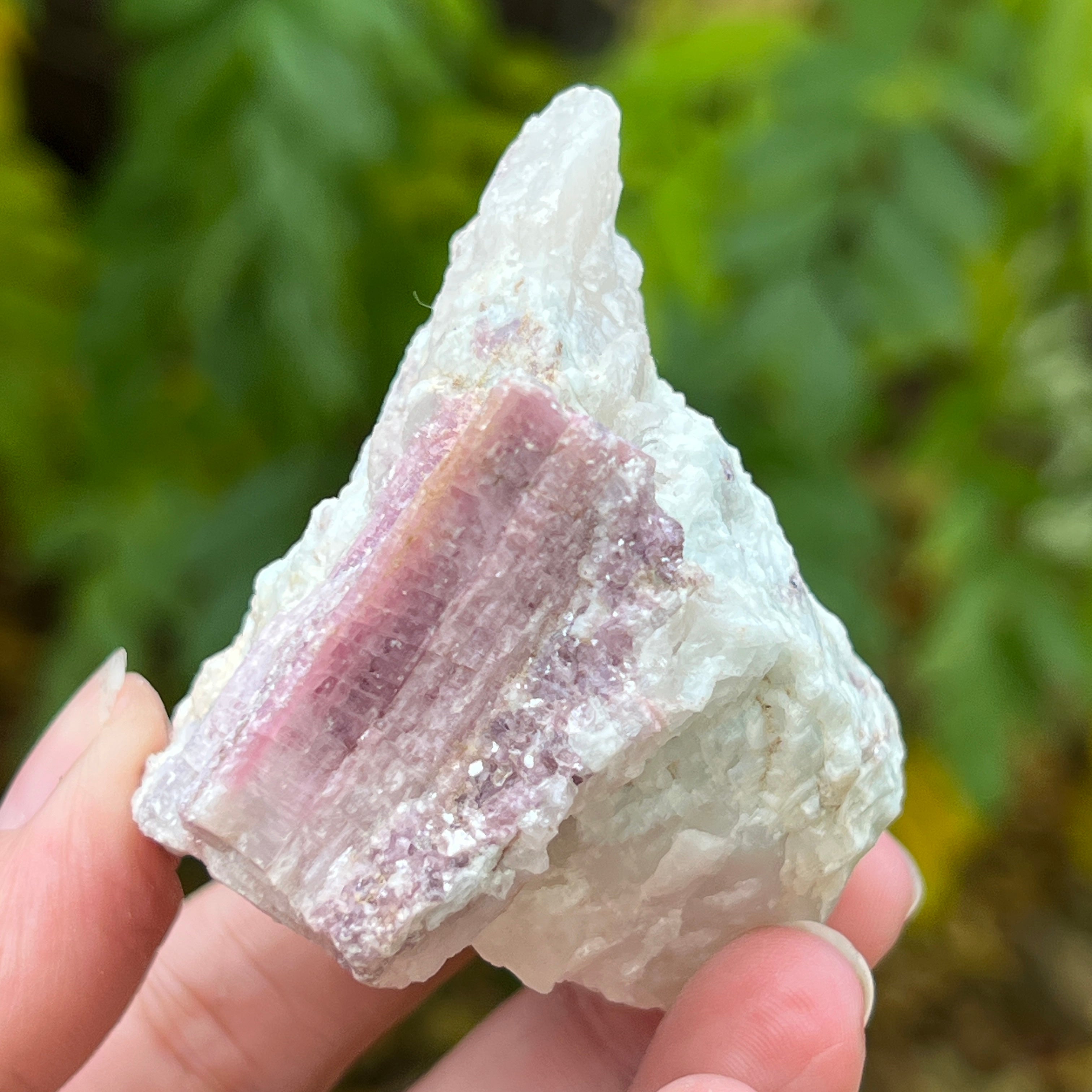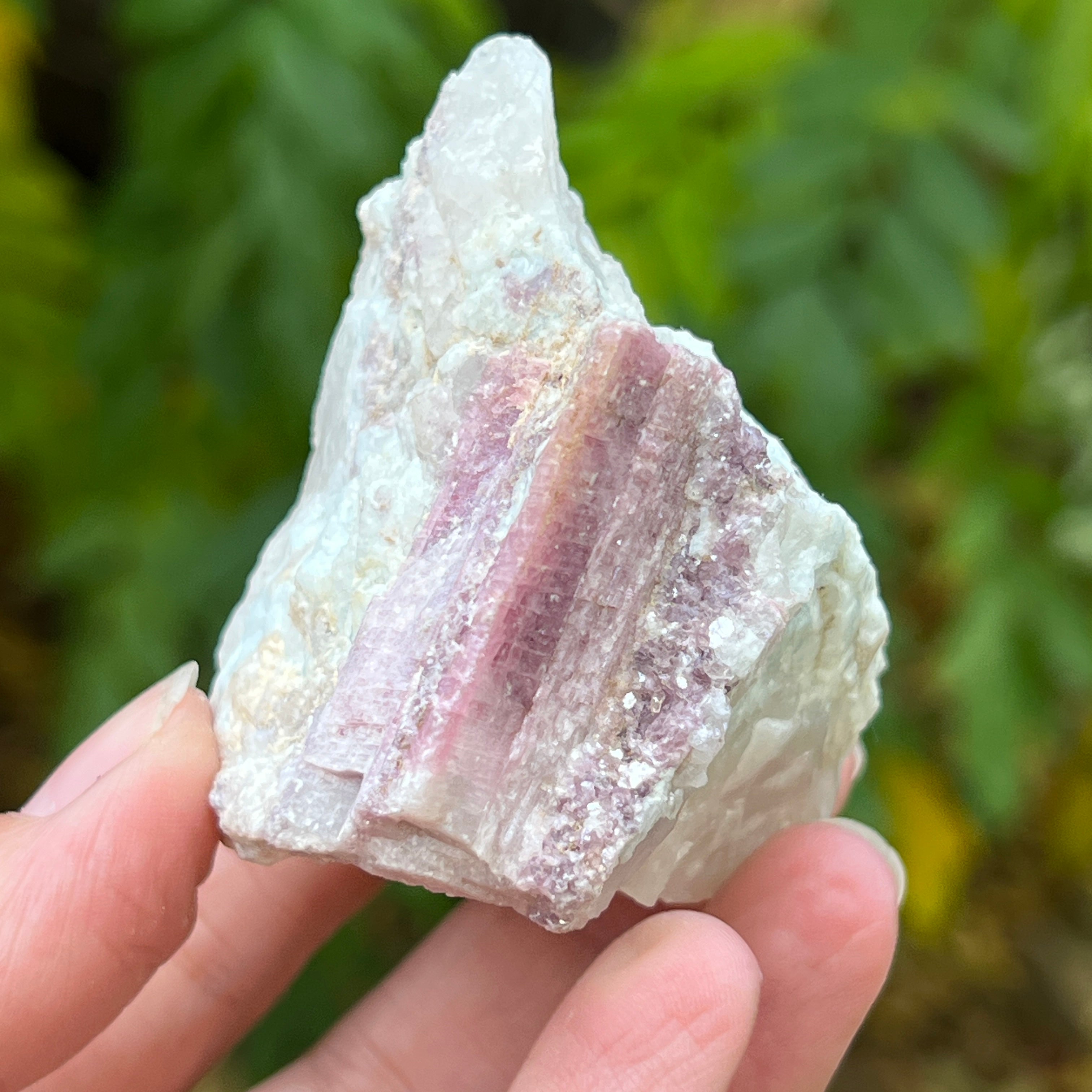 Розовият турмалин е свързан с енергията на сърцето и се счита за камък с успокояващи свойства, емоционално изцеление, насърчаване на любовта към себе си и хармоничните отношения.