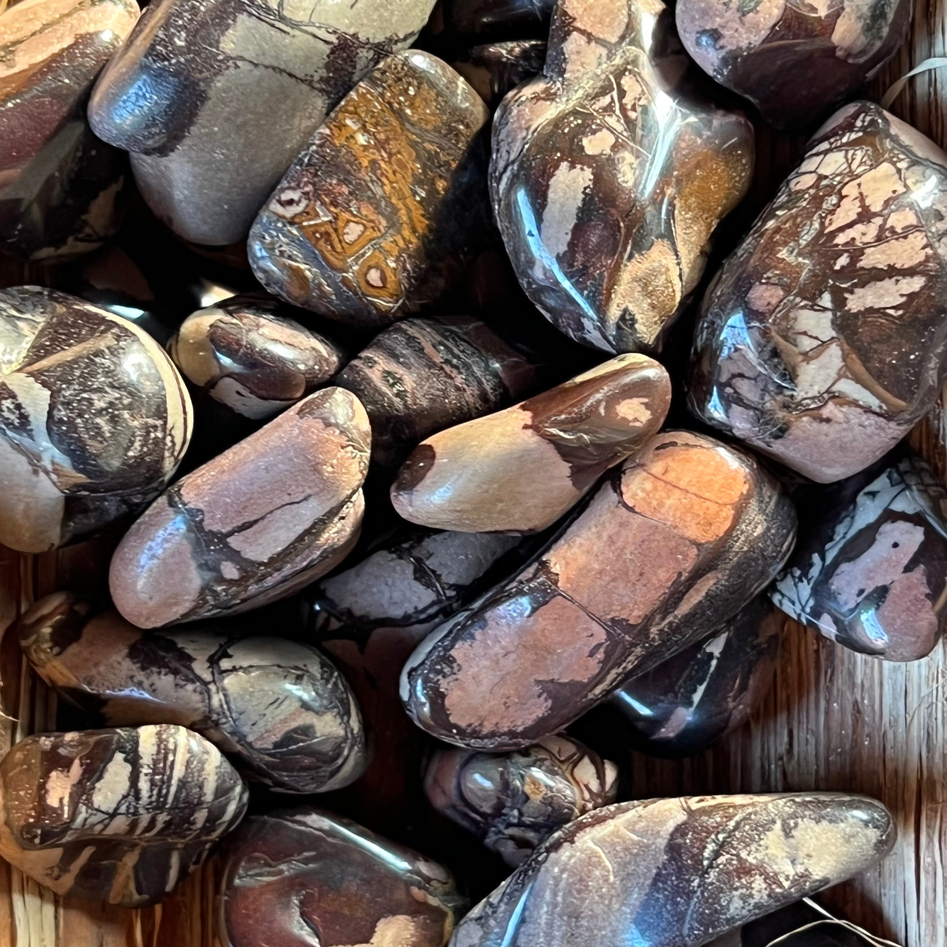 Розов яспис паяжина, търкана камък - търкани камъни, размери между 2-4 см. Цената варира в зависимост от размера на камъка, моля изберете желания размер.