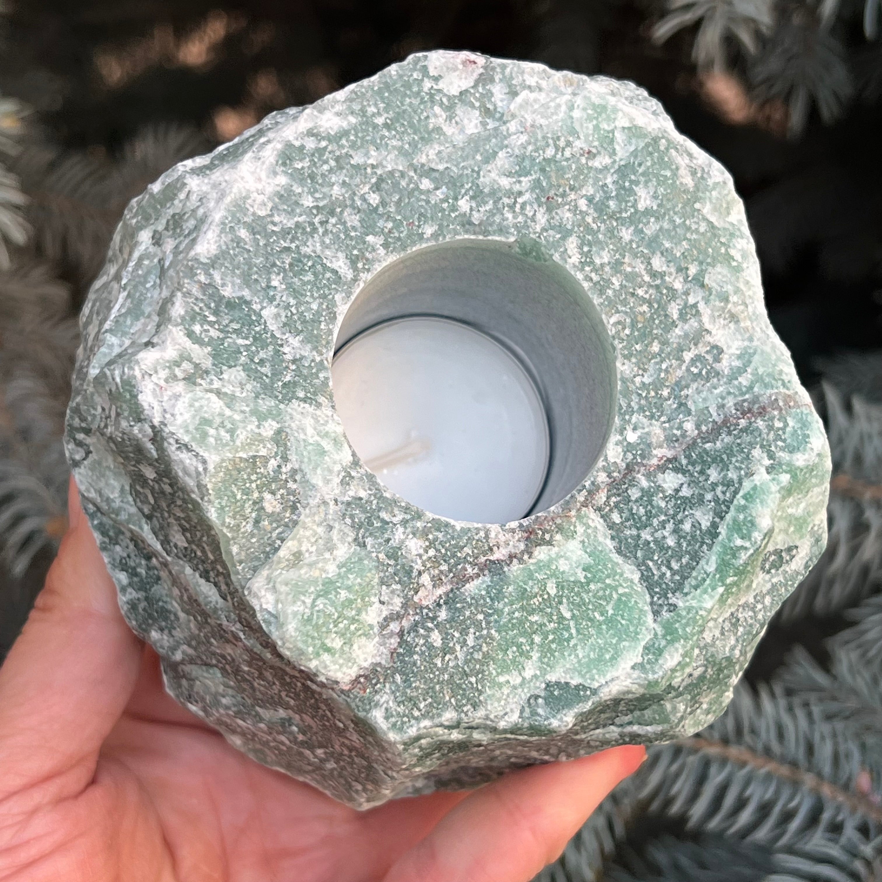 Светилен държач от авантюрин, приблизителни размери: 12 * 11 см * 5 см