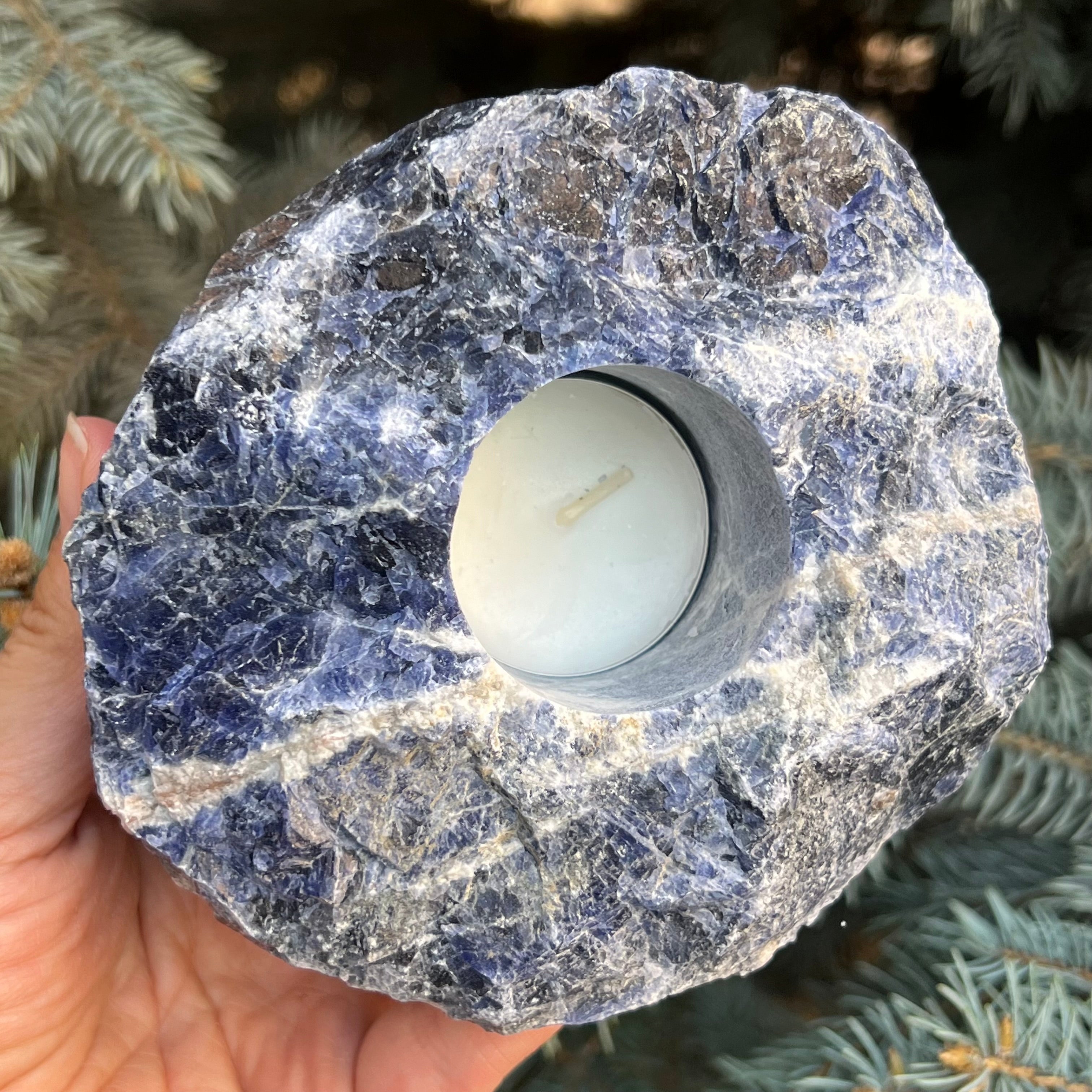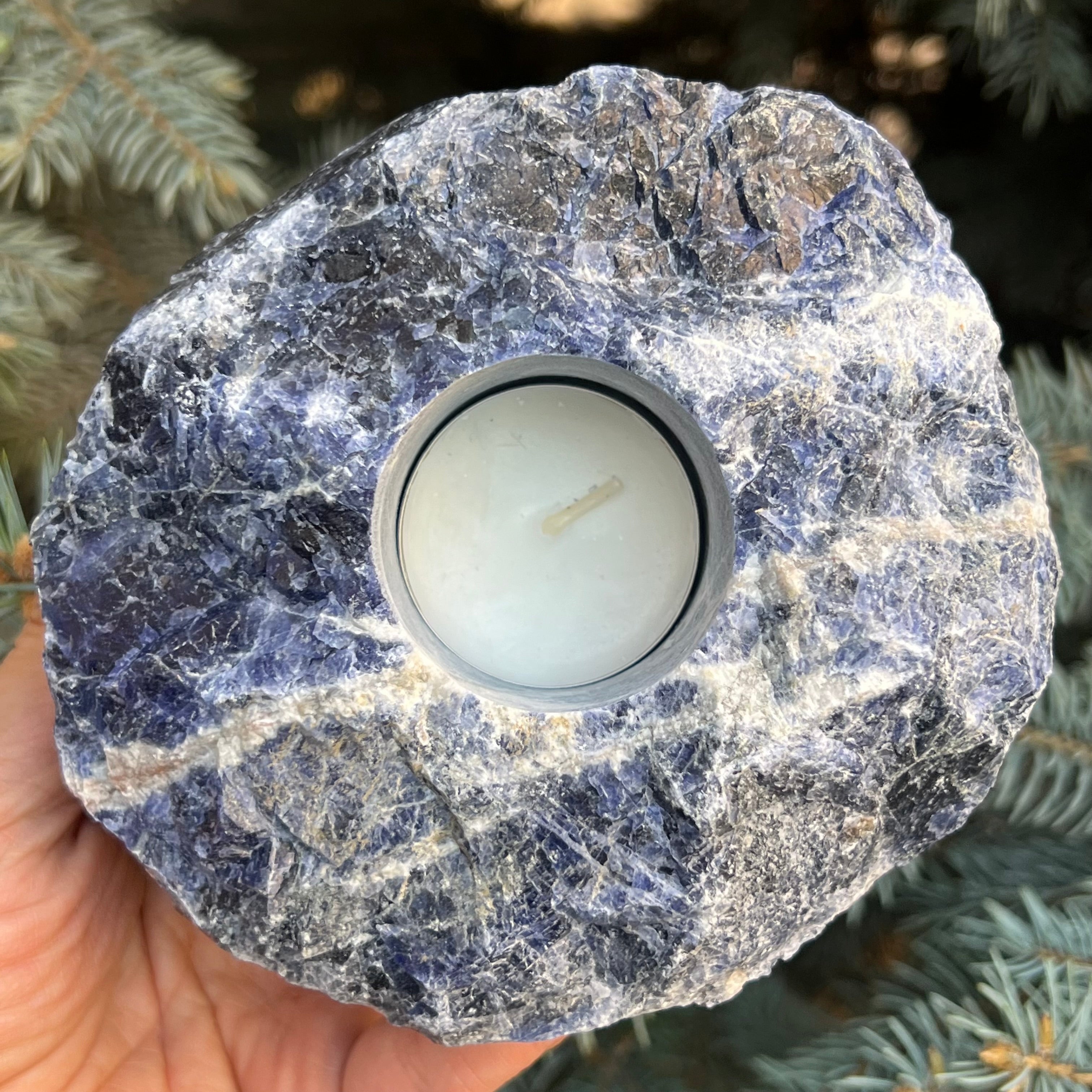 Светилен държач от содалит, приблизителни размери: 13 * 12 см * 5 см