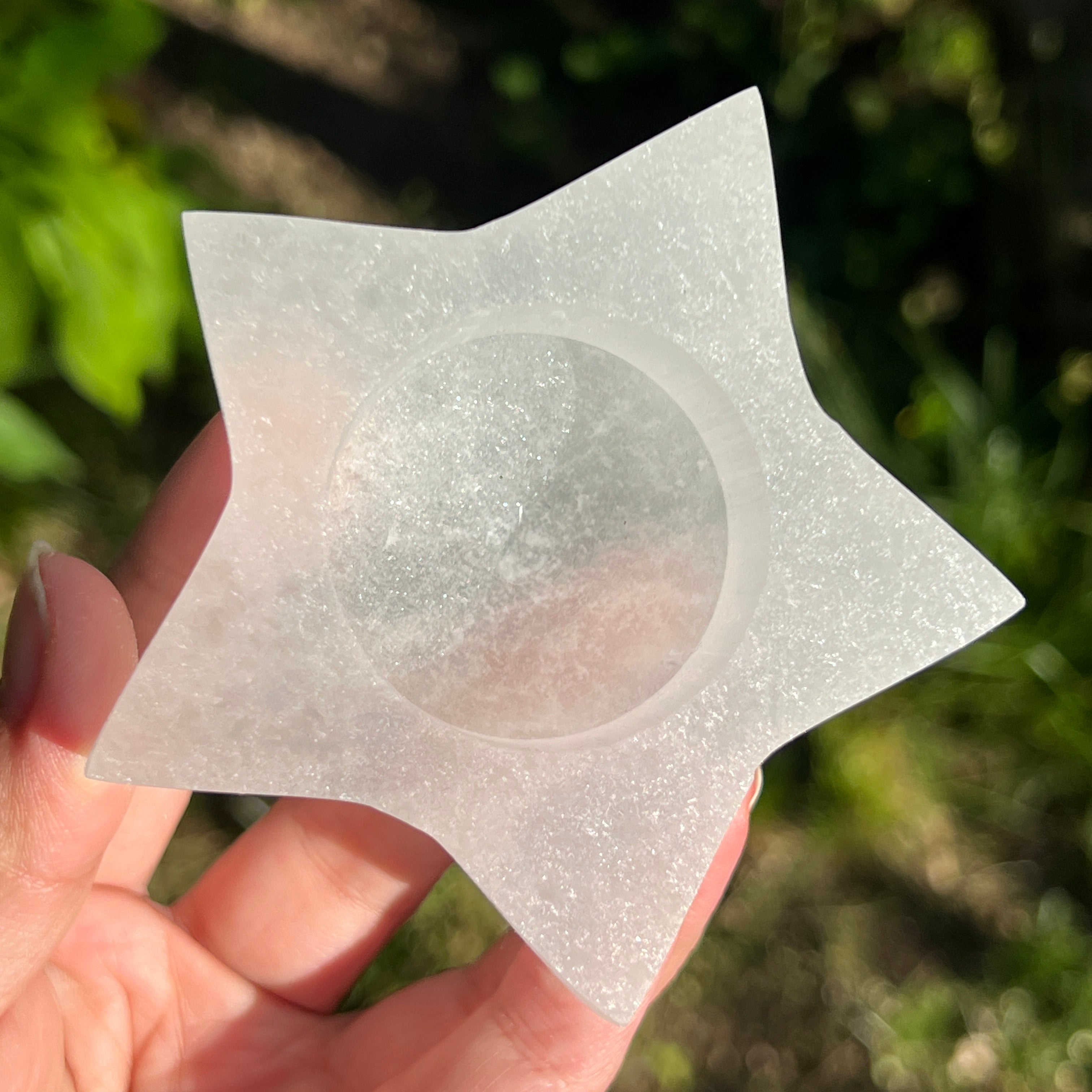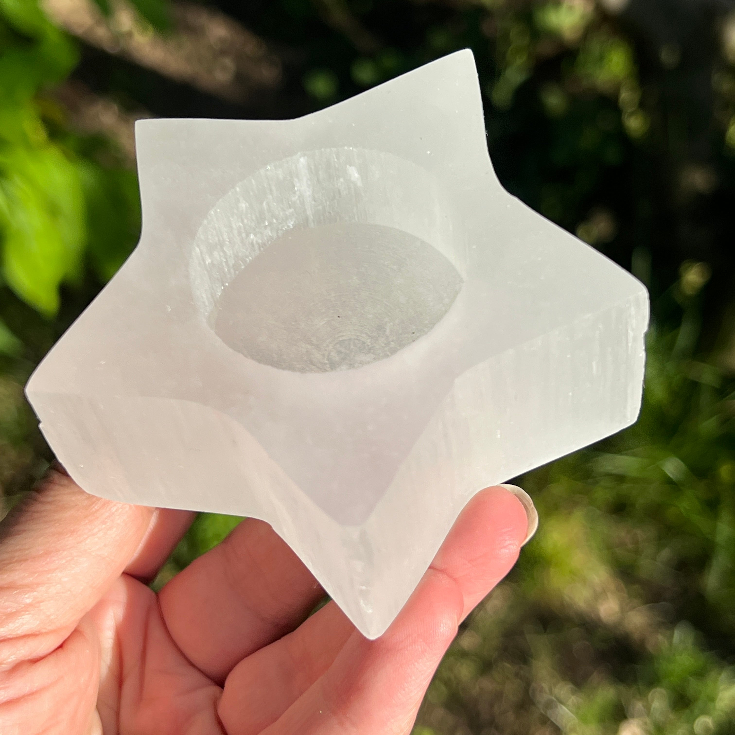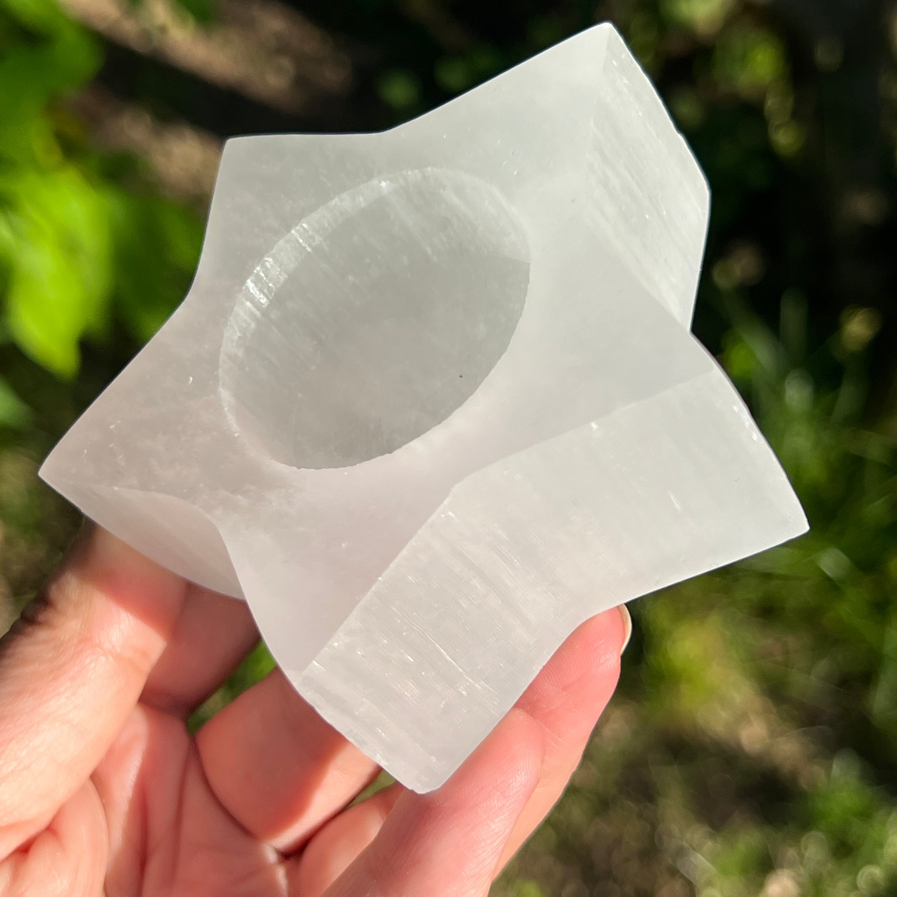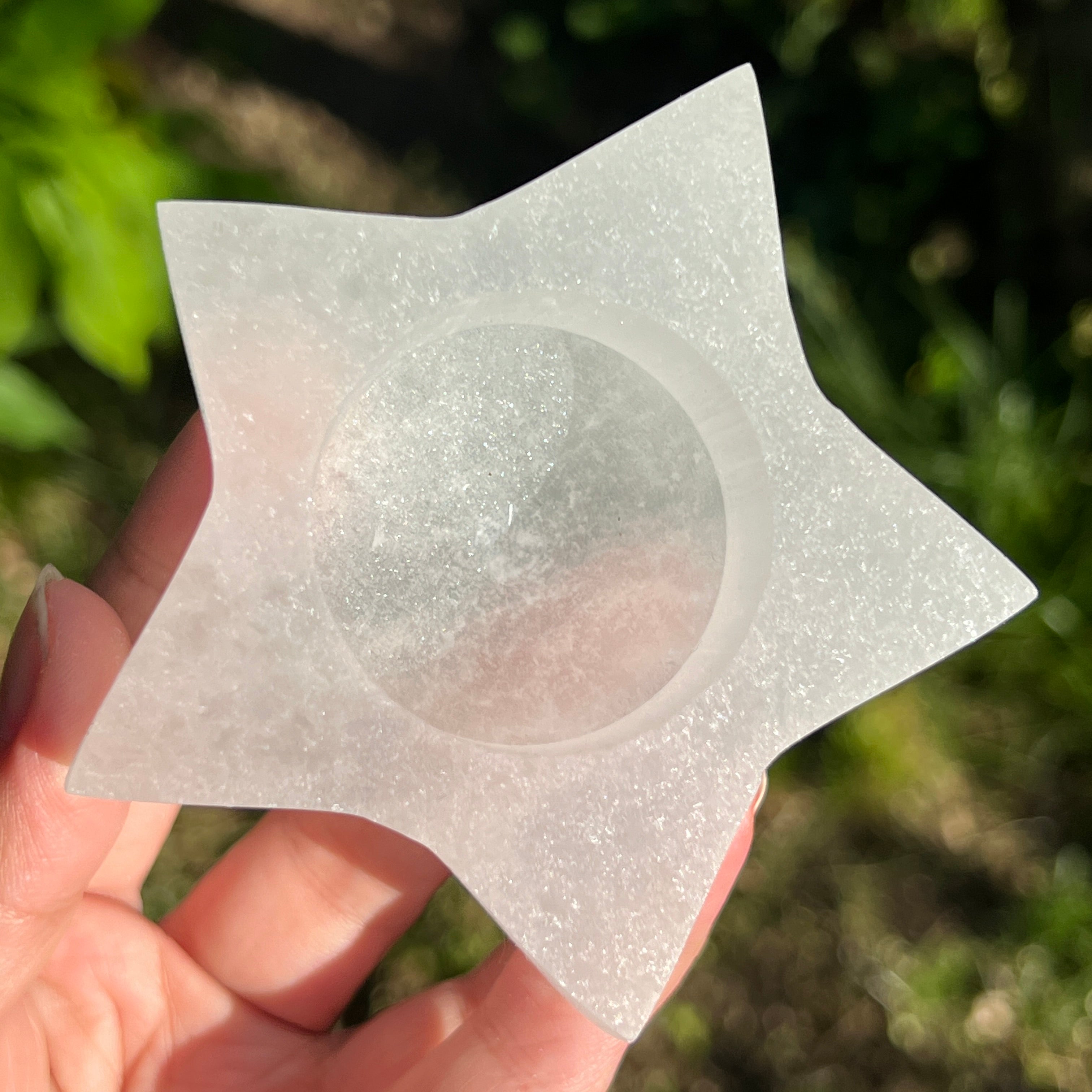 Селенитът често се използва като кристал за подкрепа в духовните практики, като помага за отваряне и активиране на чакрите 6 и 7, които са свързани с интуиция, ясновидство и духовна връзка.