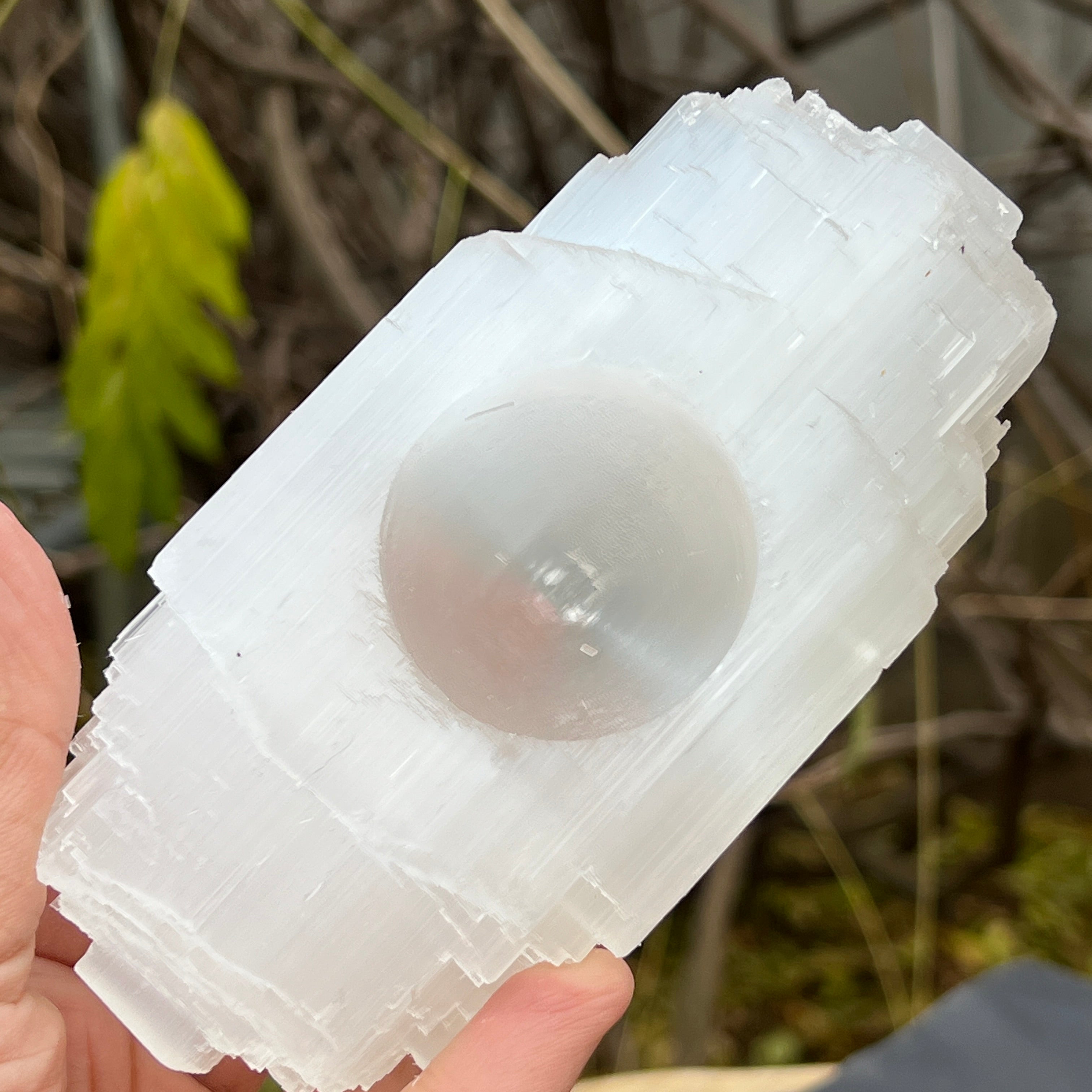 Селенитът често се използва като поддържащ кристал в духовните практики, помагайки за отваряне и активиране на 6-та и 7-ма чакра, които са свързани с интуицията, ясновидството и духовната връзка.