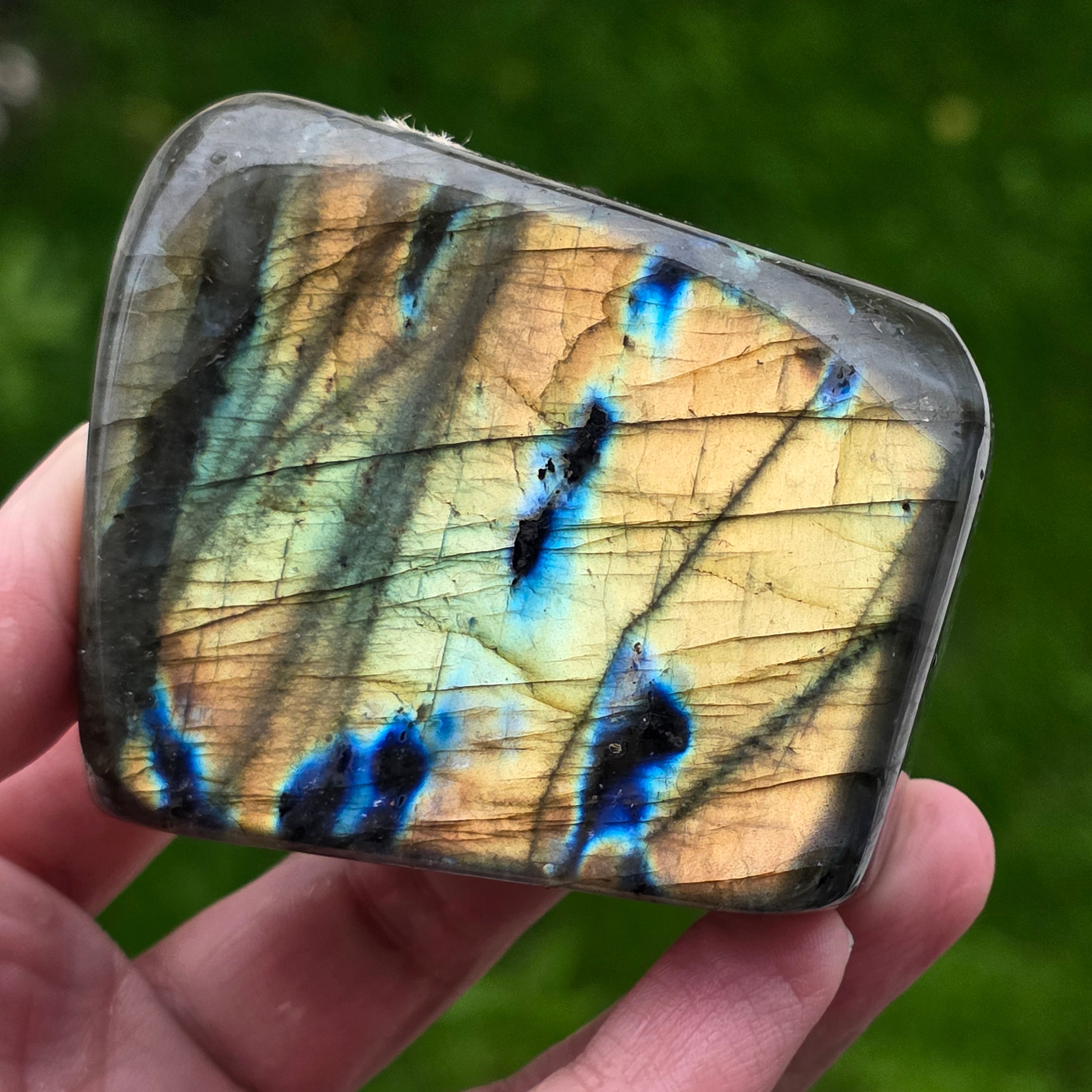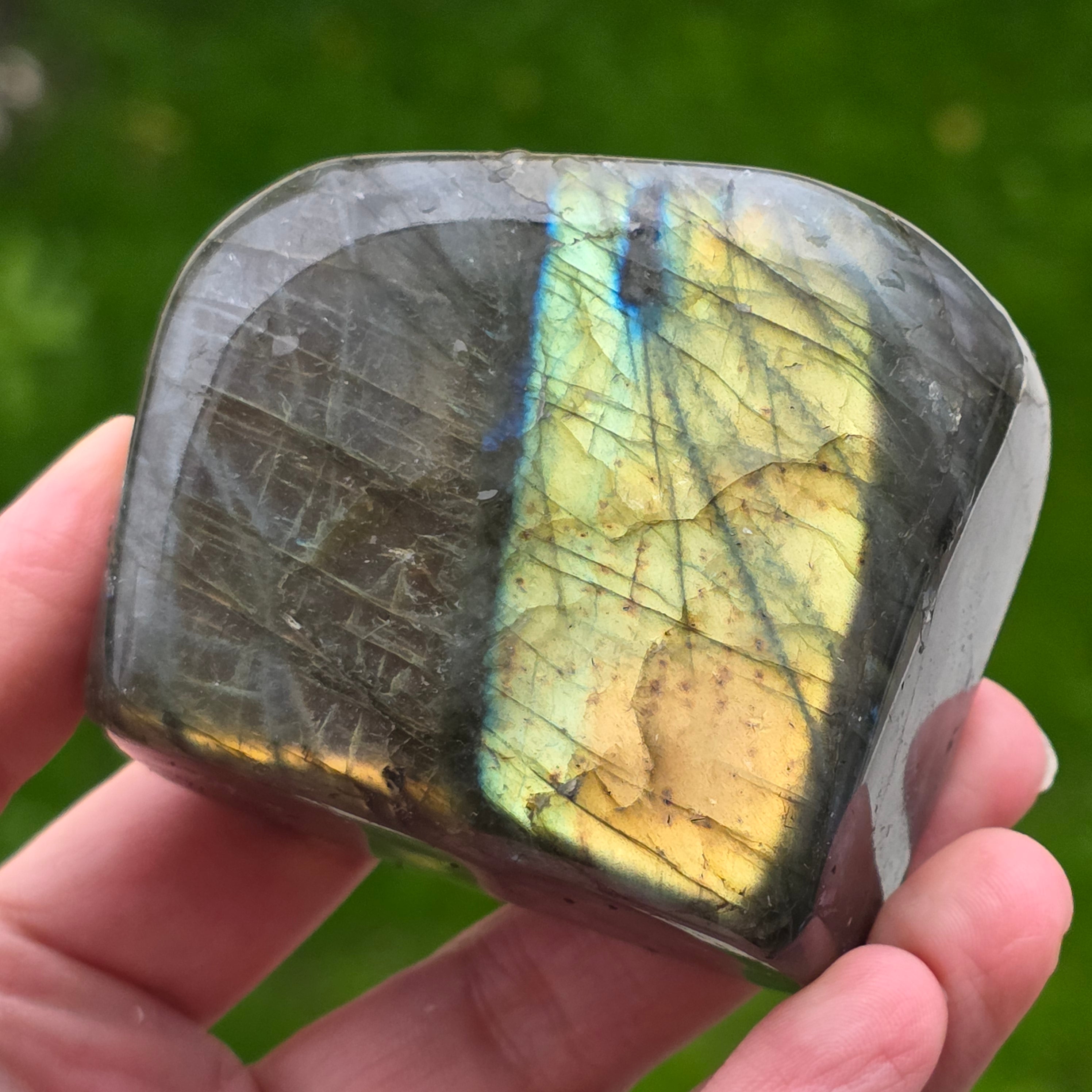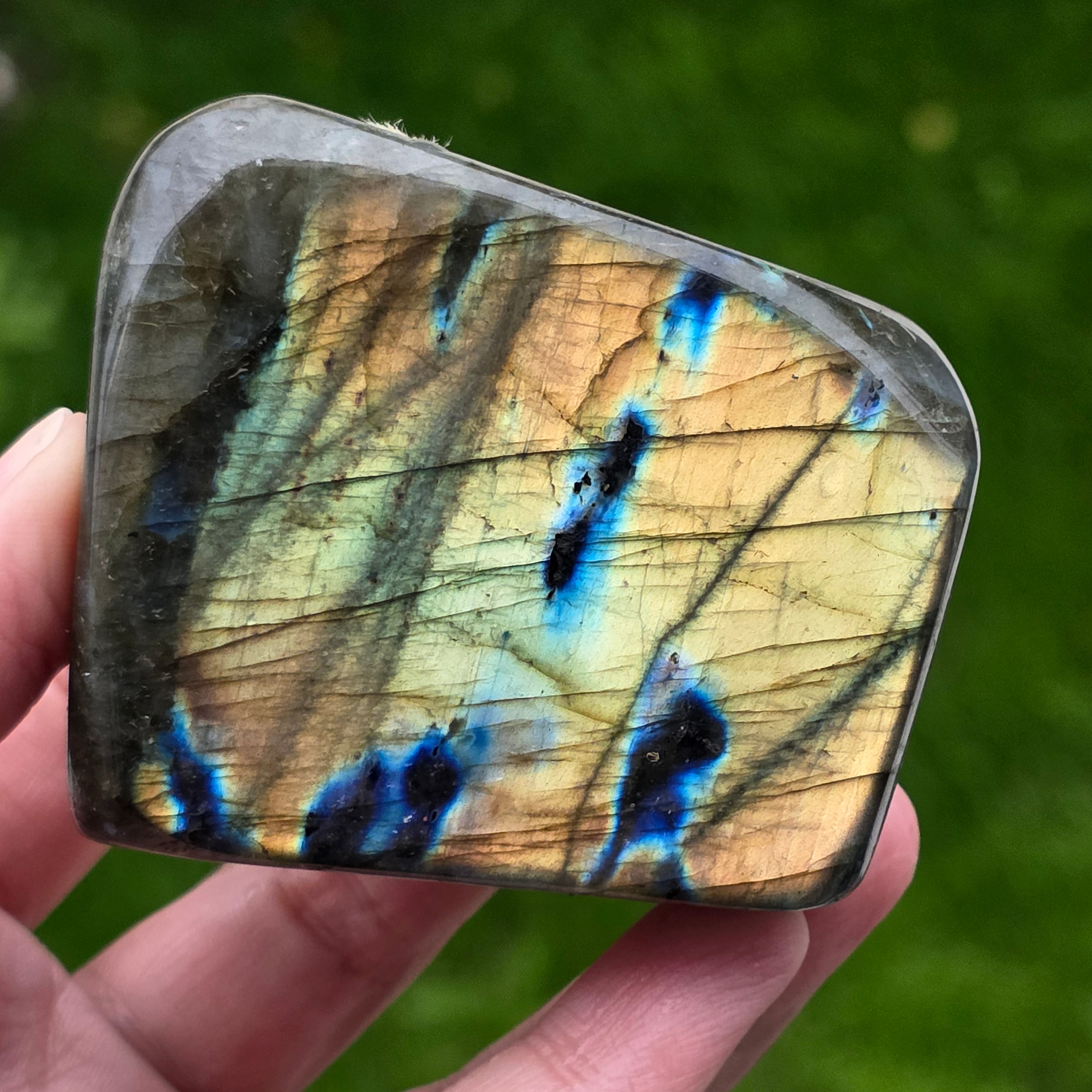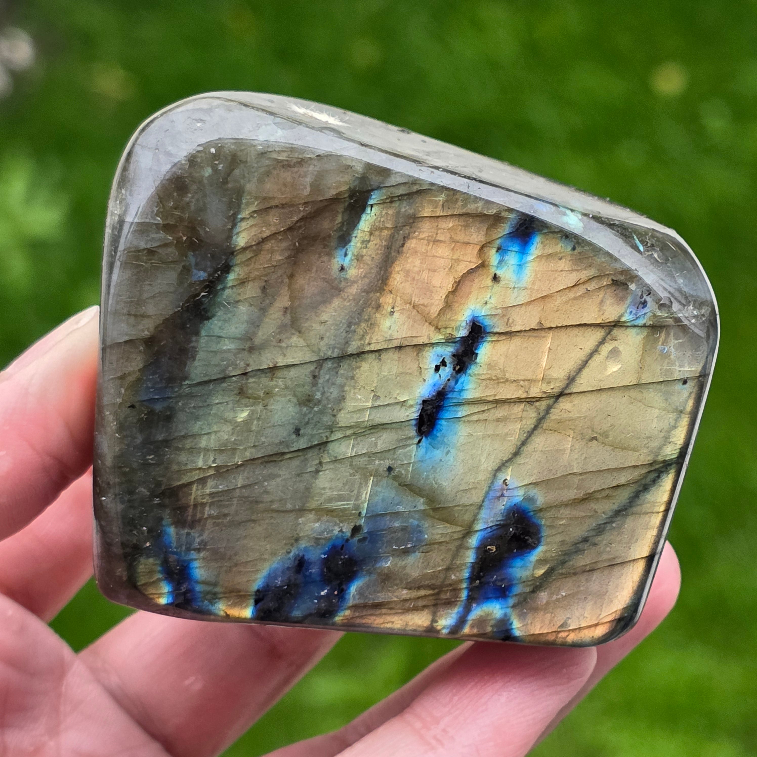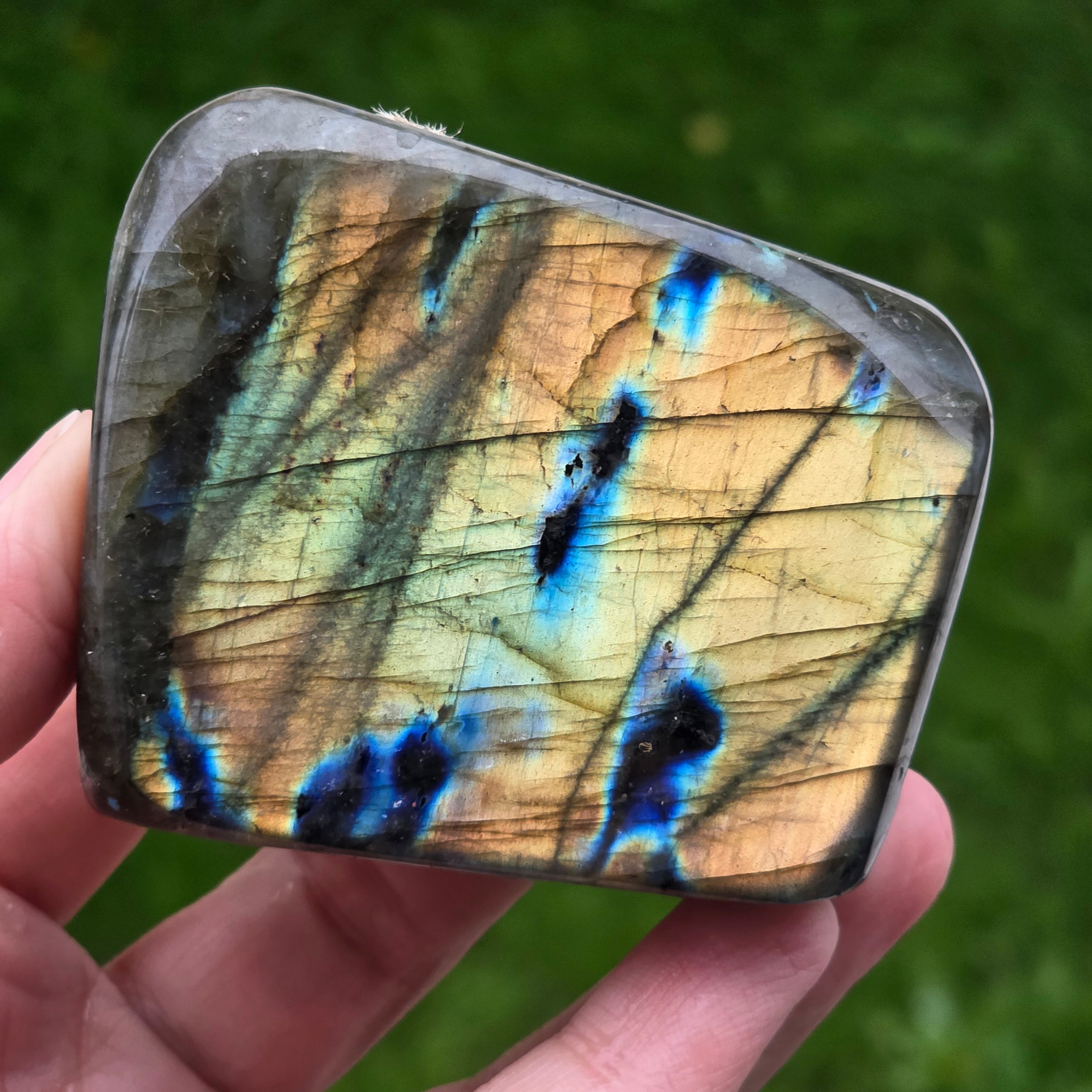 Лабрадоритът се счита за камък на ясновидството и интуицията, той е съществен камък в колекцията. Тя действа като защитен щит, помага ни да си спомним колко сме силни.