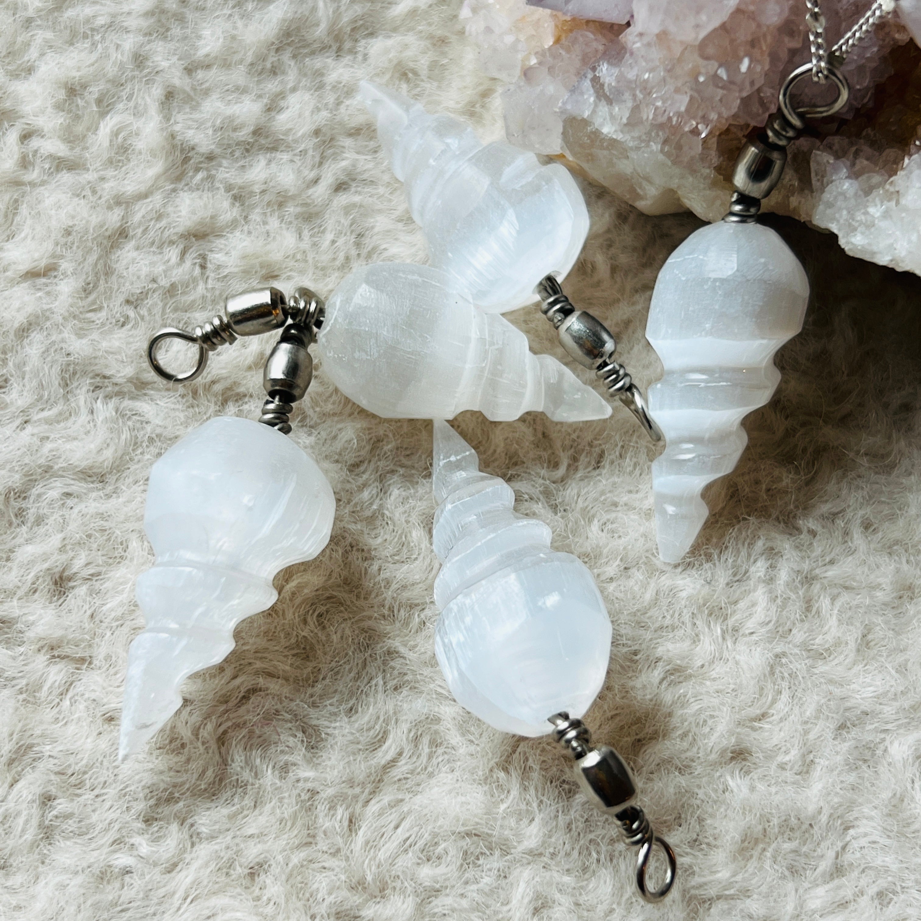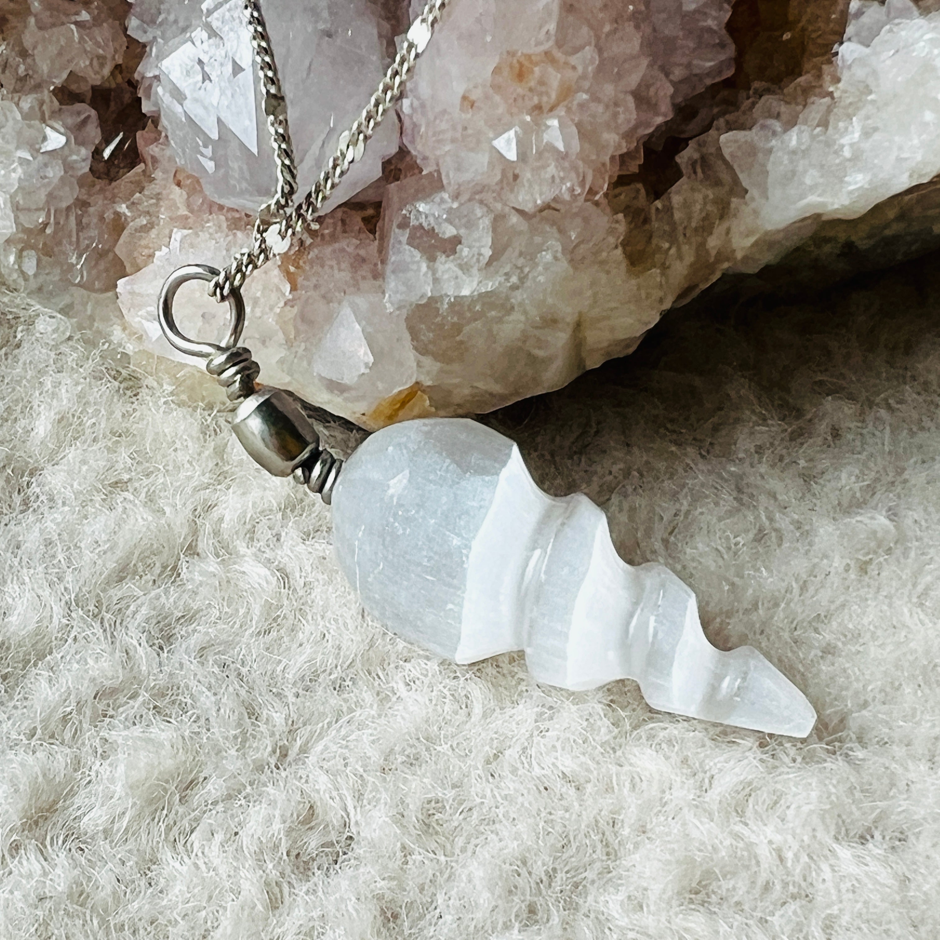 Изберете спиралния медальон от селинит, за да носите със себе си символа на трансформацията и защитната светлина на този свещен камък ✨🌙.