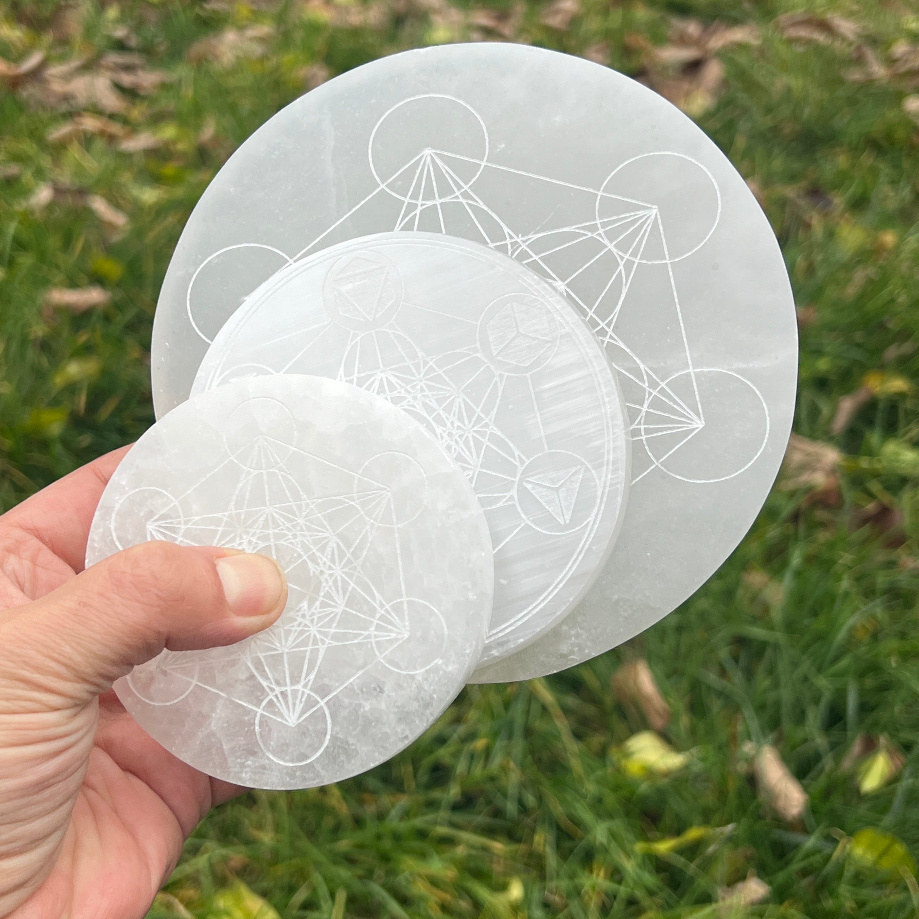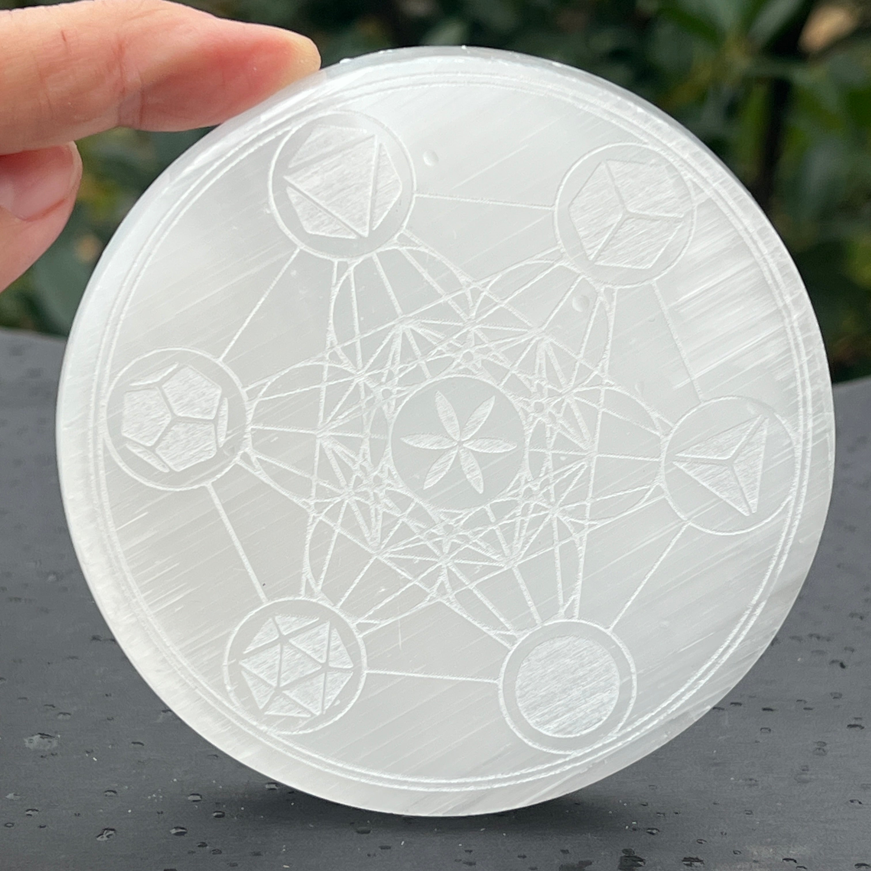 Диск Selenite Metatron 8, 10, 14 см, моля изберете желания размер.