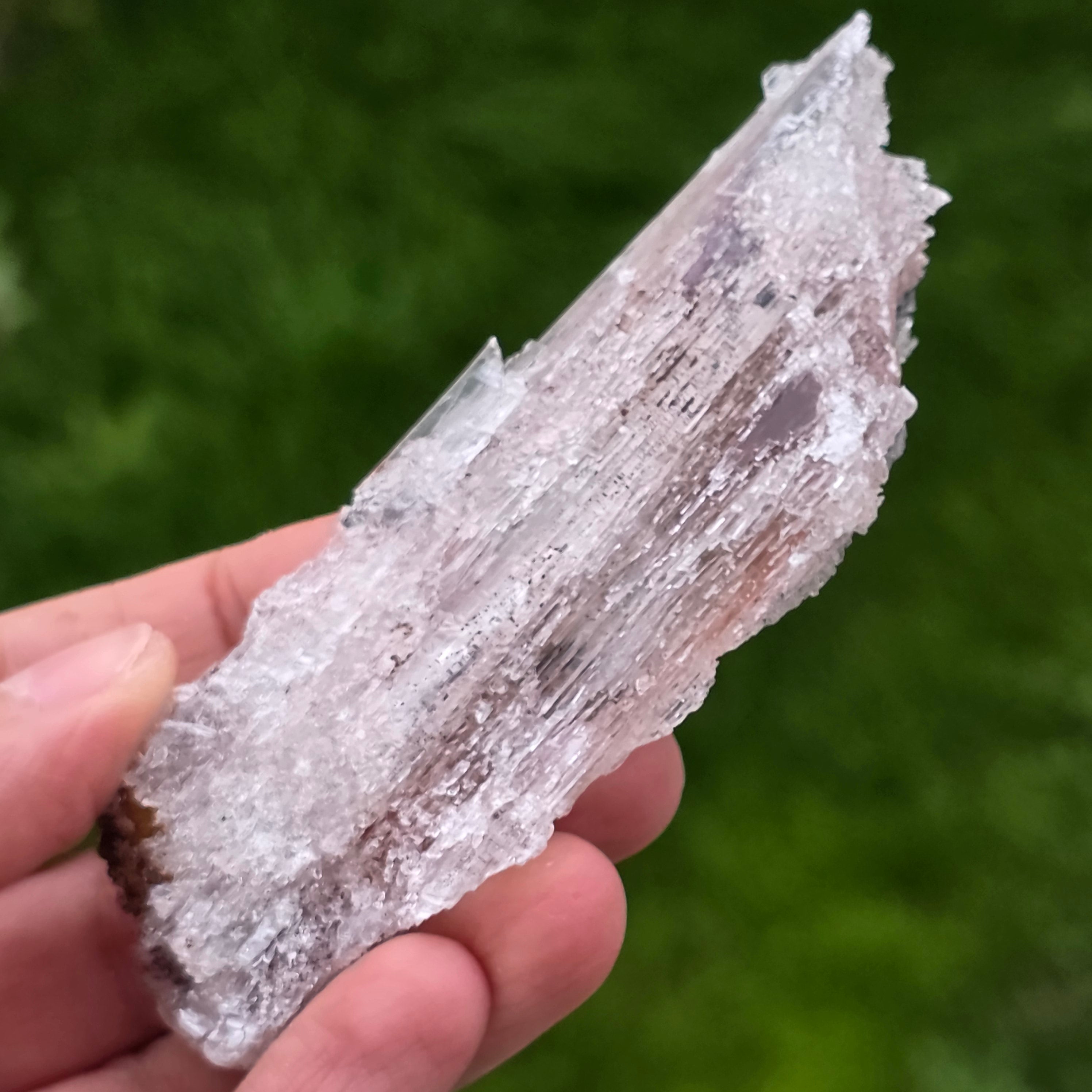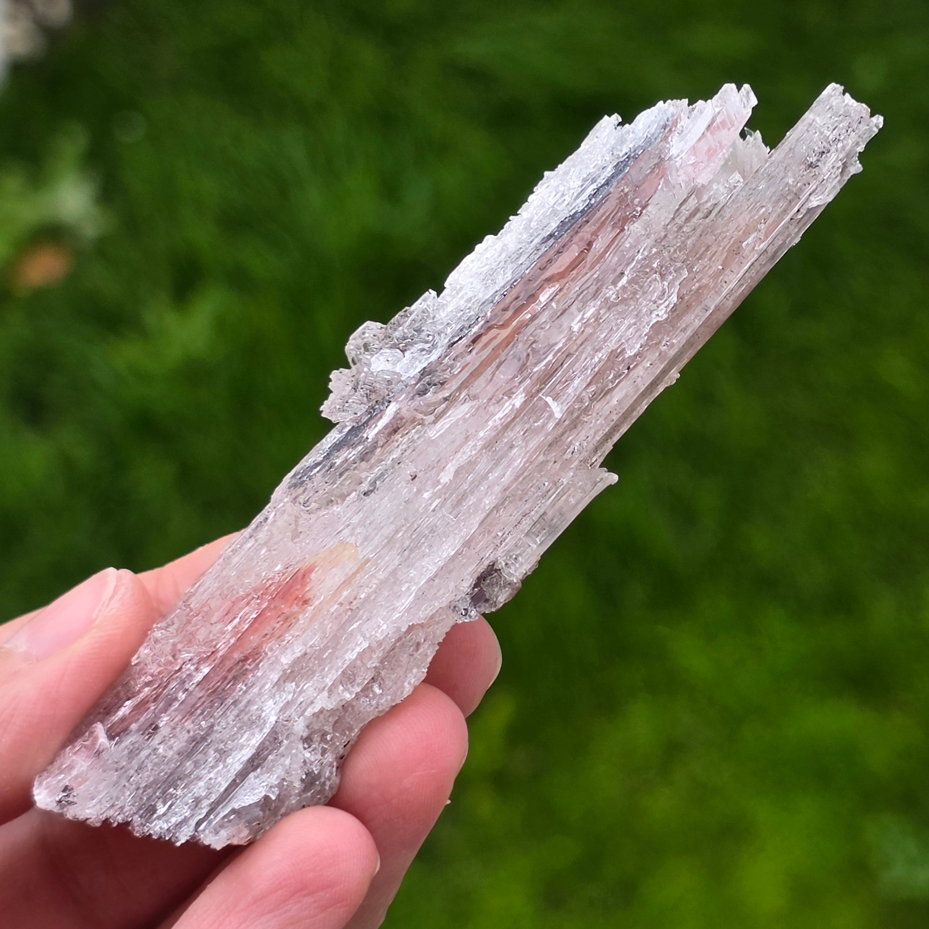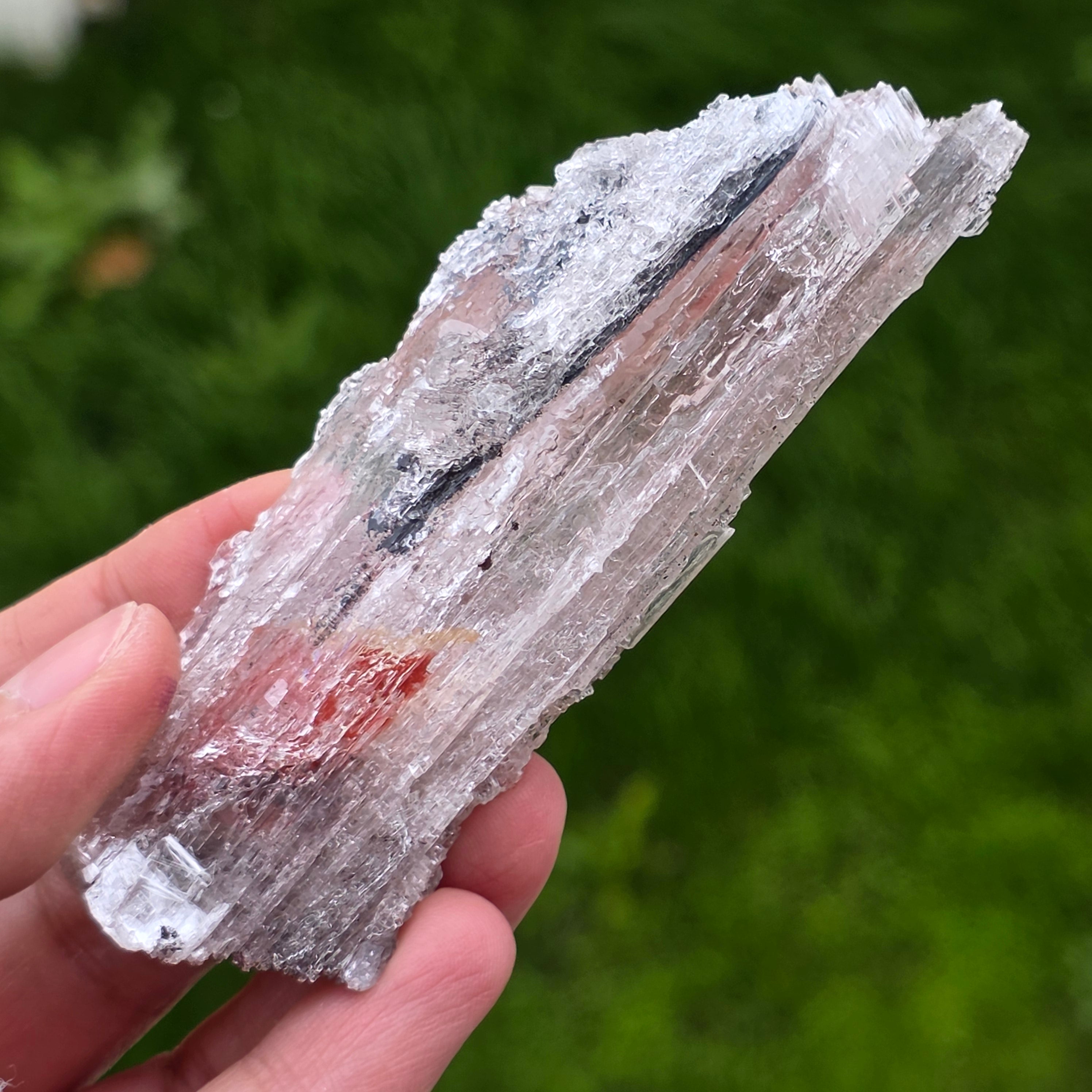 Селенитът се появява под формата на удължени кристали или полупрозрачни плочки, с кадифен блясък и фина текстура, докато хематитът се проявява като включвания, филмчета или естествени отлагания, които подчертават структурата на кристала и му придават визуална дълбочина.