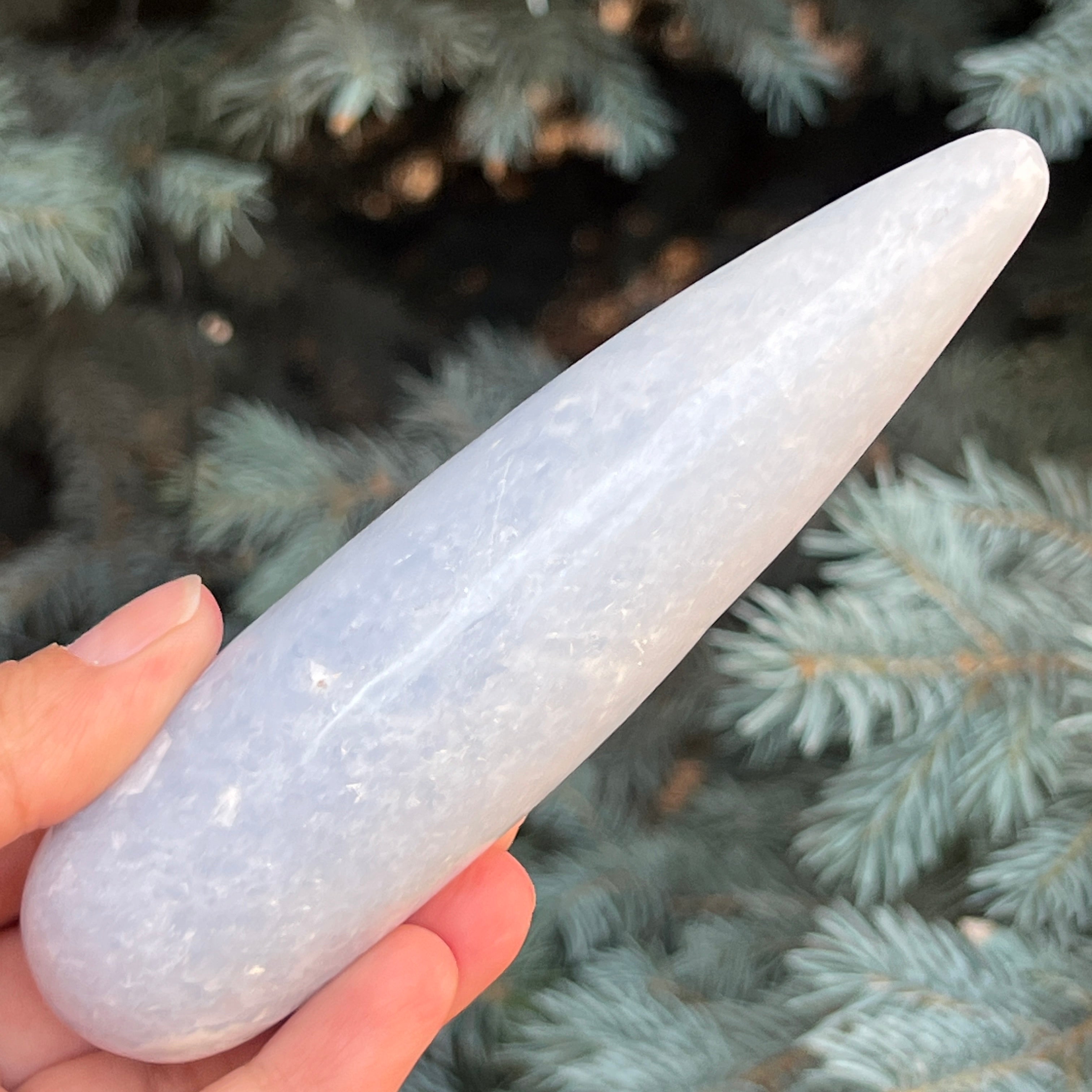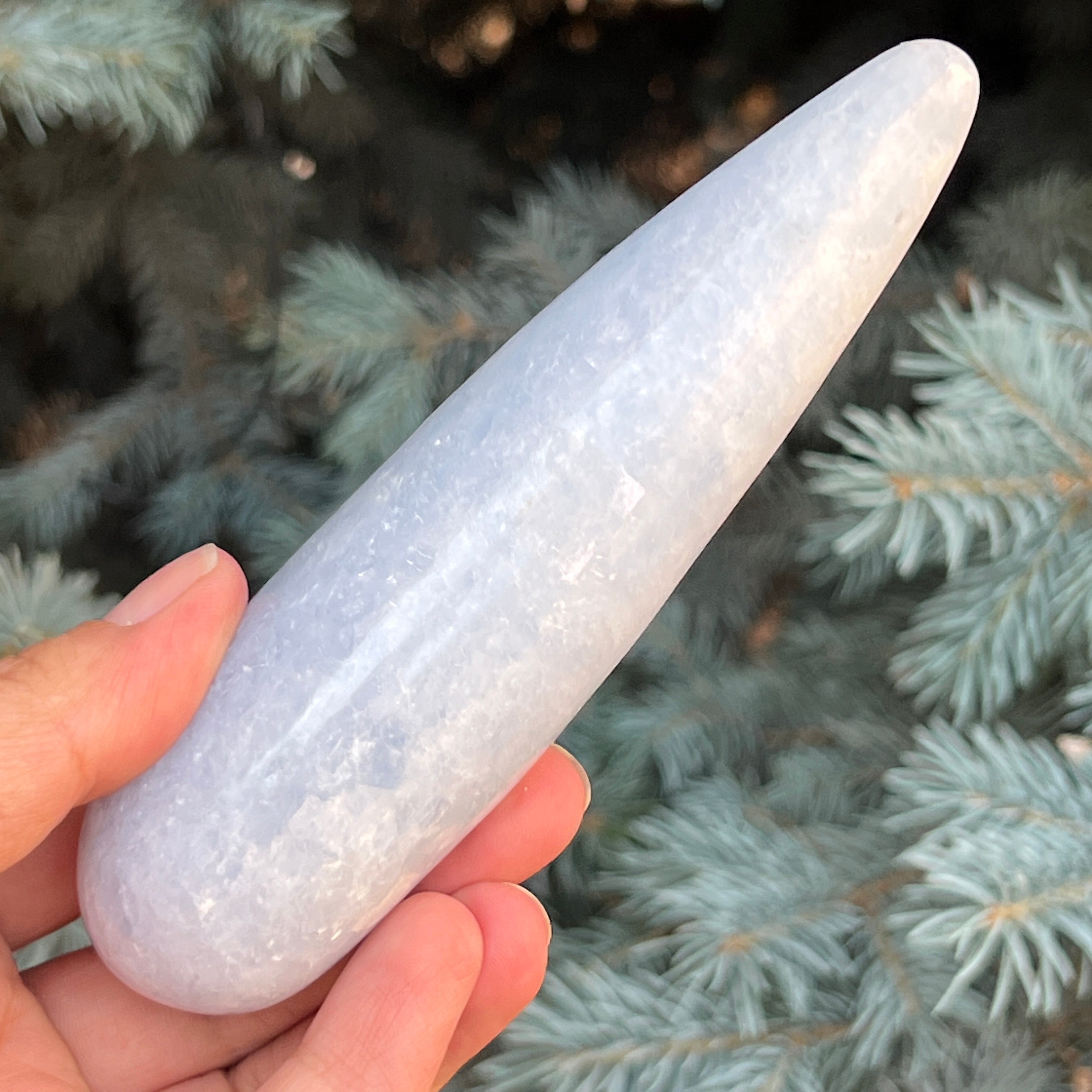 Синьо калцитово пръчица модел 4 от Мадагаскар, размер: 13.5 * 3.5 см