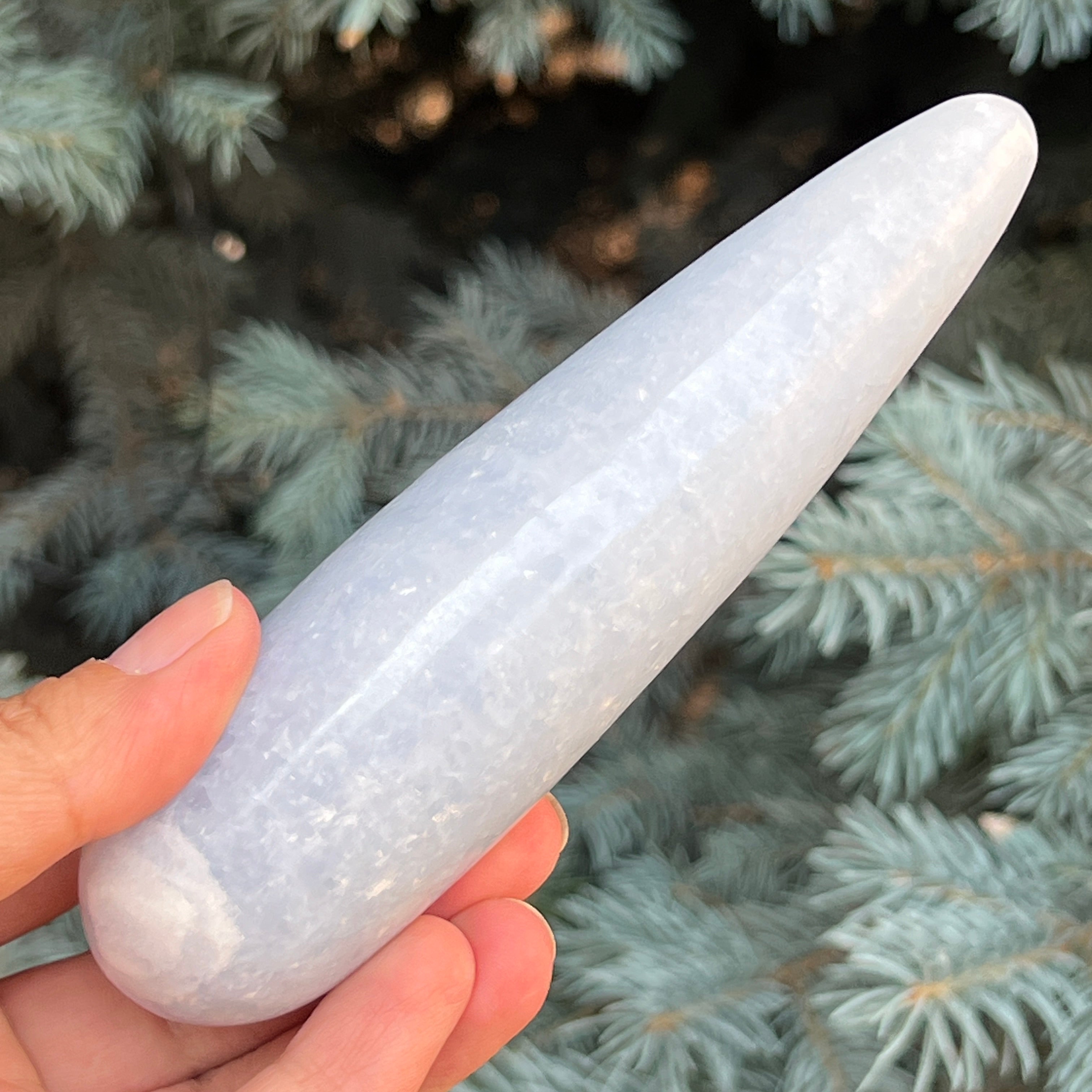 Синият калцит, известен също като алабастър, е известен с успокояващия и релаксиращ ефект, който носи, както и с помощта си за премахване на стреса и тревожността.
