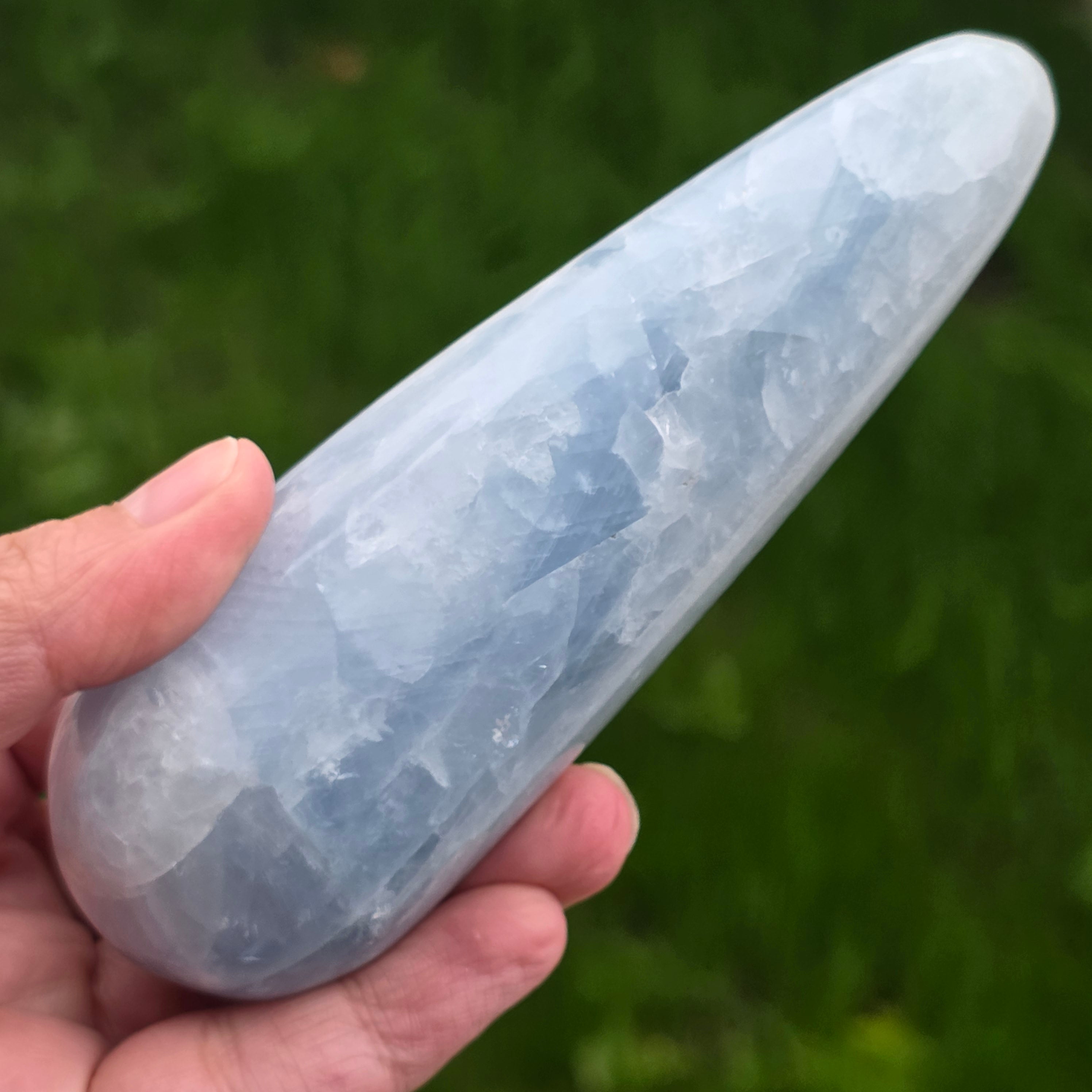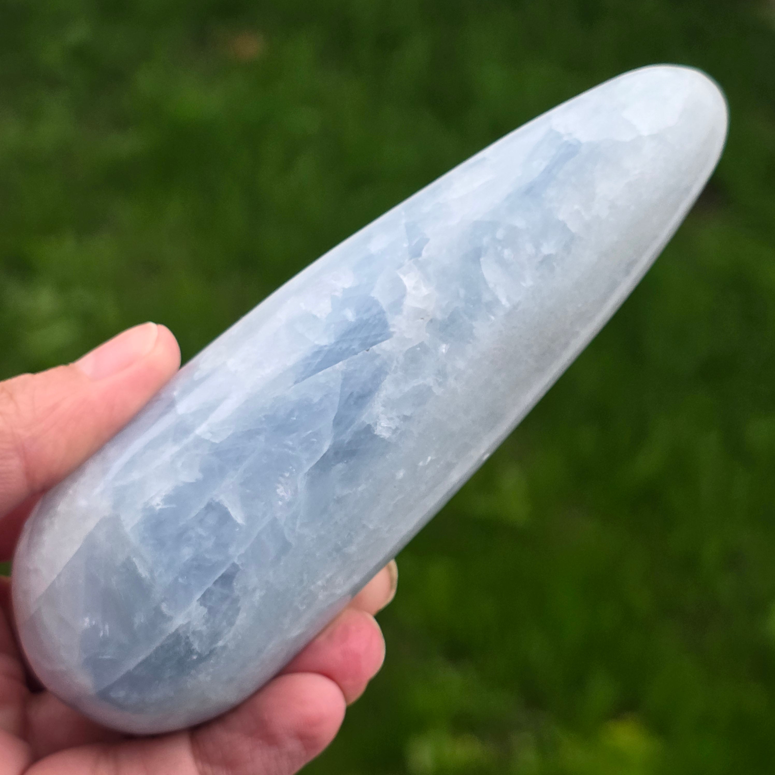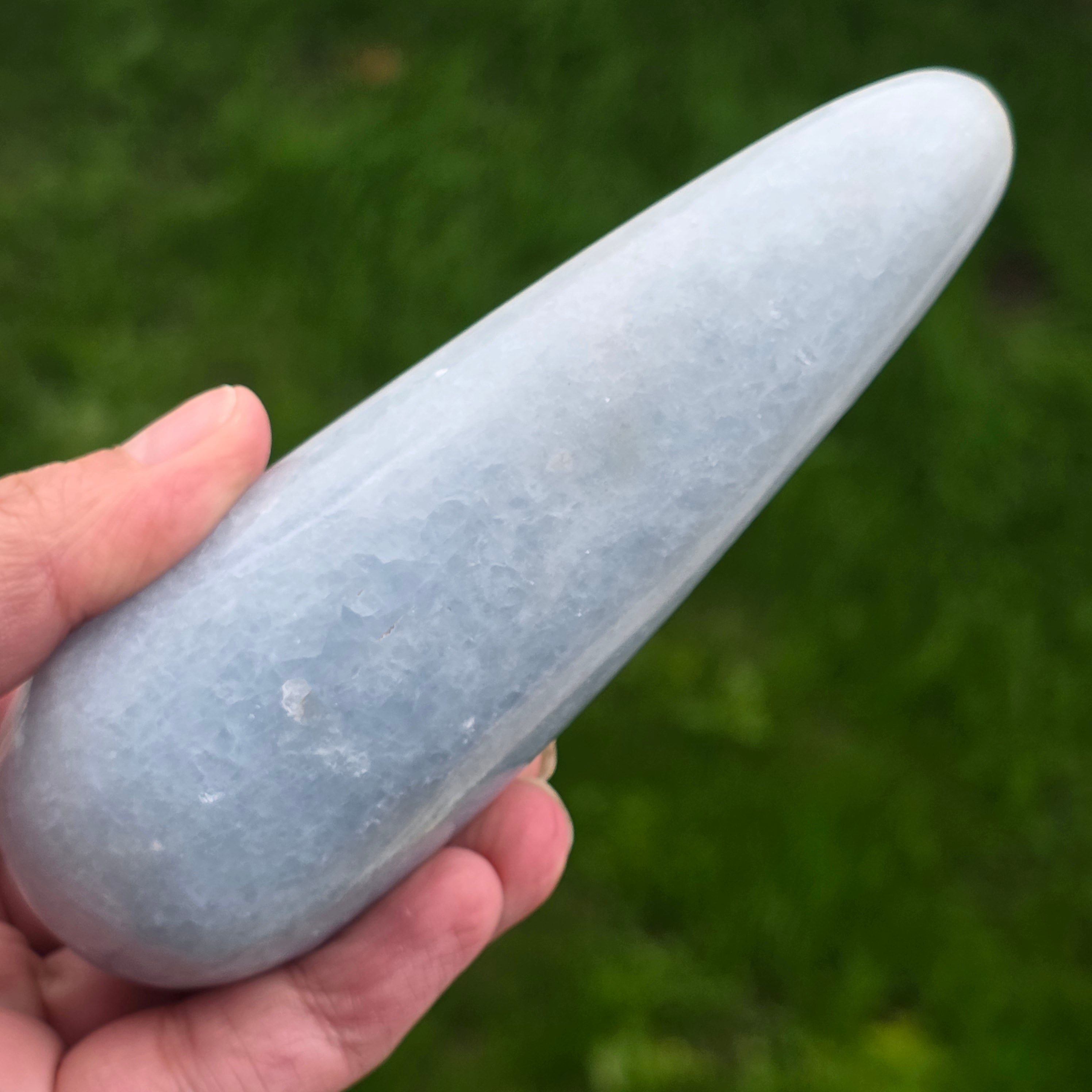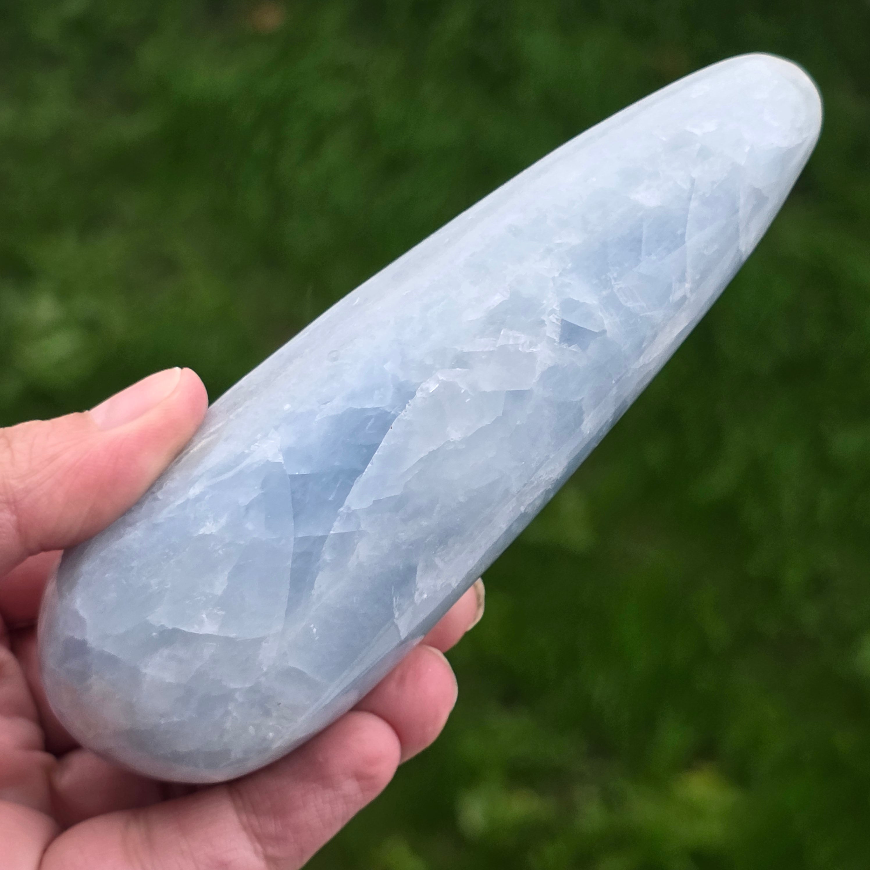 Синият калцит, известен също като алебастър, е известен със своя успокояващ и релаксиращ ефект и със способността си да помага за премахване на стреса и тревожността.