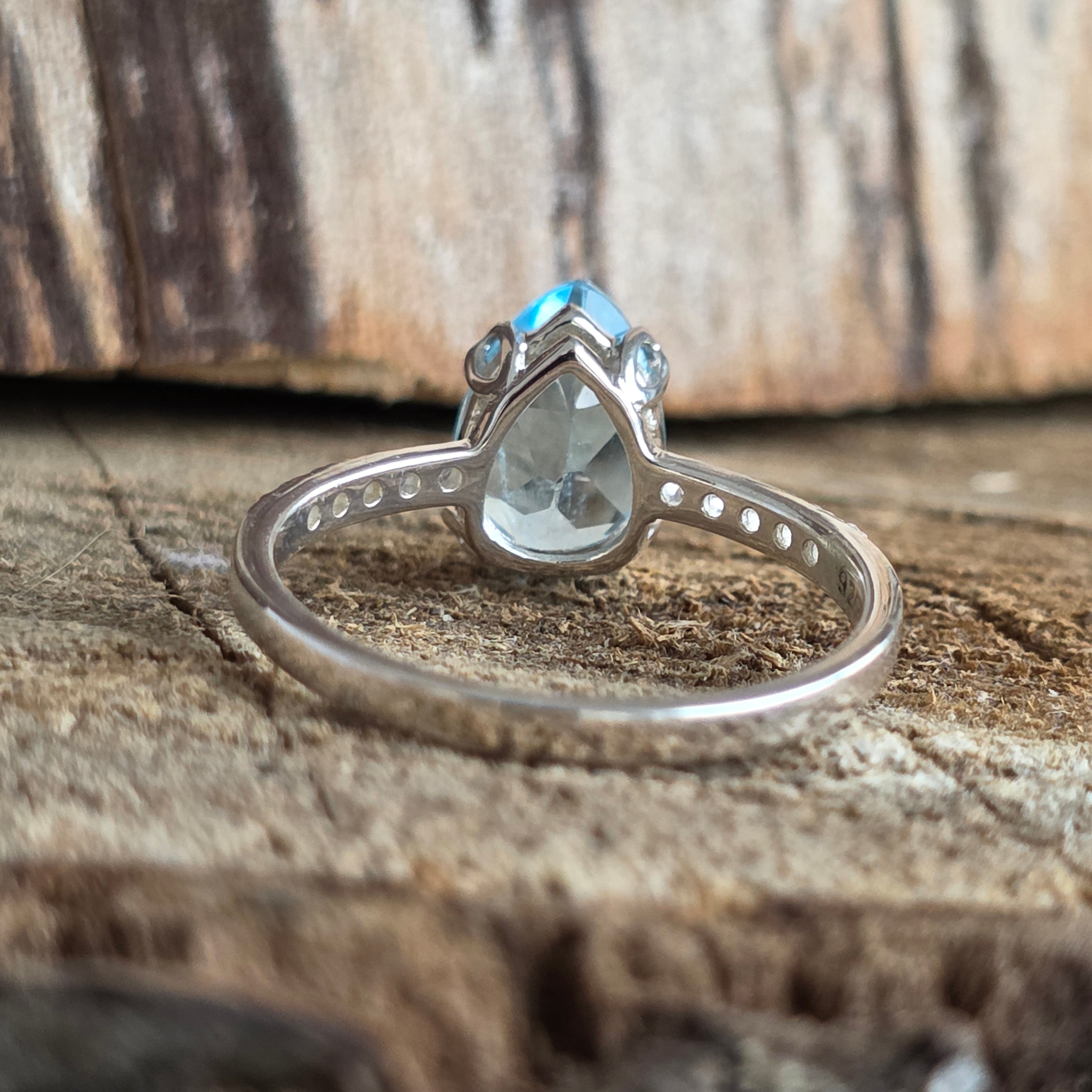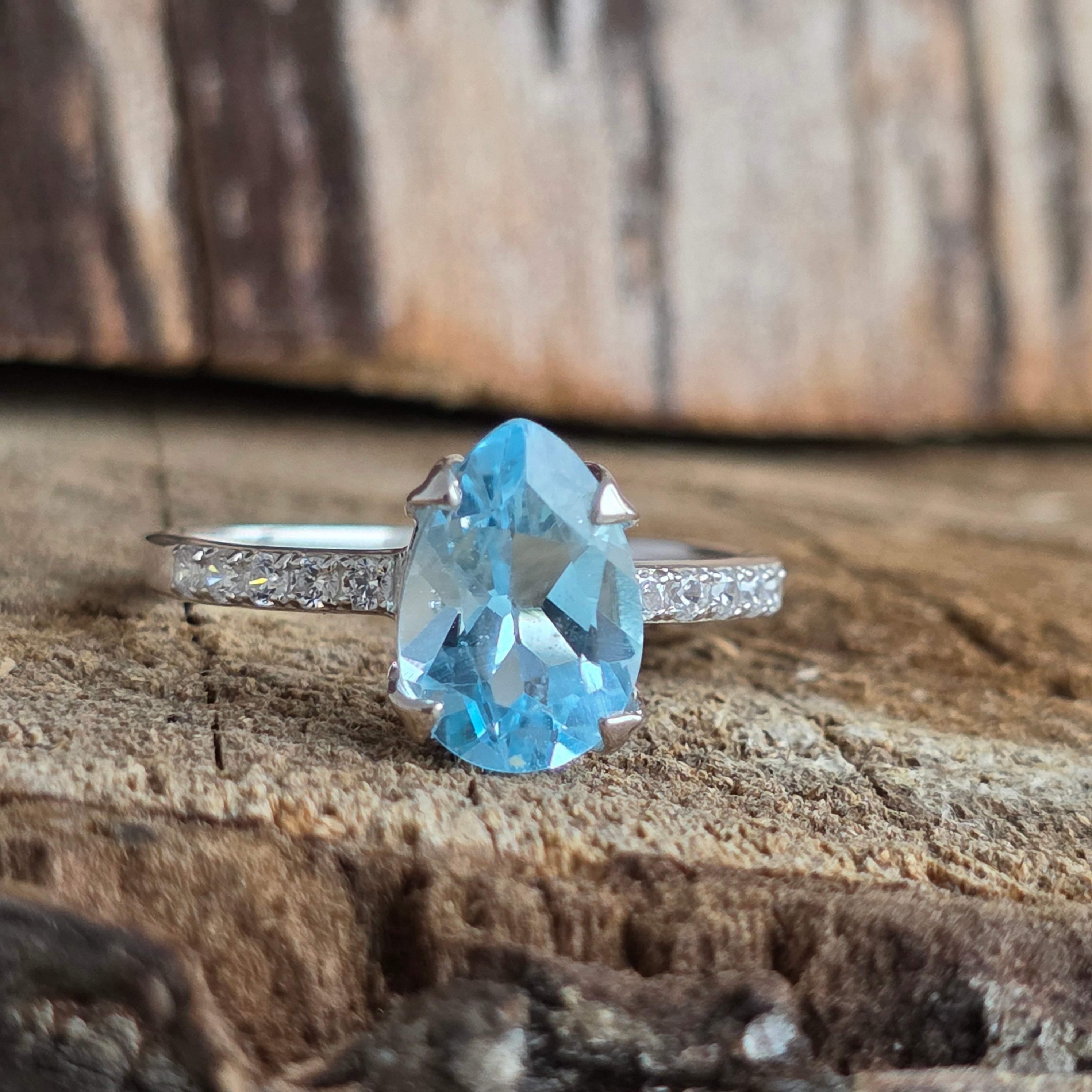 Ревюта – Синьо топазово пръстен от сребро Pear 10 мм