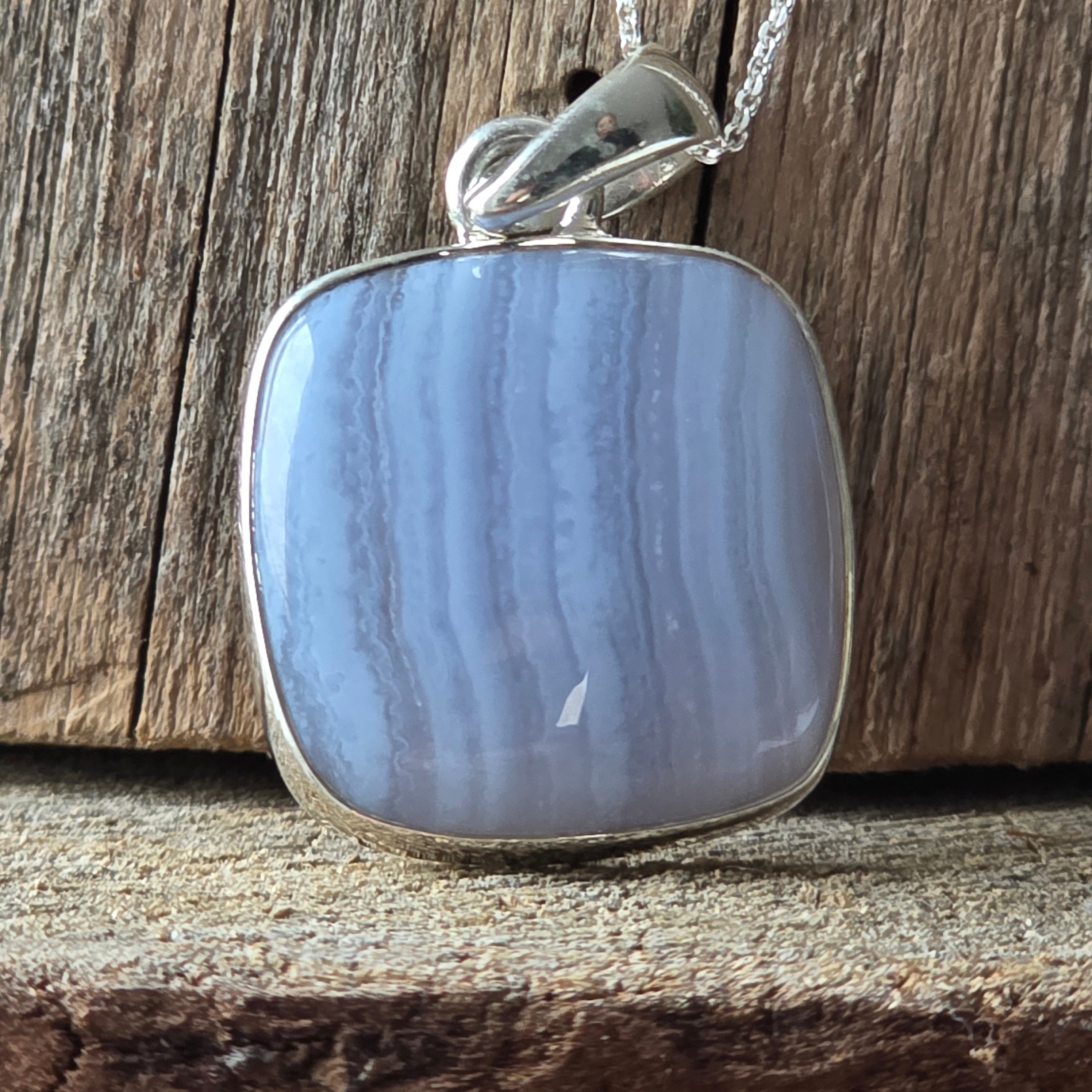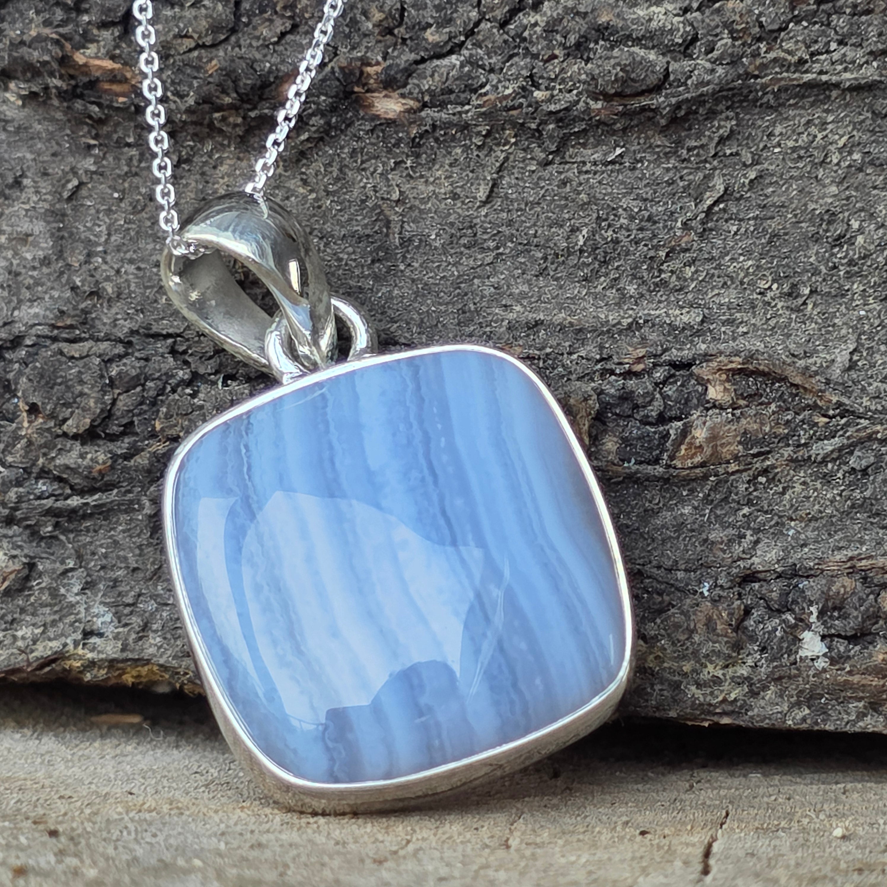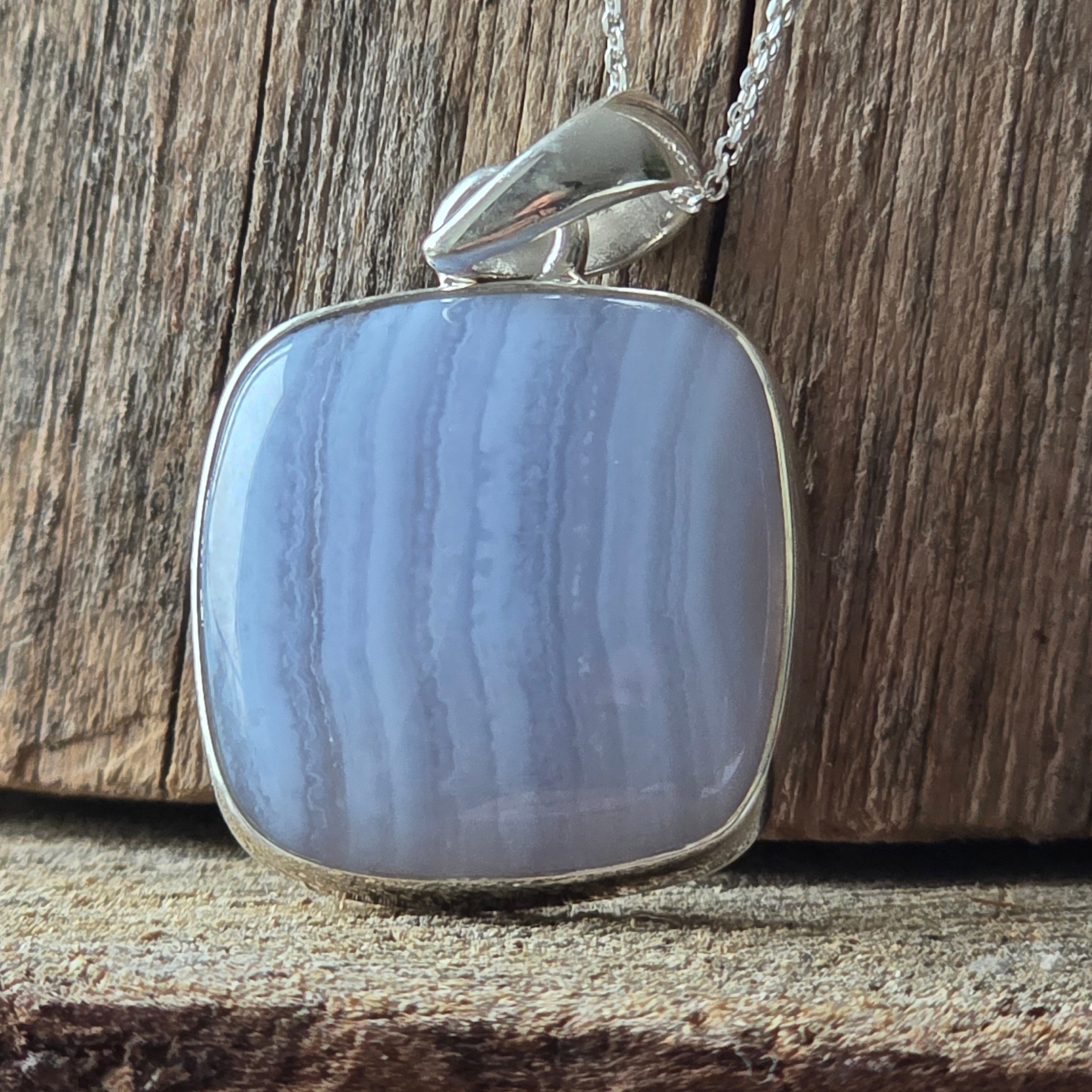 Синя дантелена халцедонова висулка от сребро | Модел 2