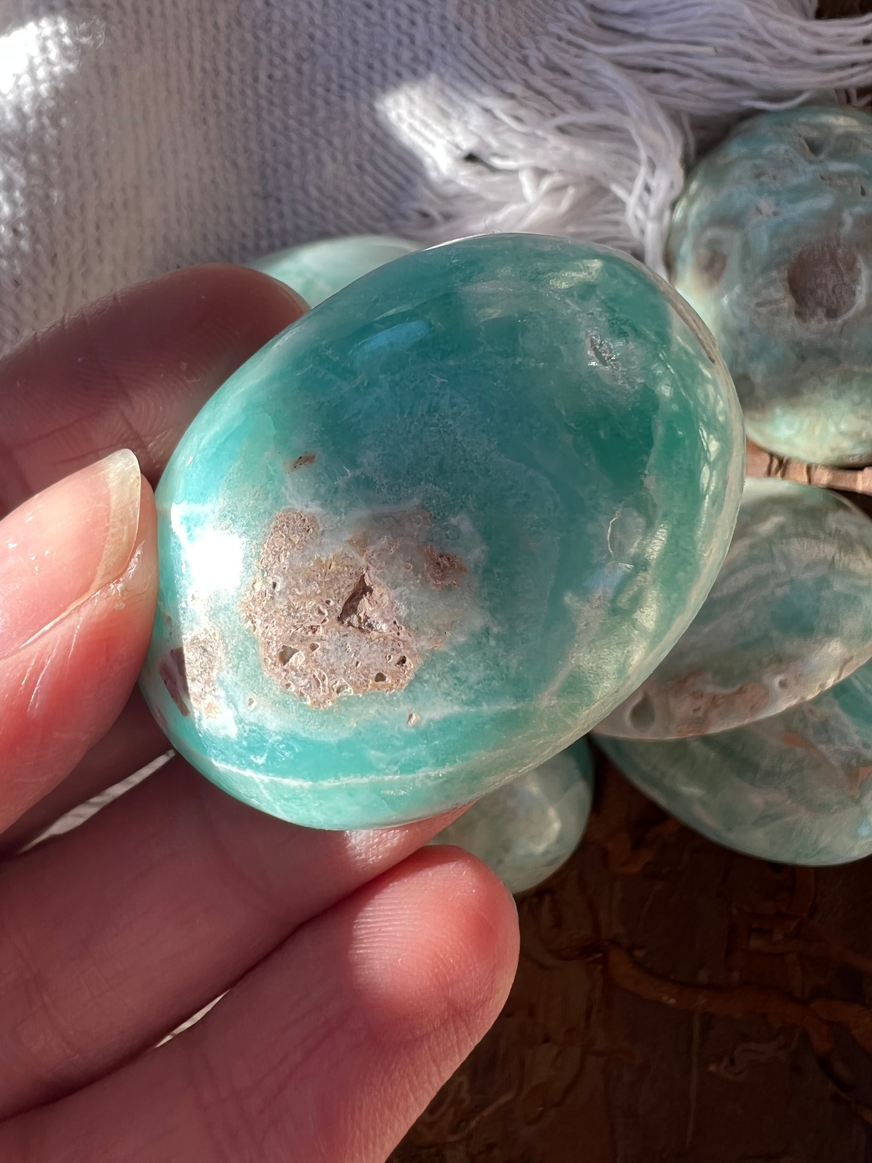 Синя арагонитна каменна торбичка m3, размер 4.5 см