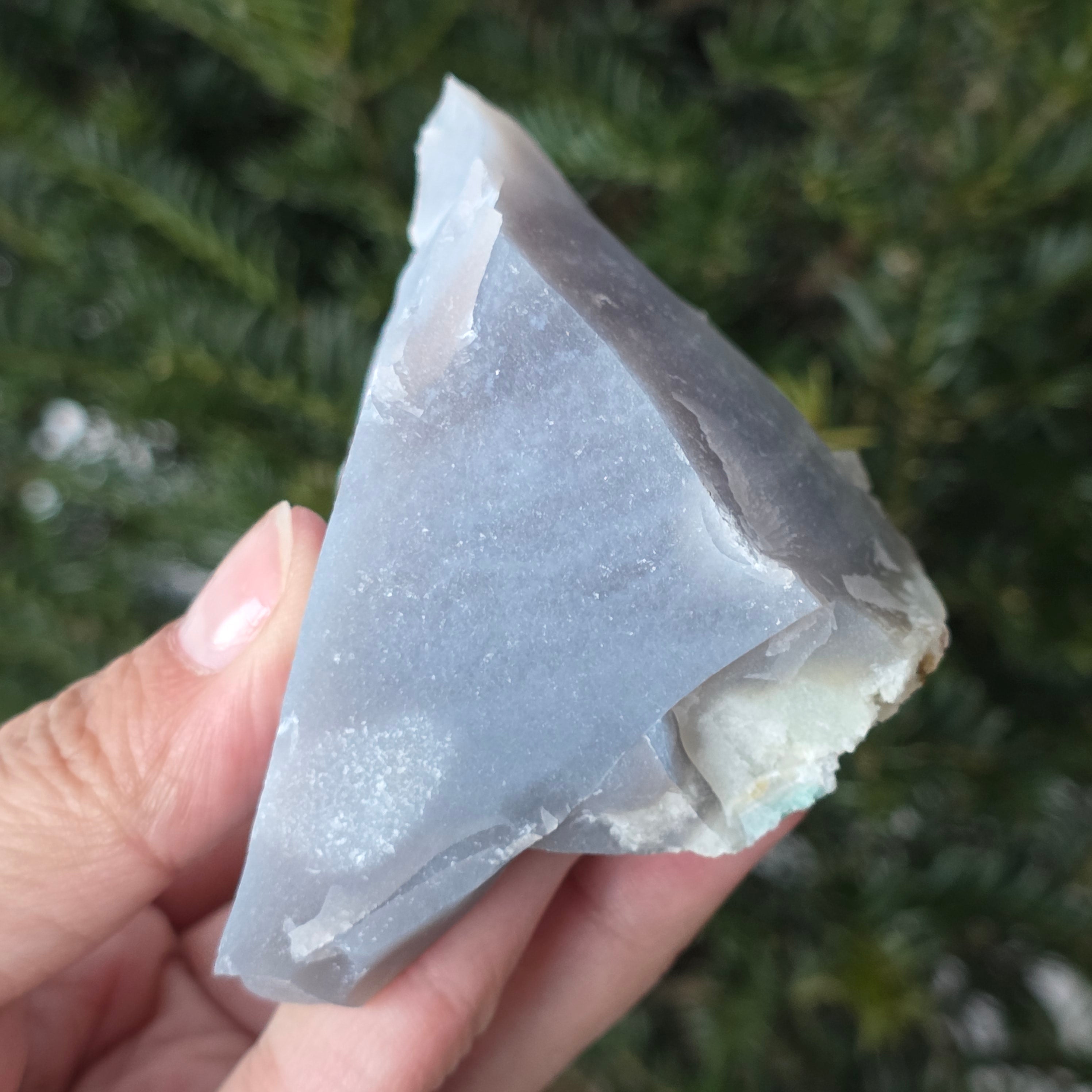 Синият калцедон, известен още като син ахат или небесен калцедон, е разновидност на микро-кристален кварц, която има нюанси на синьо.