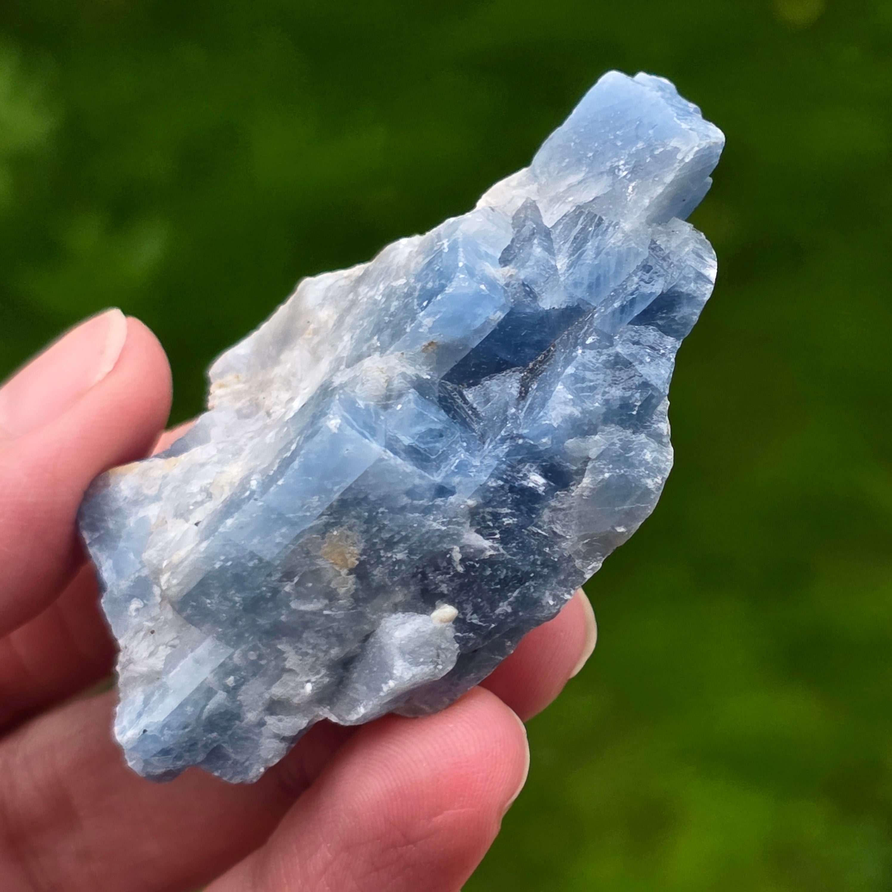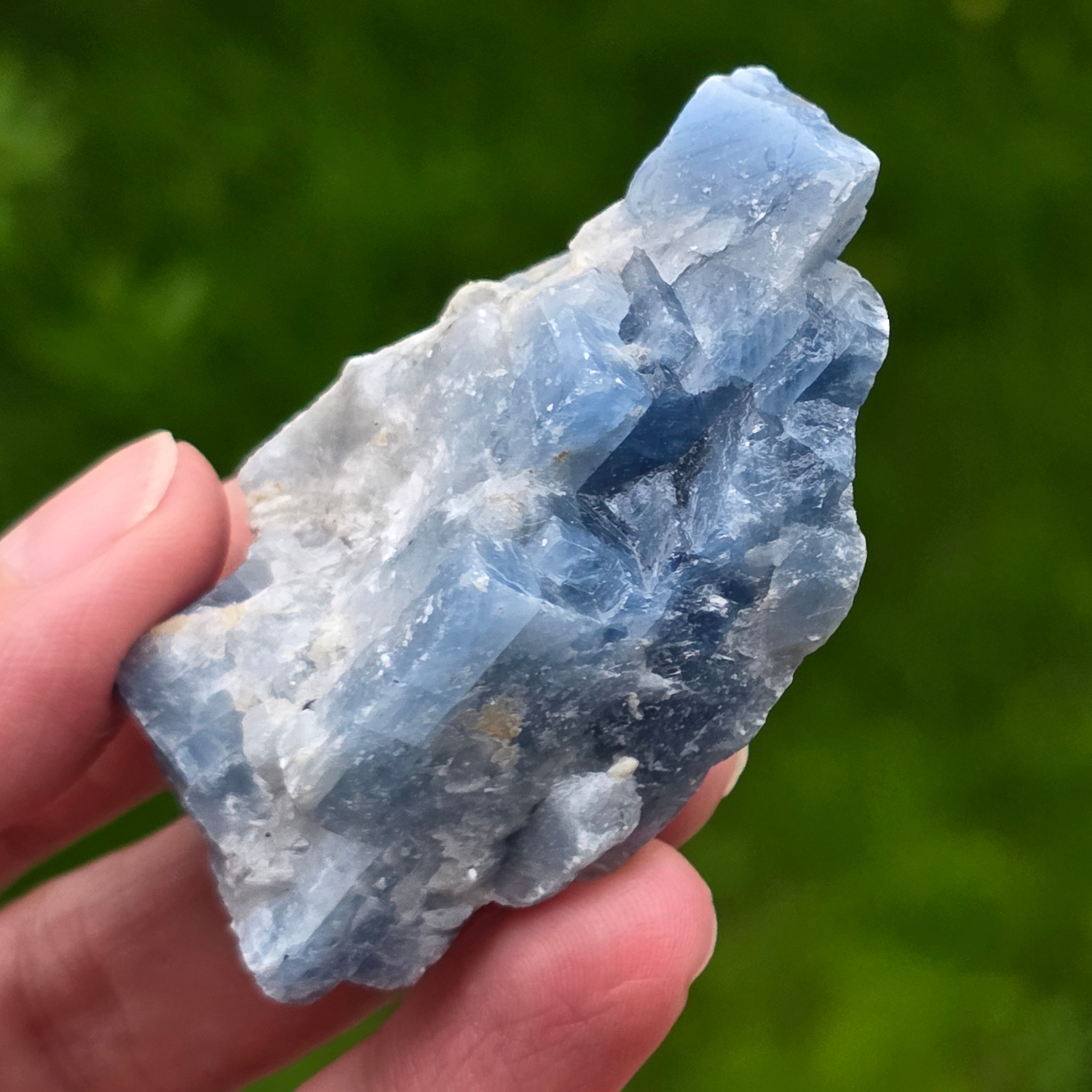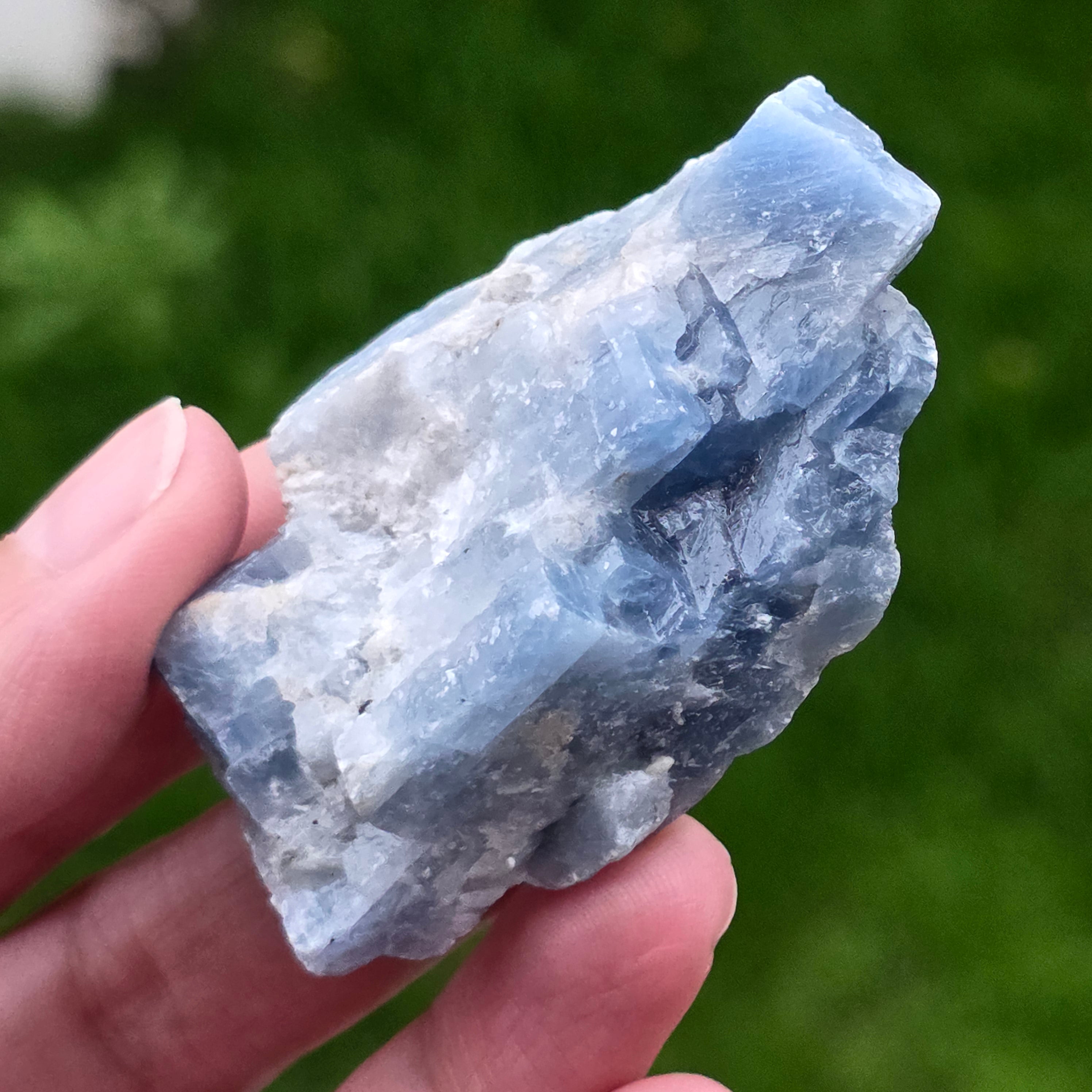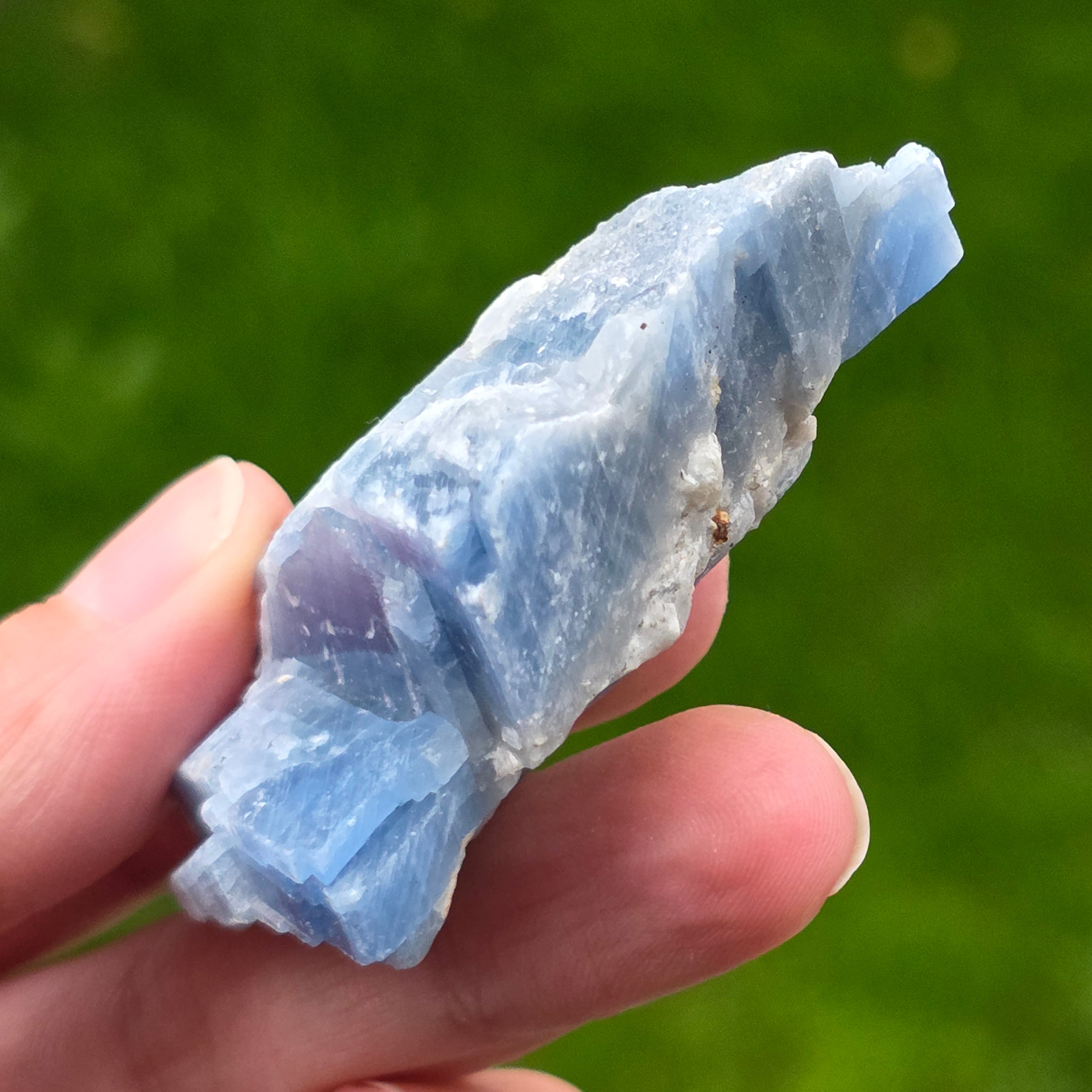 Синият калцит е известен със своето успокояващо действие върху цялото енергийно поле, което има и силна защитна роля.