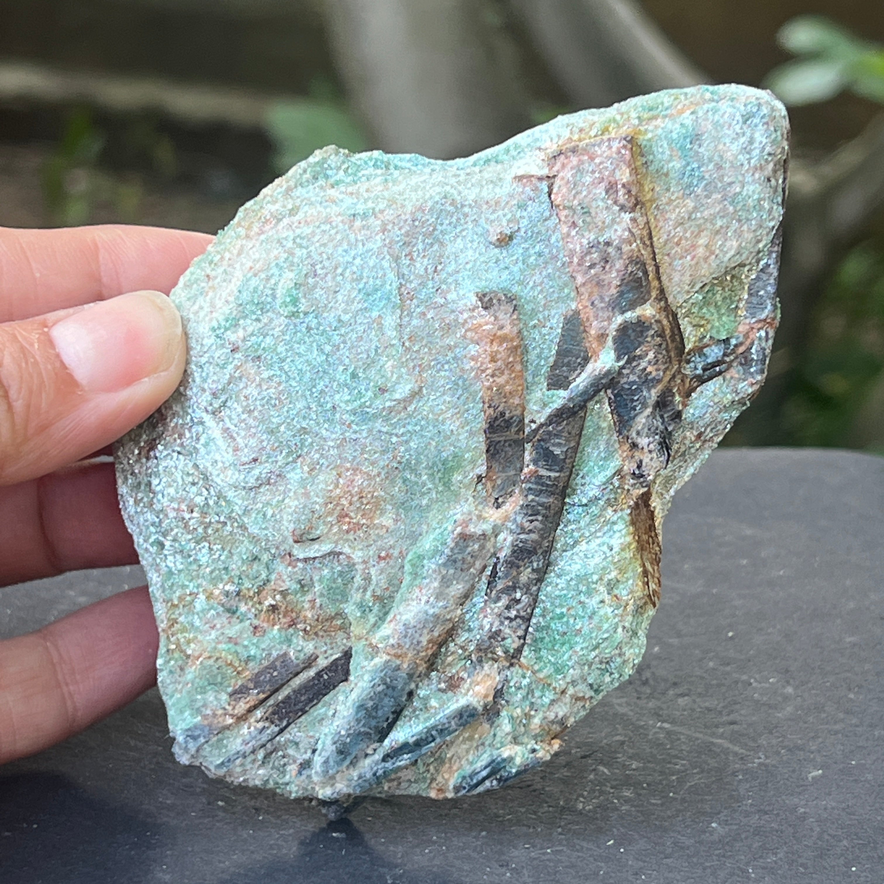 Ревюта – Син кианит (кианит) във фуксит необработен камък m2