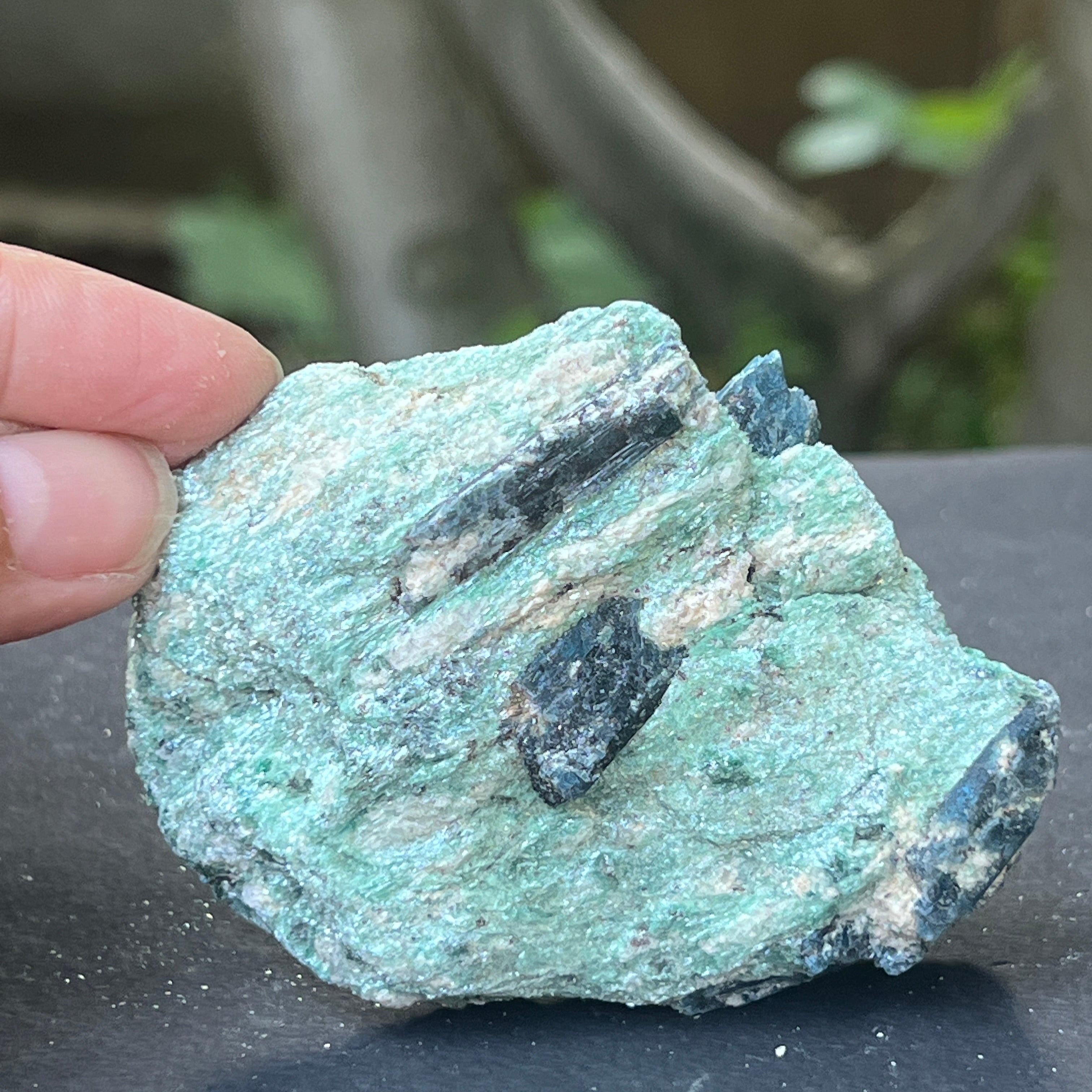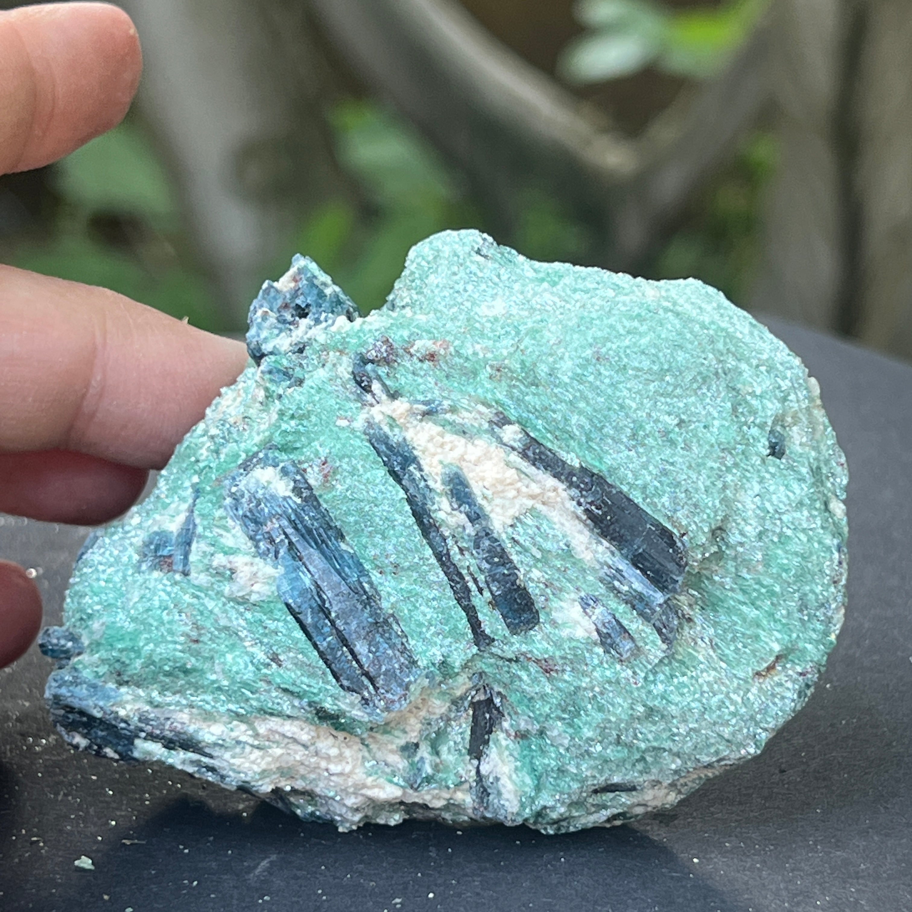 Ревюта – Син кианит (кианит) в необработен камък фуксит | Модел 4