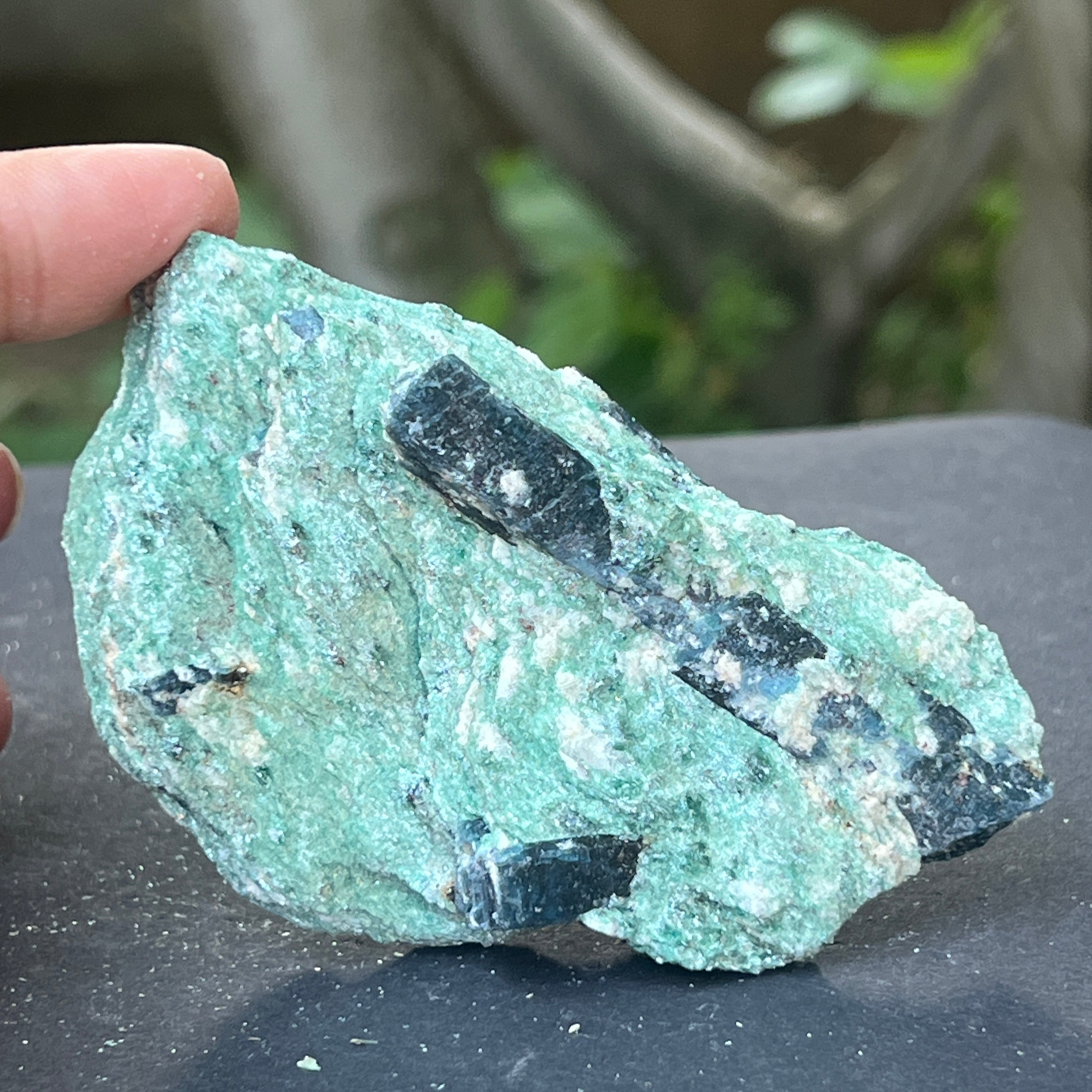 Ревюта – Син кианит (кианит) в необработен камък фуксит | Модел 5