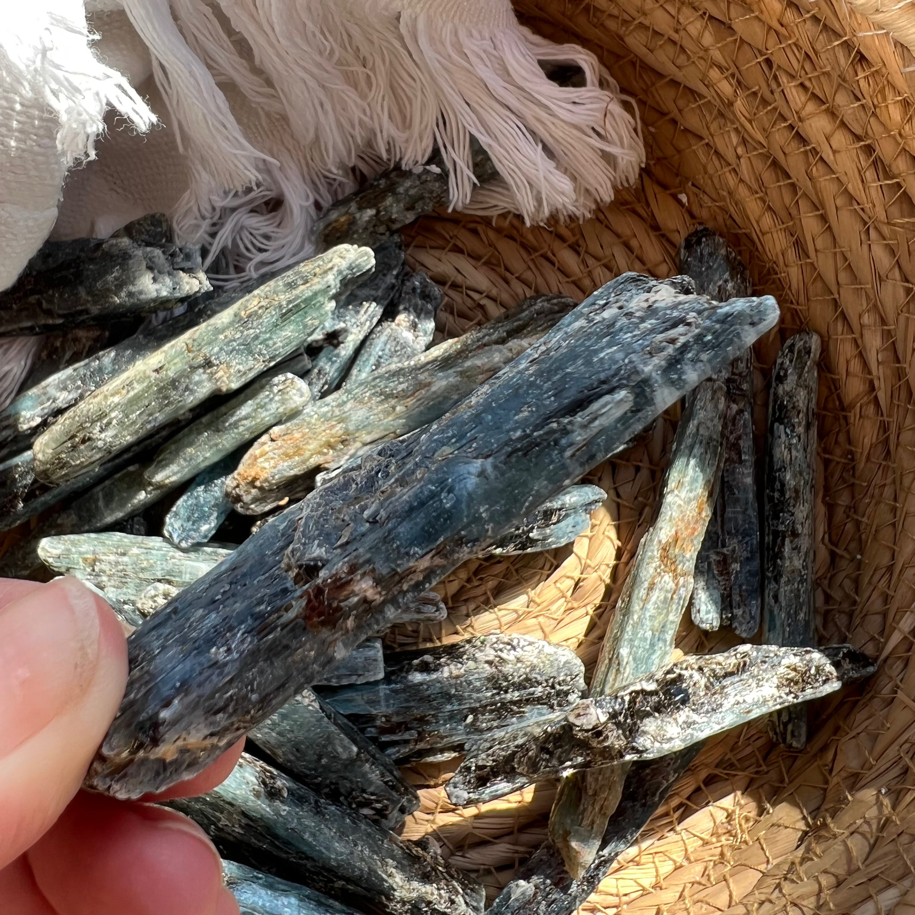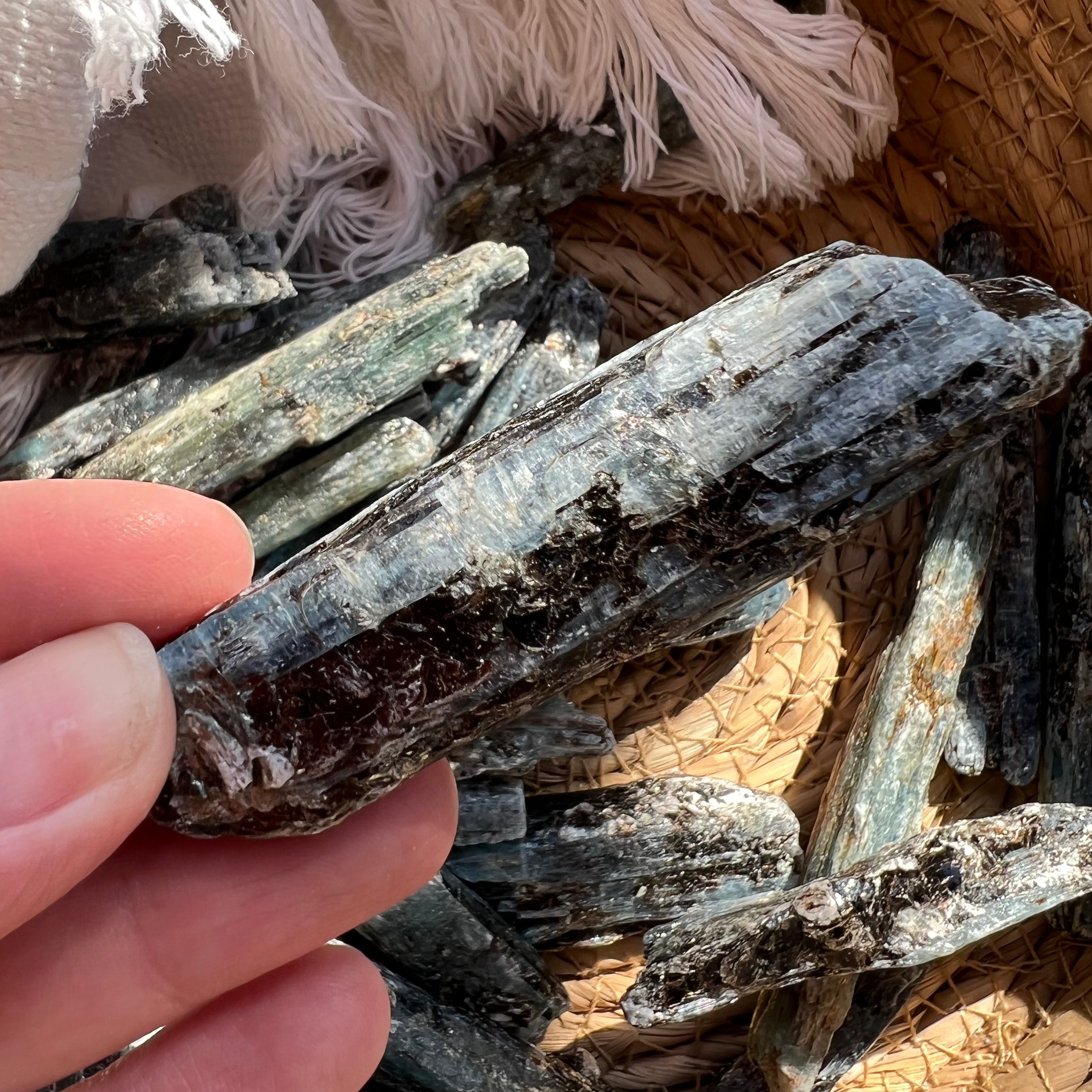 Син кианит (Кианит) необработен камък, размери между 6 - 8 см. Моля, изберете желаната големина.