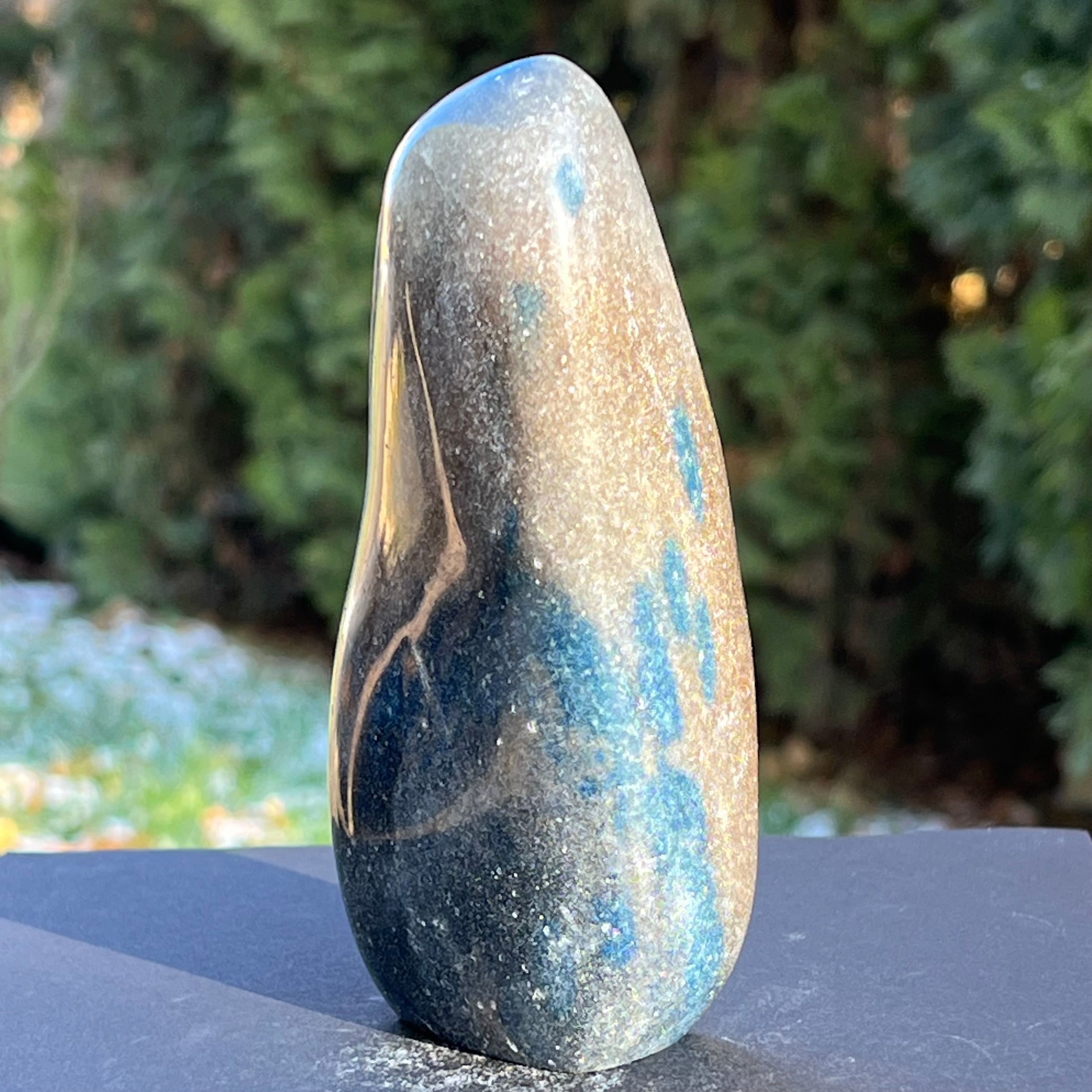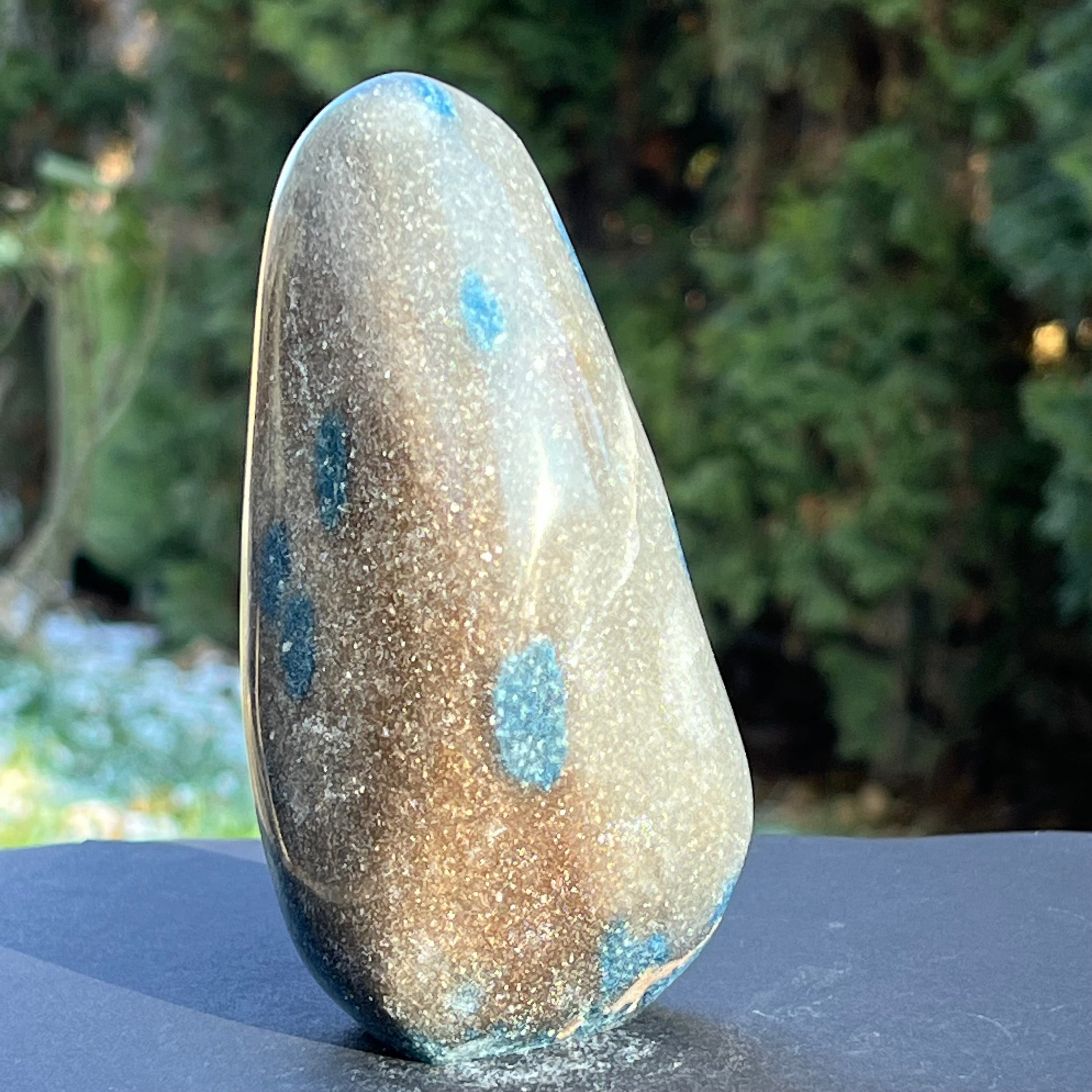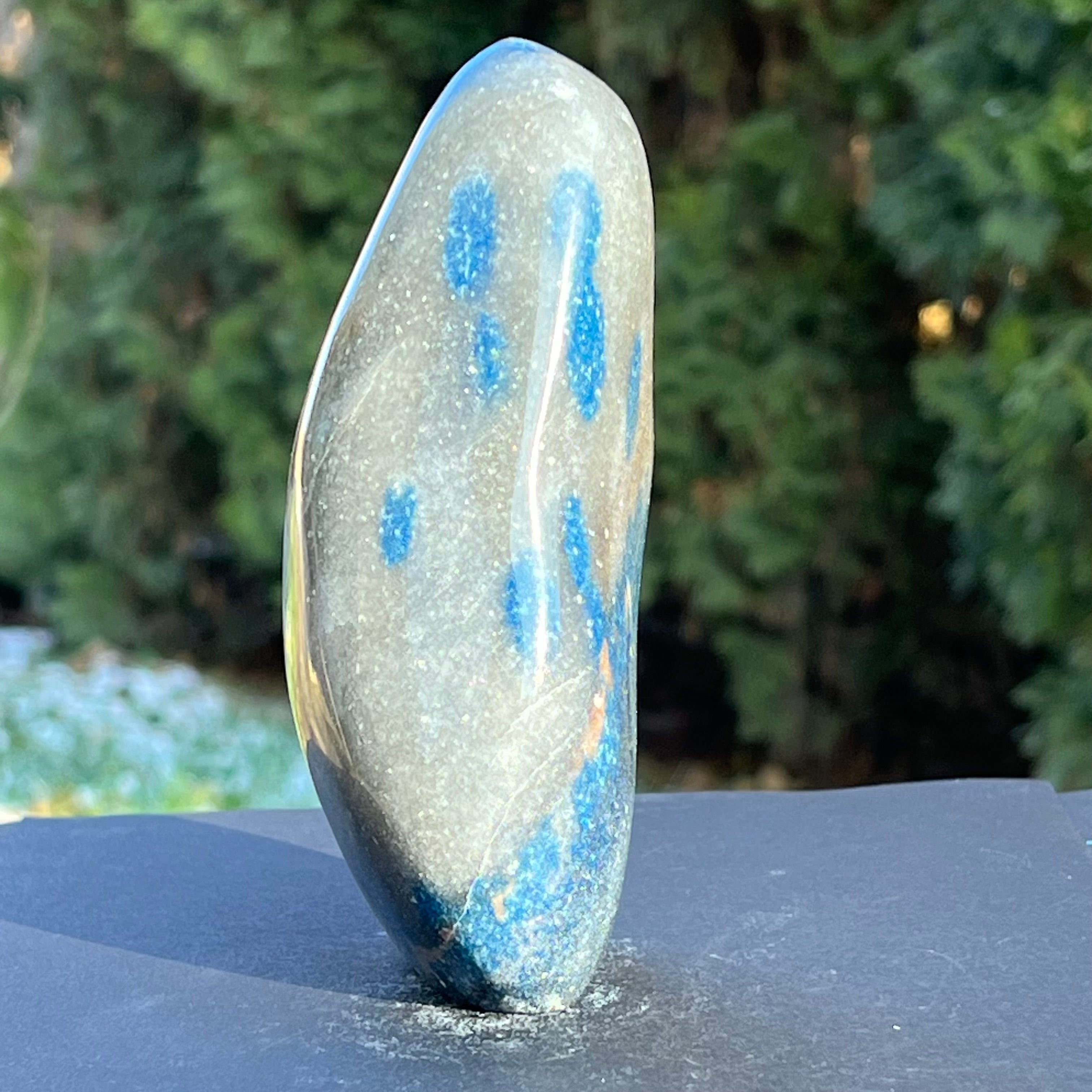 Син шпинел от Мадагаскар, свободна форма, модел 4a/2, размер: 14 * 7 * 5 см, 737 грама