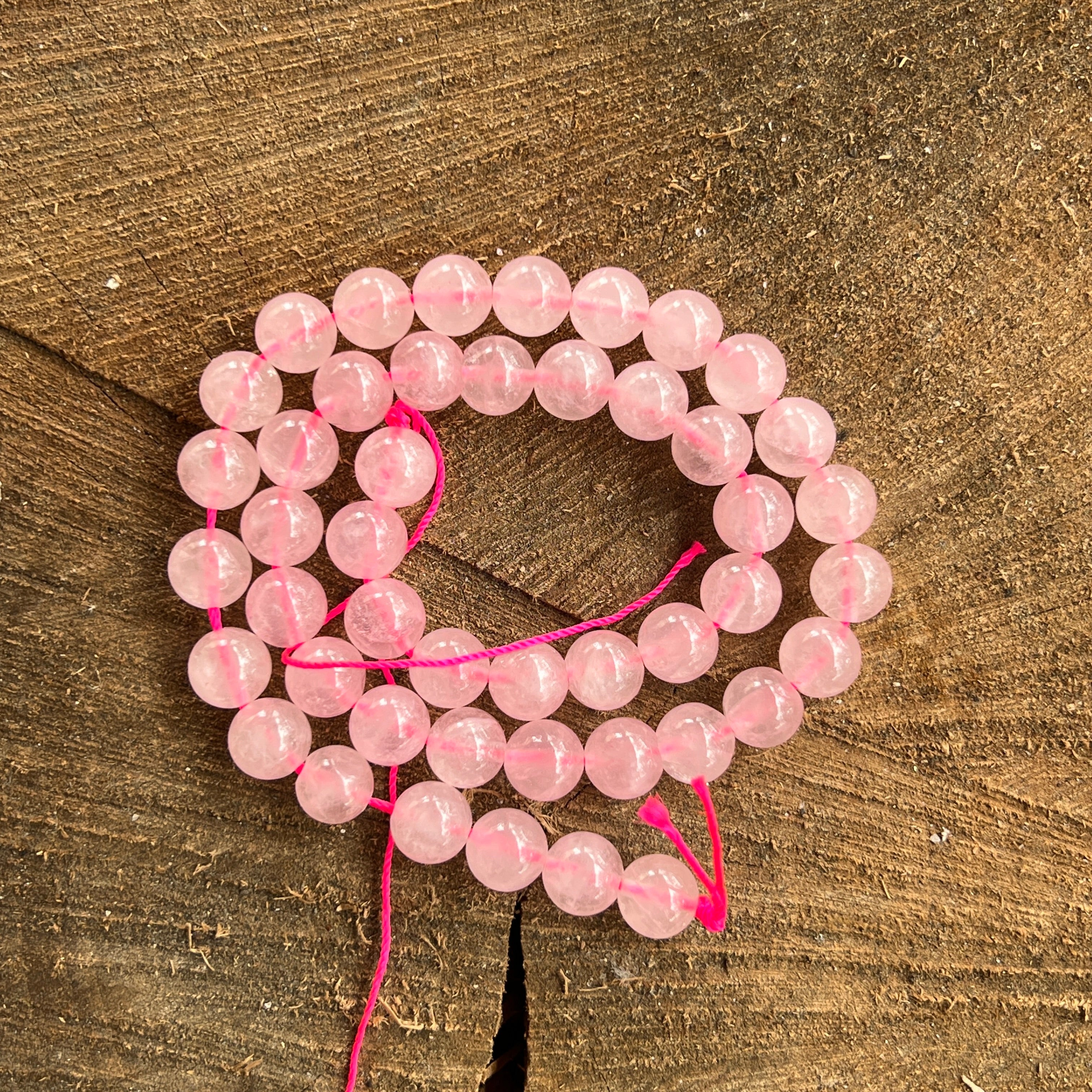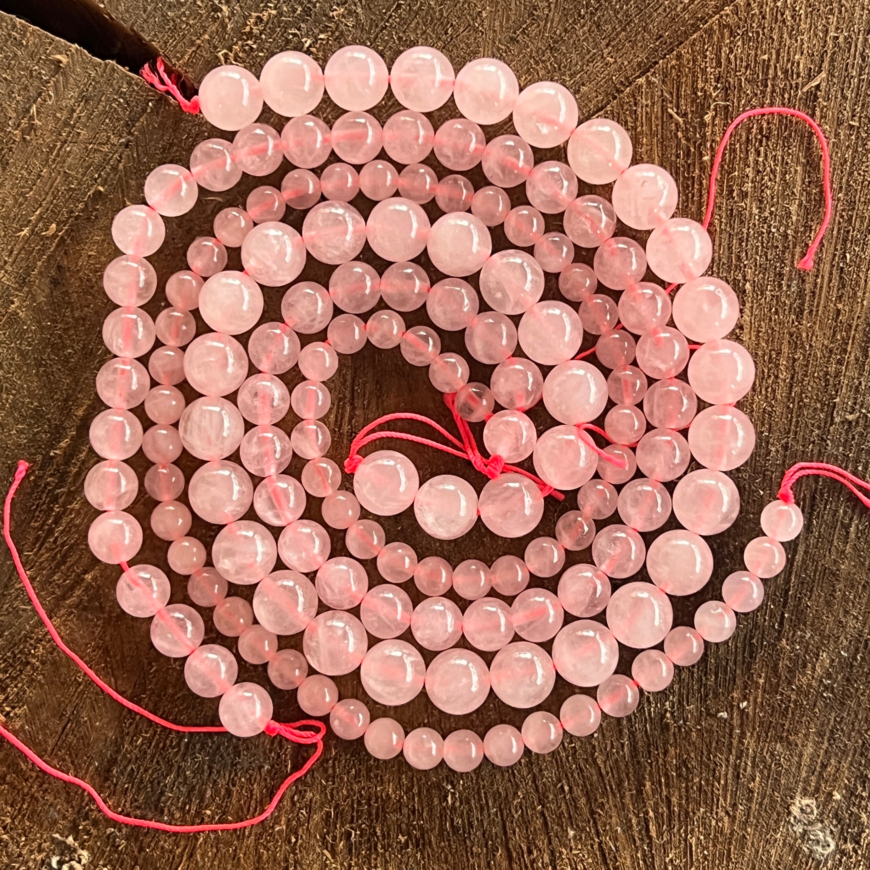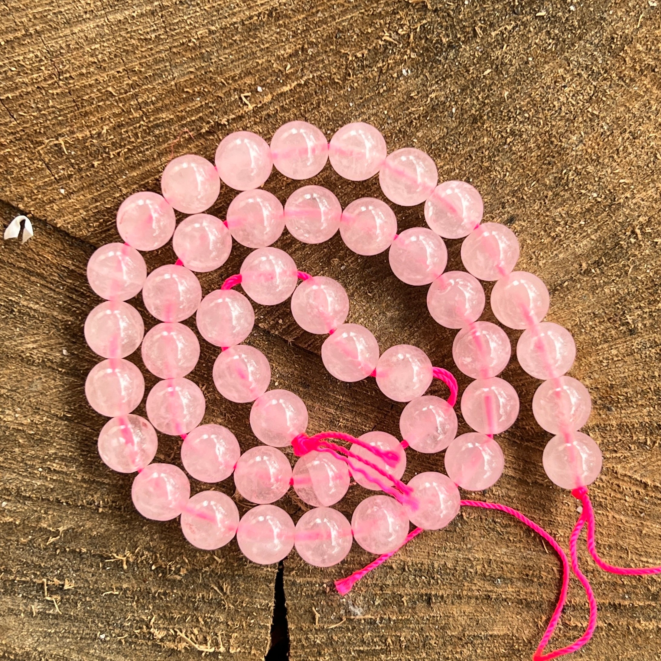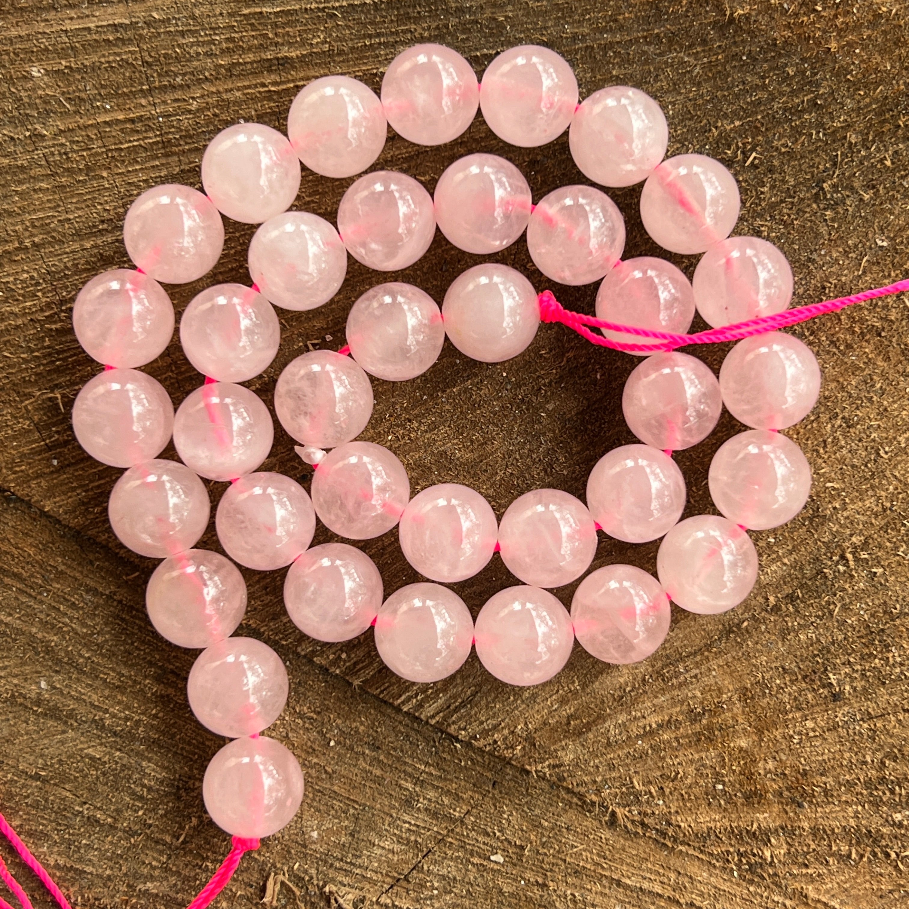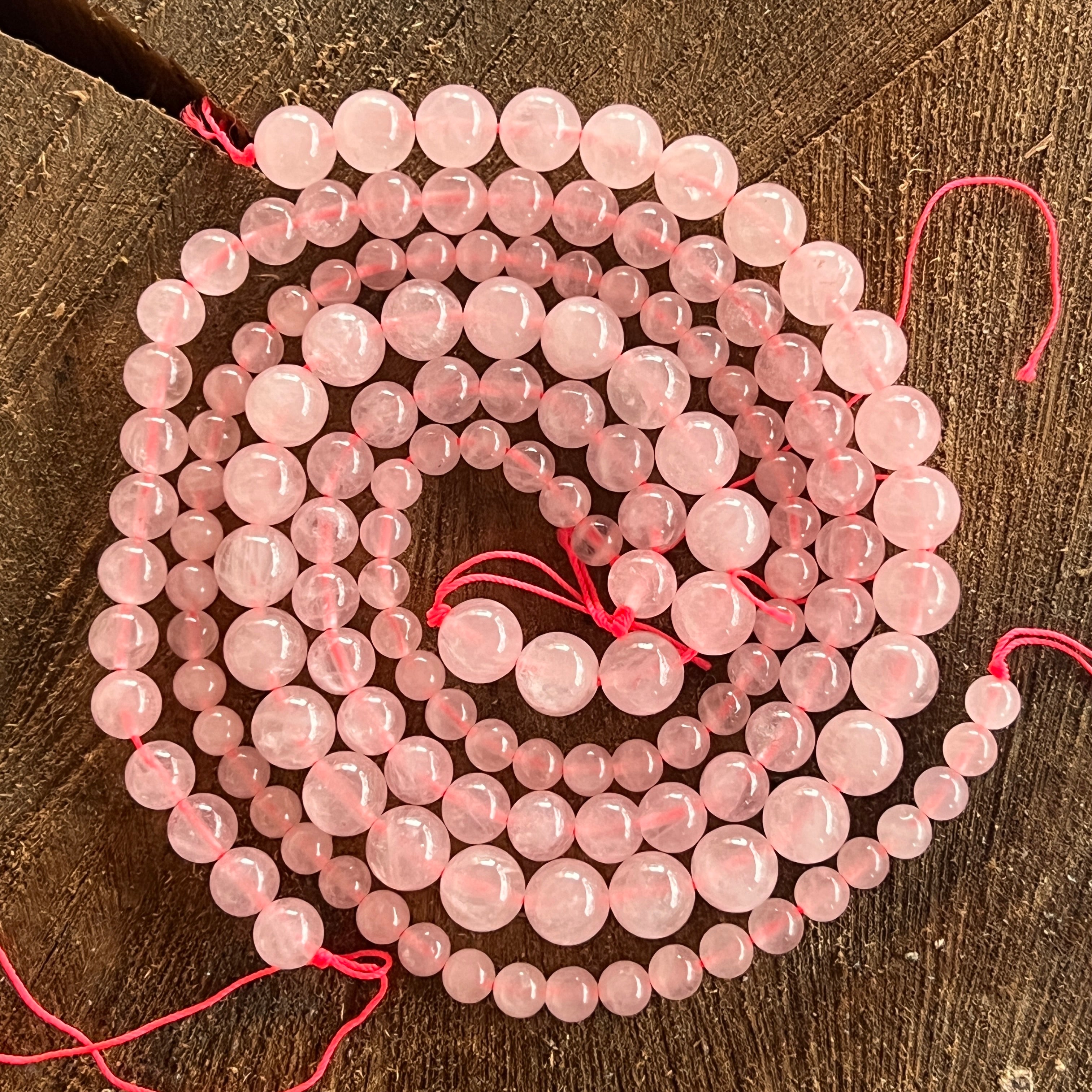Струна с розова кварцова сфера, състоящ се от Естествени сферични мъниста, идеални за колиета, гривни или други ръчно изработени бижута.