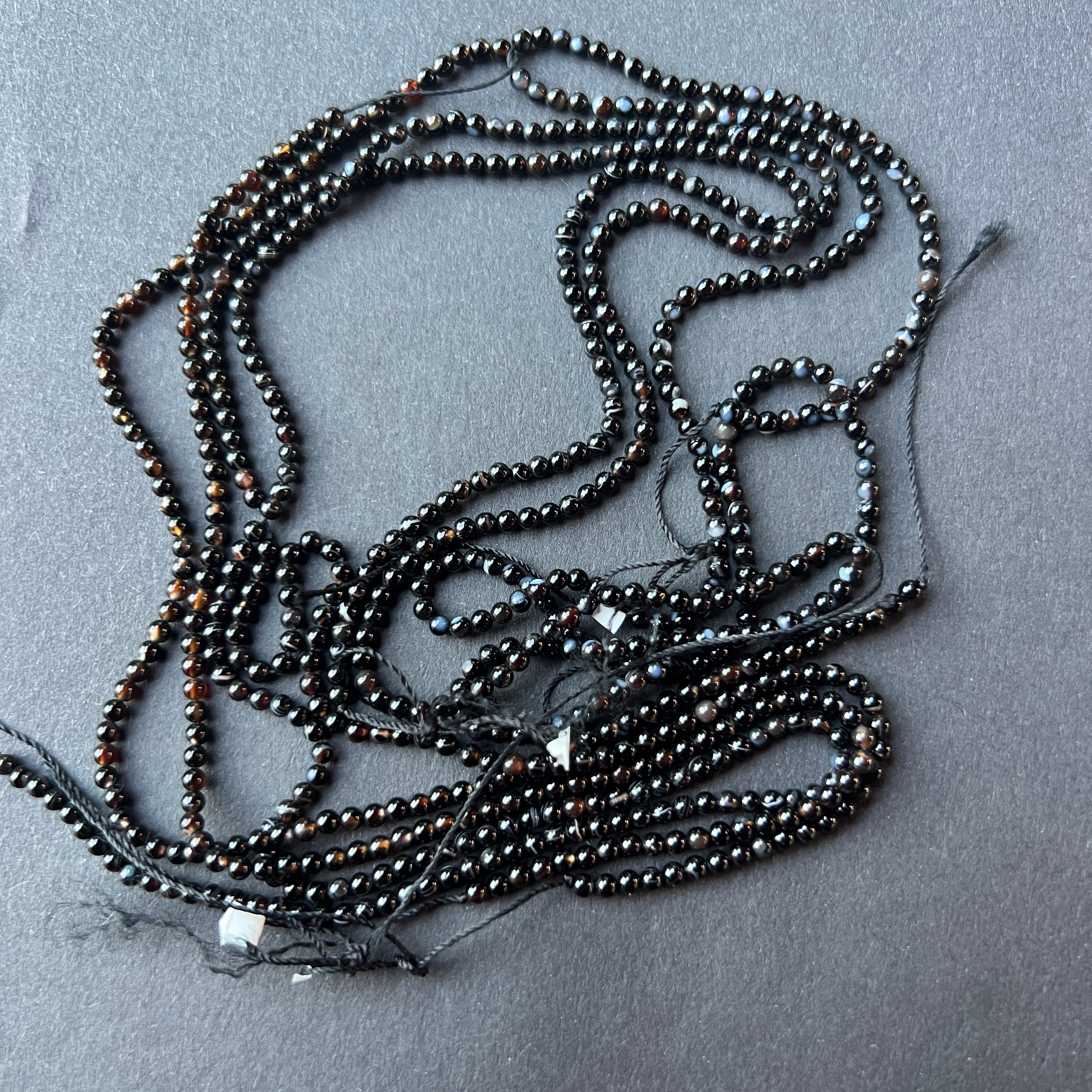 Нишка от ЧЕРЕН САРДОНИКС, състоящ се от Естествени сферични мъниста, идеални за колиета, гривни или други ръчно изработени бижута.
