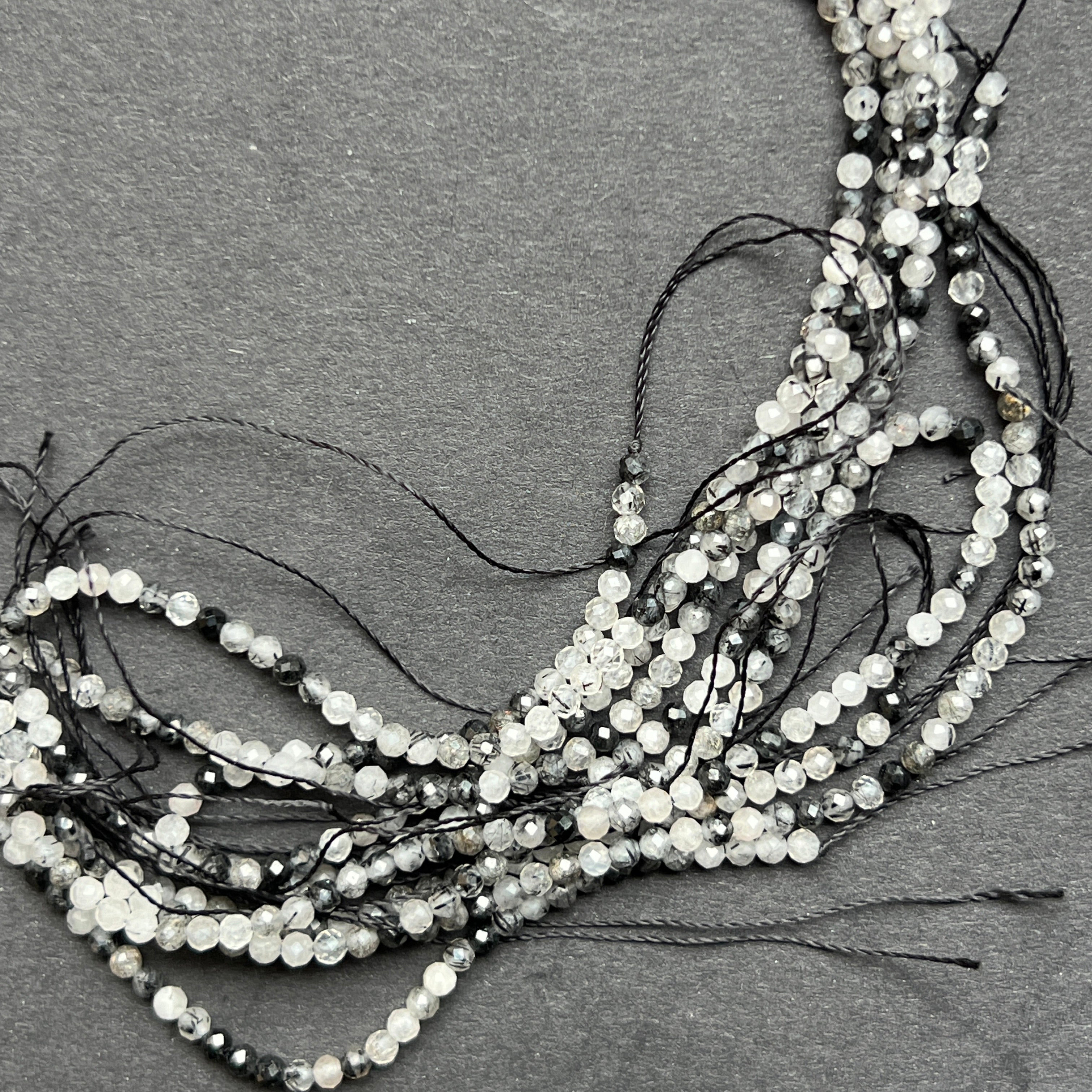 Сираг мъниста Полускъпоценни камъни Фасетирани сфери КВАРЦ С ТУРМАЛИН