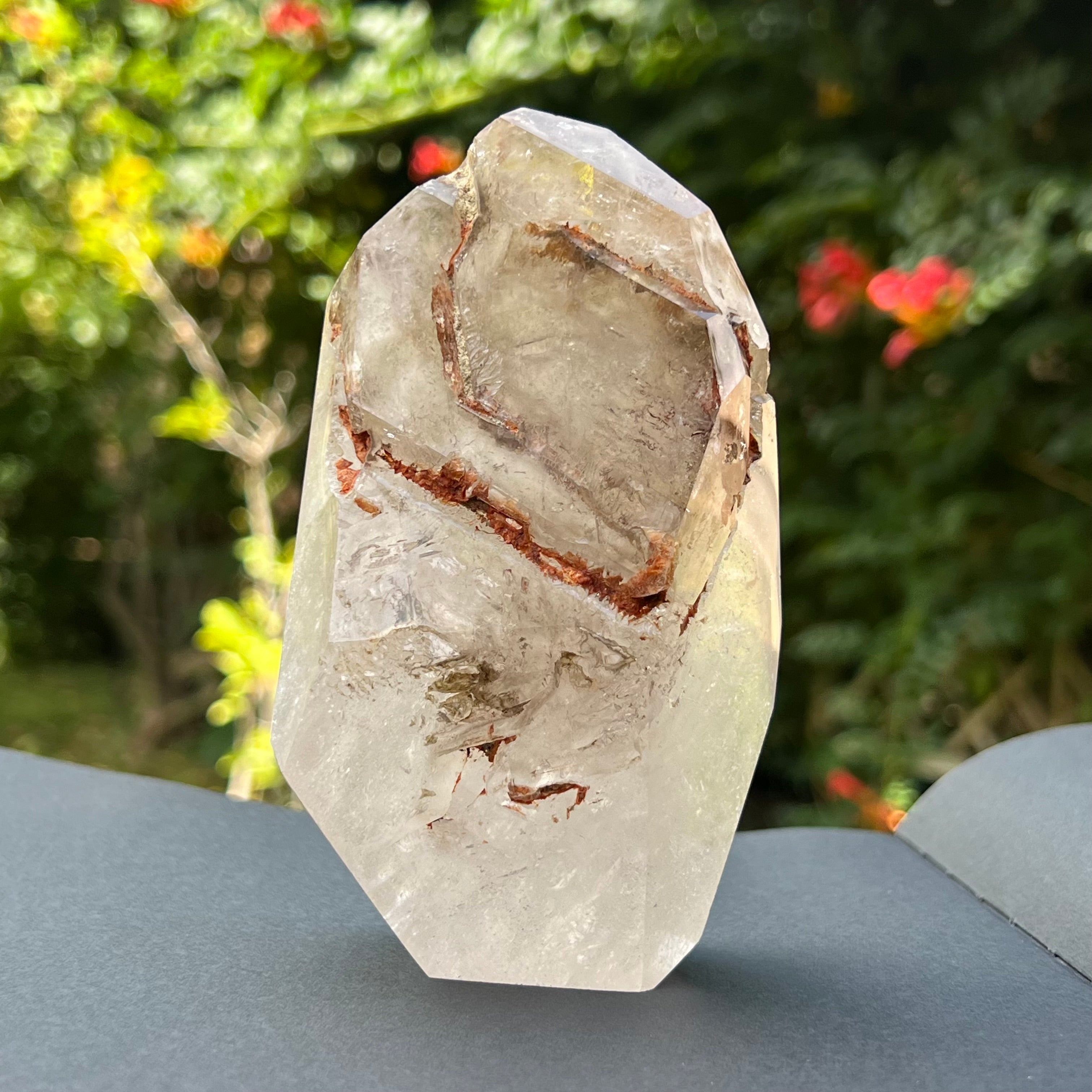 Скален кварцов генератор/ накрайник с хематоидни вложки модел 1, размер: 12,5 * 7,5 * 4 см