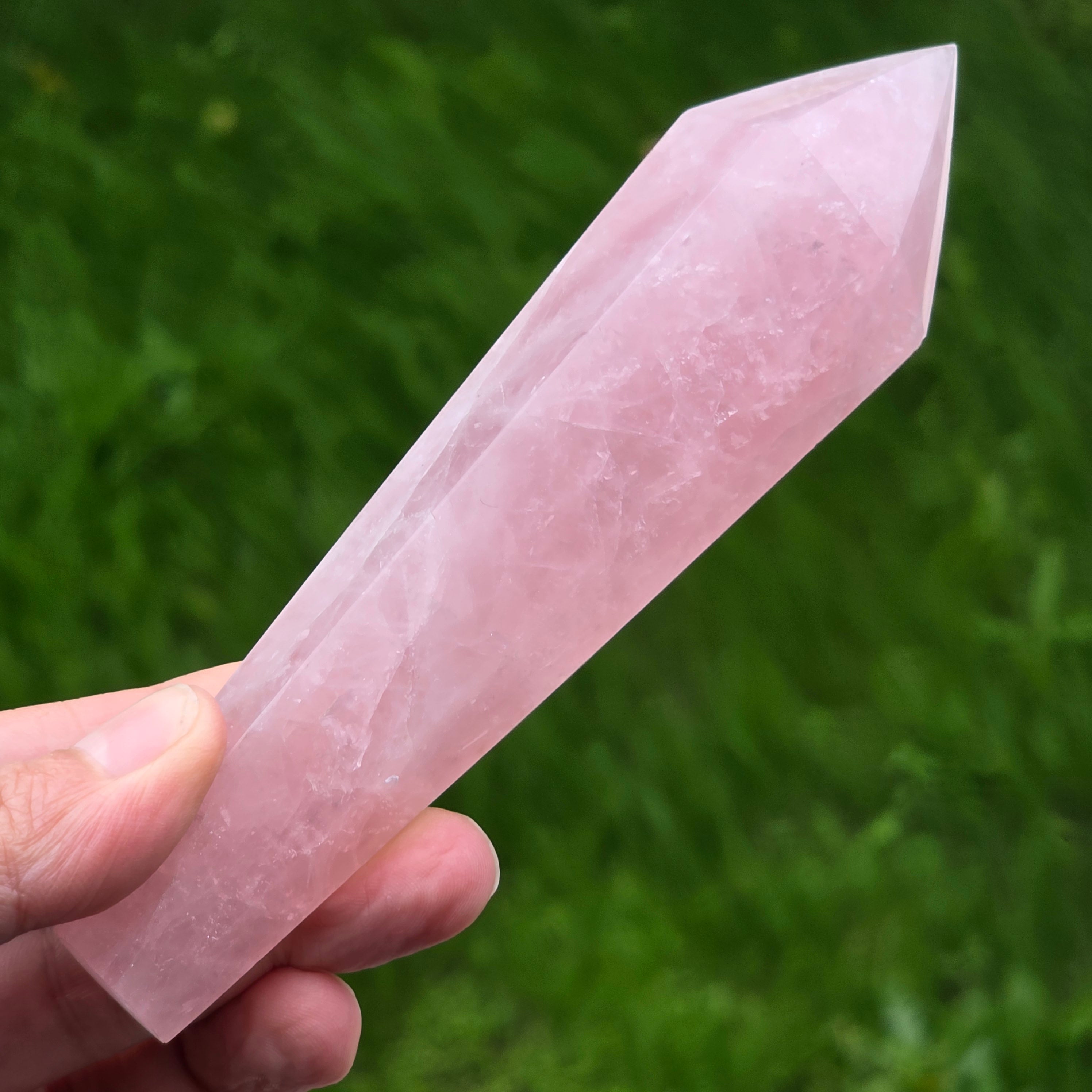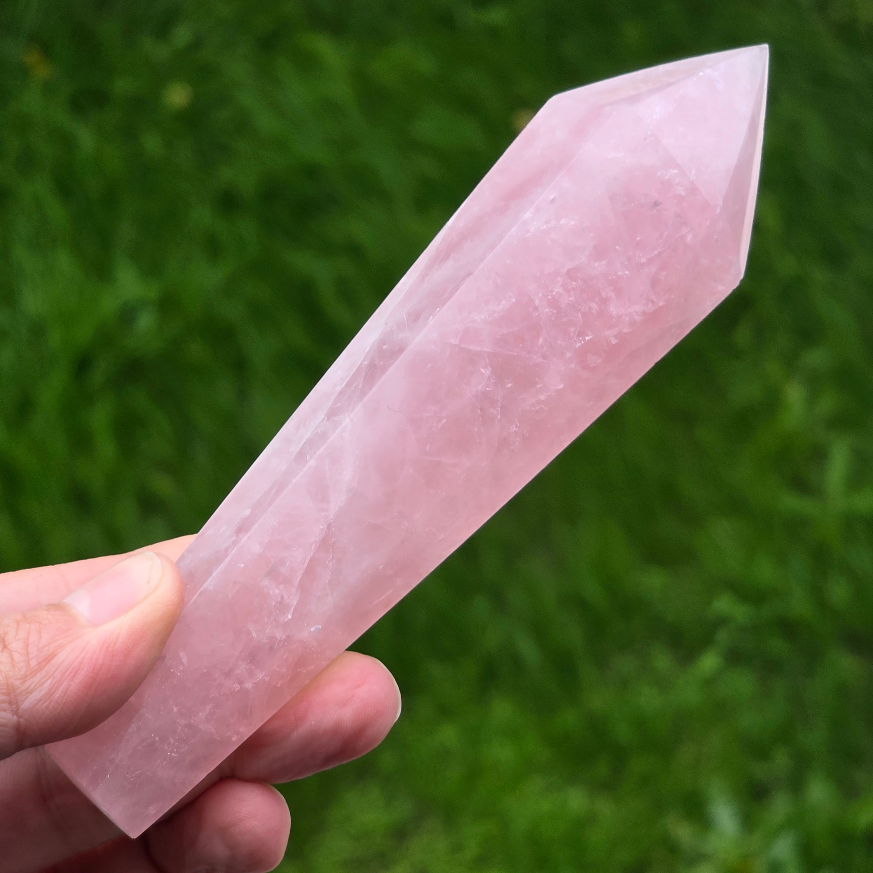Скиптърът от розов кварц е инструмент, използван особено в енергийни практики, холистичен масаж и медитация. Удължената му форма и добре очертаният връх позволяват насочващо намерение, балансиране на енергийния поток и фокус на вниманието в области, където имате нужда от спокойствие или яснота. Често се използва за енергичен масаж, идеален за дълги маршрути по меридиани, за отпускане на раменете, гърба или дланта. По време на медитация може да се държи в ръка, за да се засили състоянието на спокойствие и вътрешна връзка.