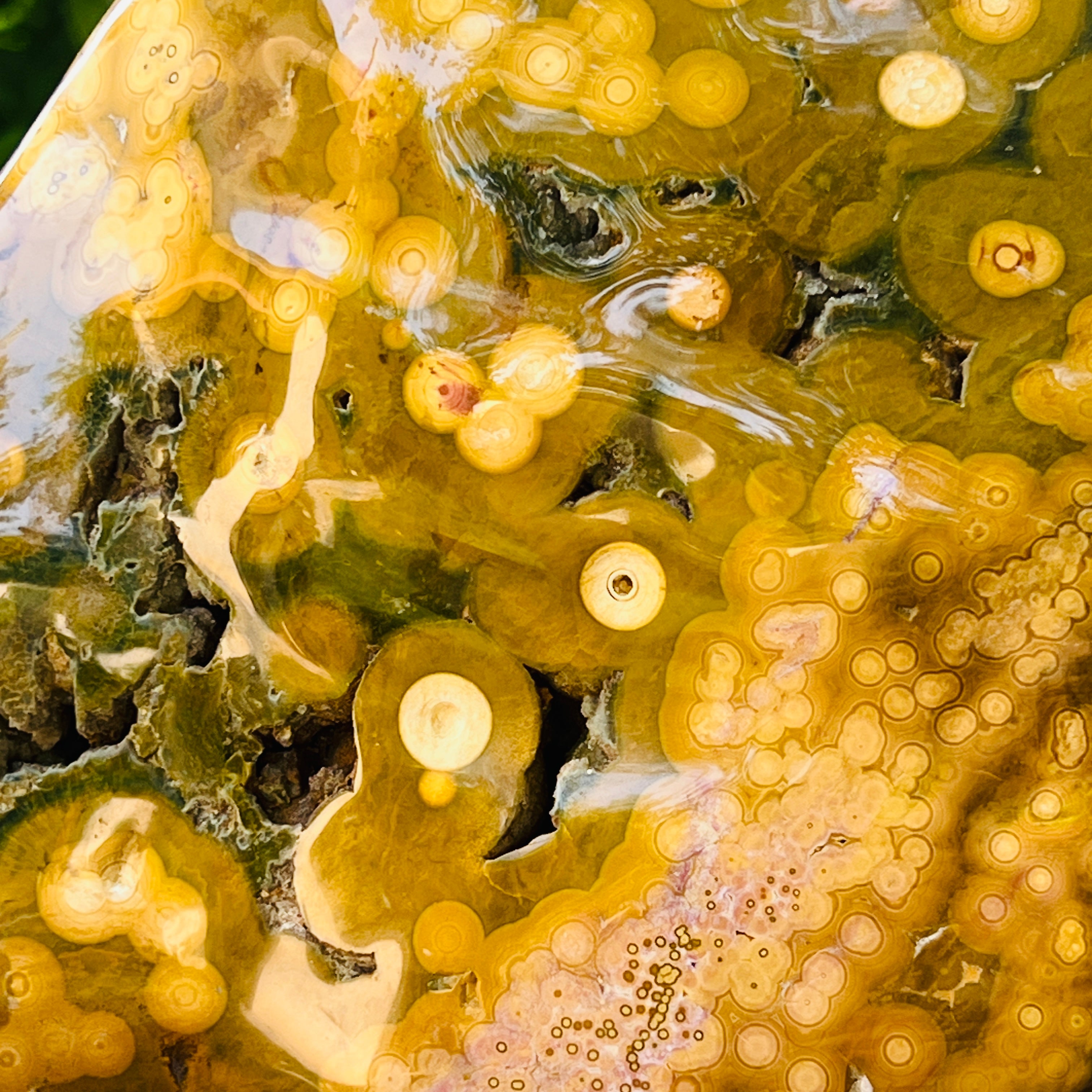 Полихромният яспис често се свързва с естествените цикли на живота, като цикъла на раждането, растежа, разцвета и упадъка. Казва се, че той ни помага да разберем и приемем тези цикли и да ги интегрираме в нашето собствено жизнено пътешествие.