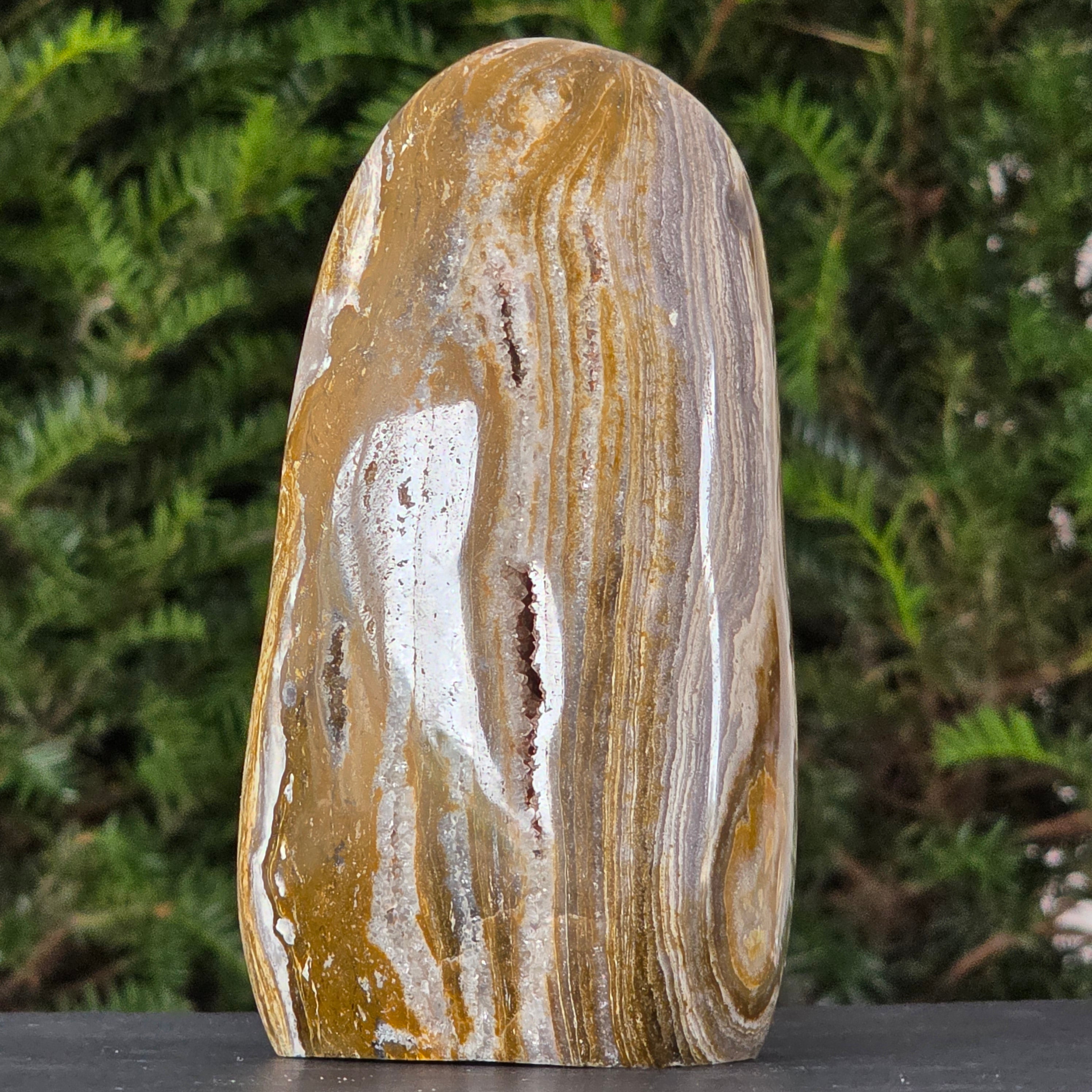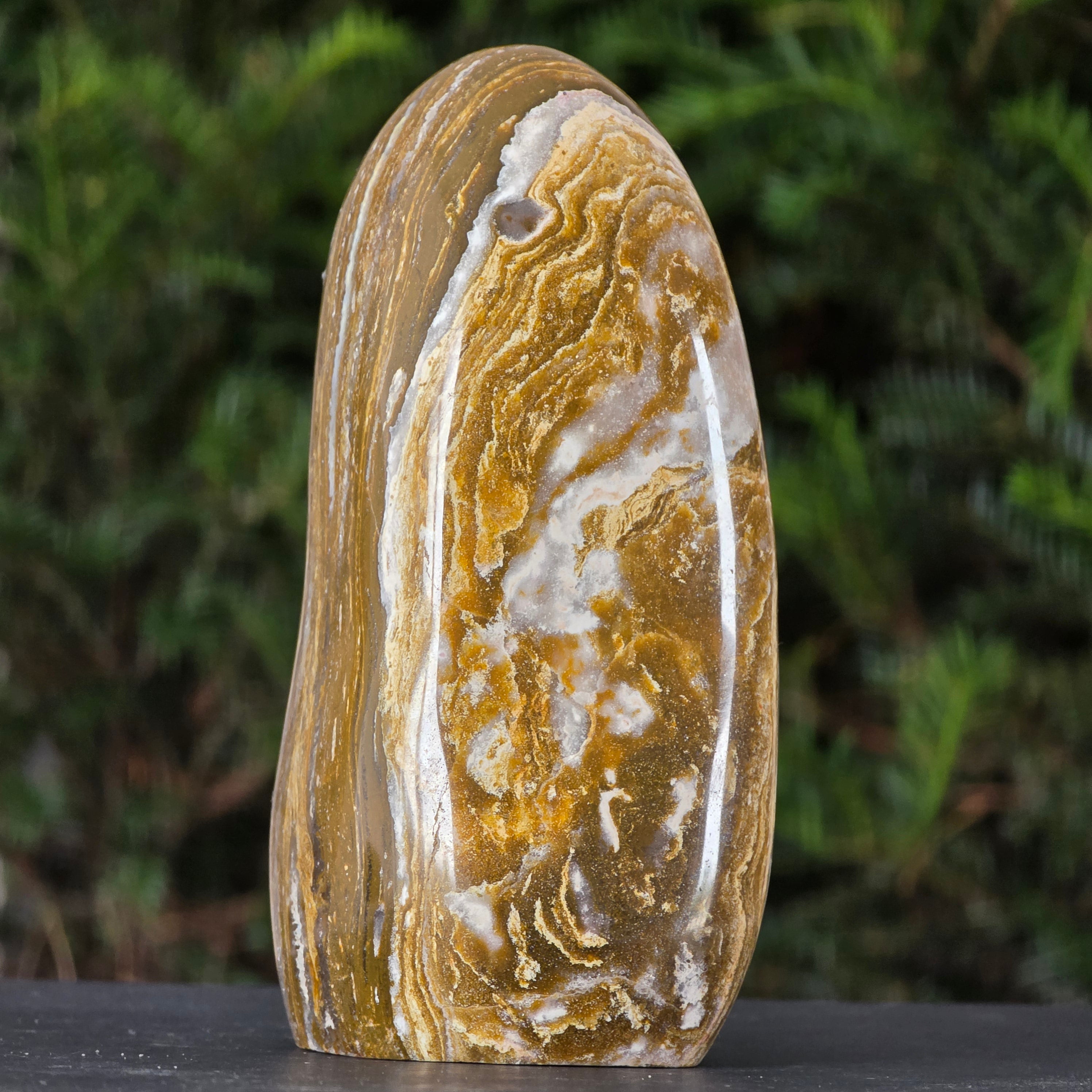 Всяко парче е уникално, издялано и ръчно полирано, за да запази органичната енергия на камъка, превръщайки го в декоративен предмет, който излъчва мир, красота и стабилност.