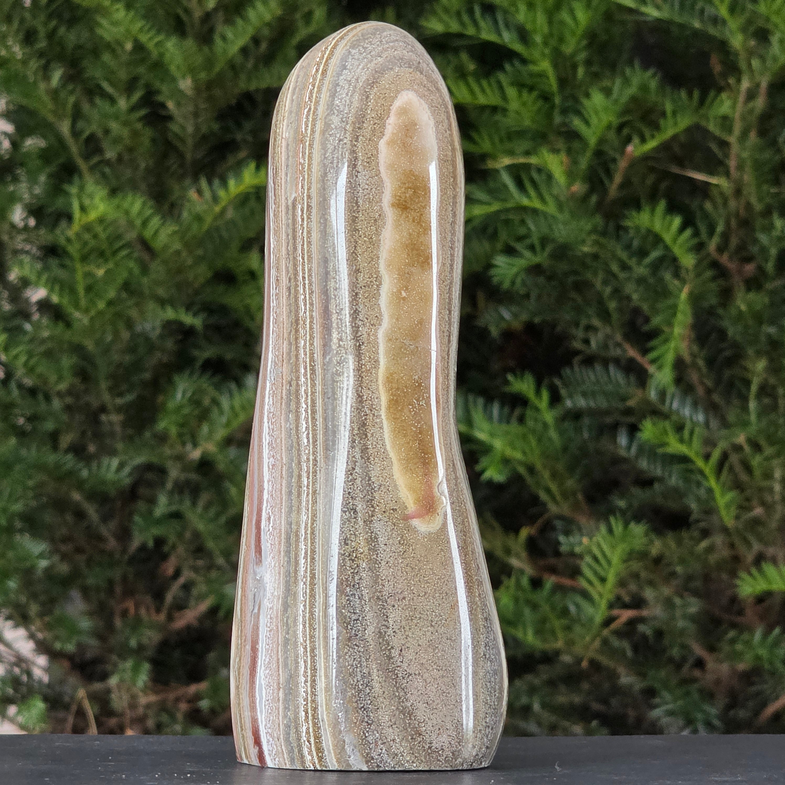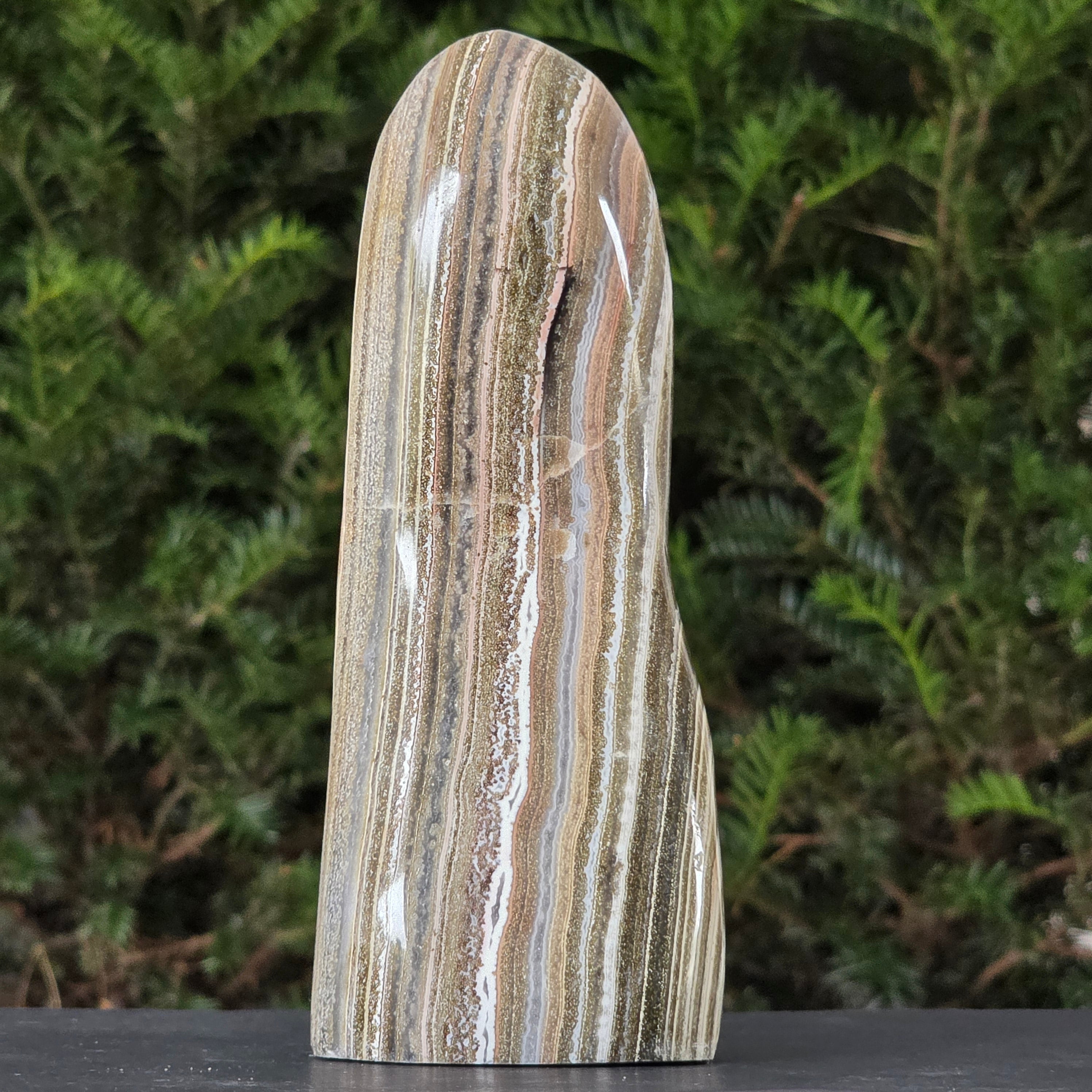 Всяко парче е уникално, издялано и ръчно полирано, за да запази органичната енергия на камъка, превръщайки го в декоративен предмет, който излъчва мир, красота и стабилност.