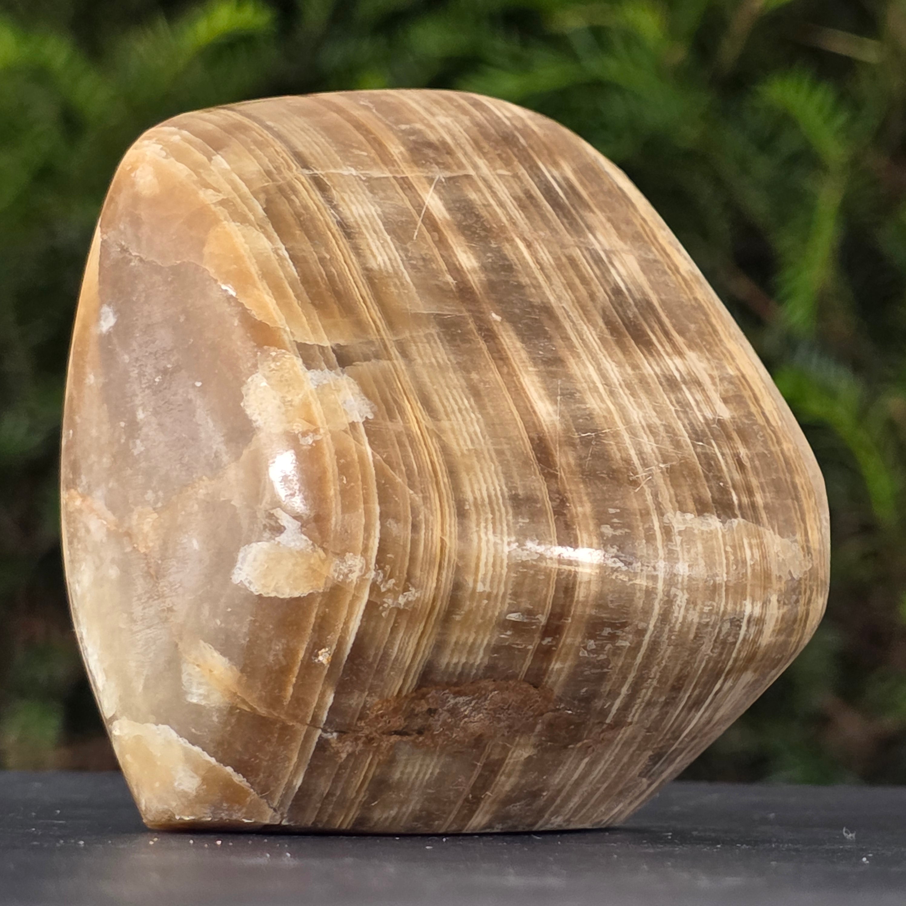 Всяко парче е уникално, издялано и ръчно полирано, за да се запази органичната енергия на камъка, превръщайки го в предмет за декорация, който излъчва спокойствие, красота и стабилност.