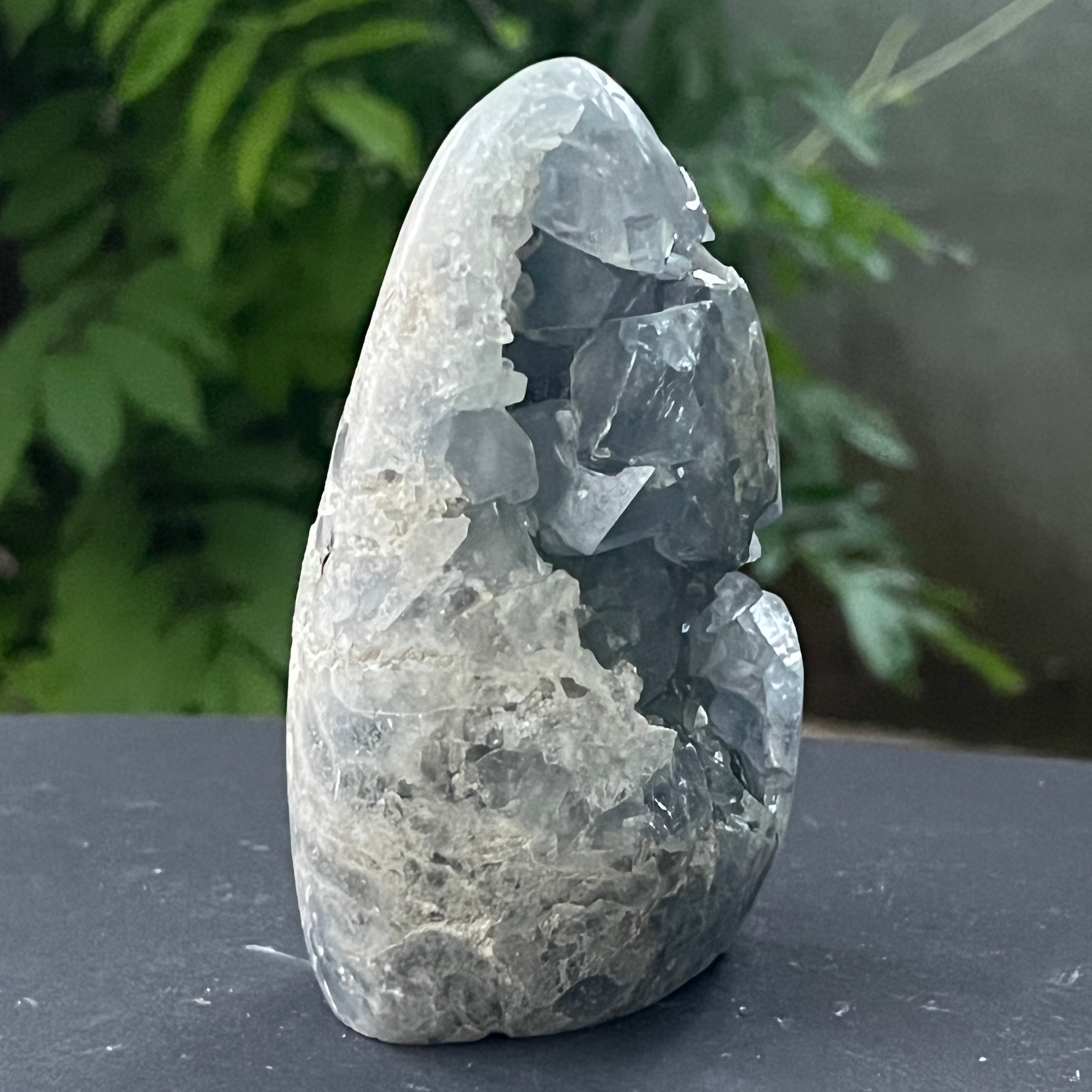 Целестинът е полускъпоценен камък със син или безцветен цвят, съставен от стронциев сулфат. Той има успокояващи и релаксиращи свойства, често се използва при медитация и духовни практики за насърчаване на вътрешния мир и умствената яснота. Целестинът се свързва с гърлената чакра и може да помогне за ясна комуникация и изразяване на емоции. Също така се вярва, че подобрява креативността, интуицията и психическите способности.