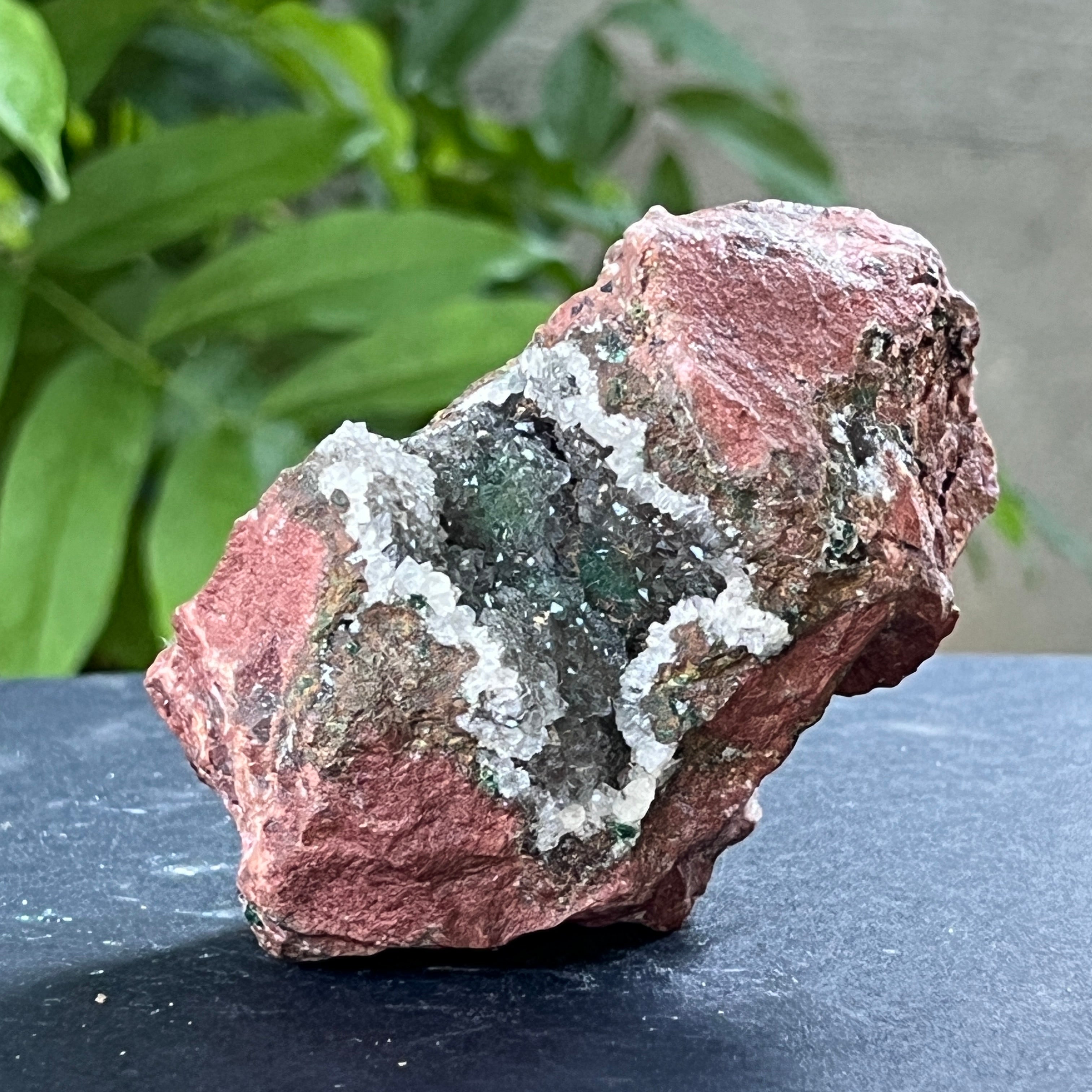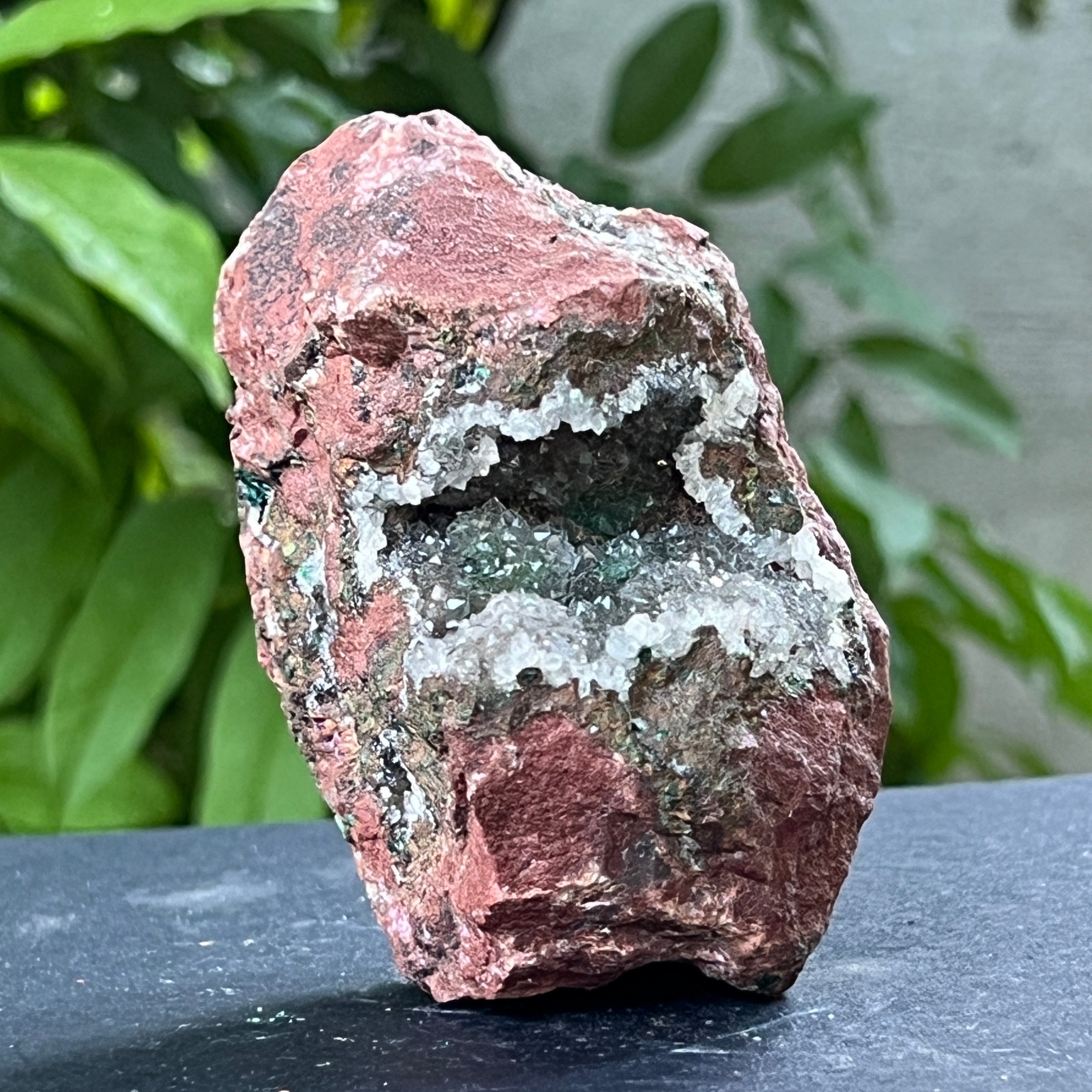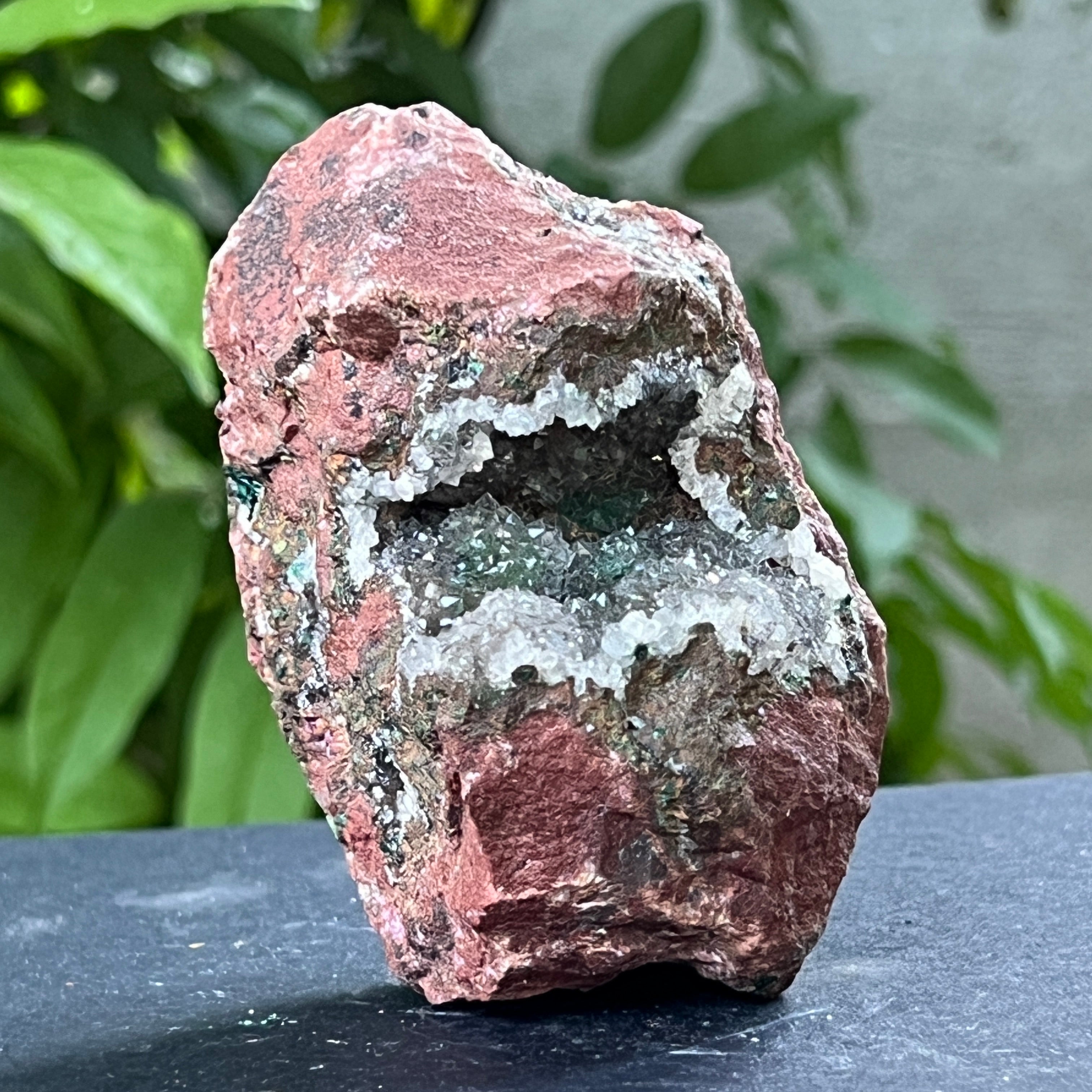 Редък фрагмент от естествена алхимия, където деликатната светлина на доломита се преплита с наситенозеления малахит, всички вкоренени в силна медна матрица. Този автентичен клъстер носи в себе си бавната история на земята – среща между спокойствие, трансформация и жизнена сила.