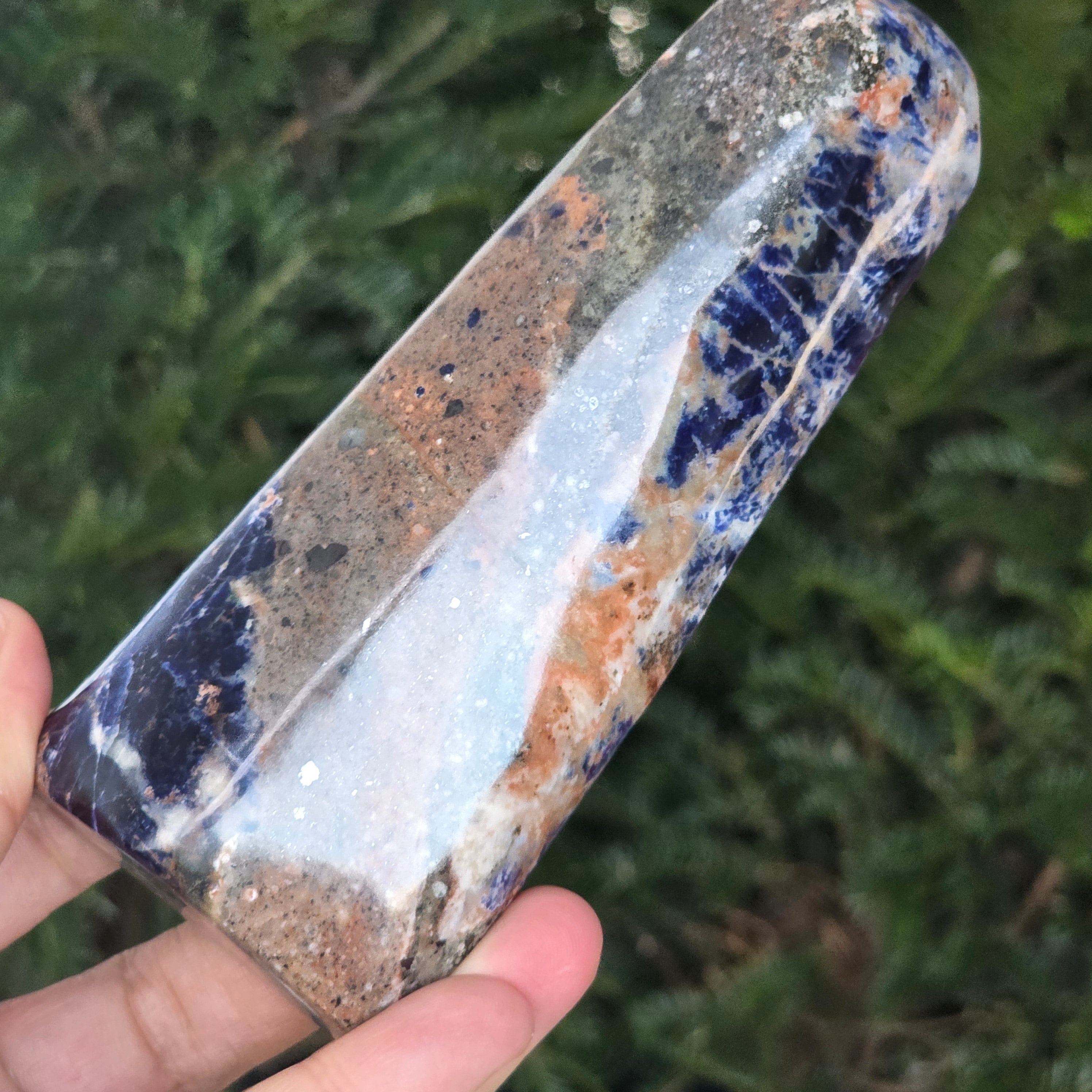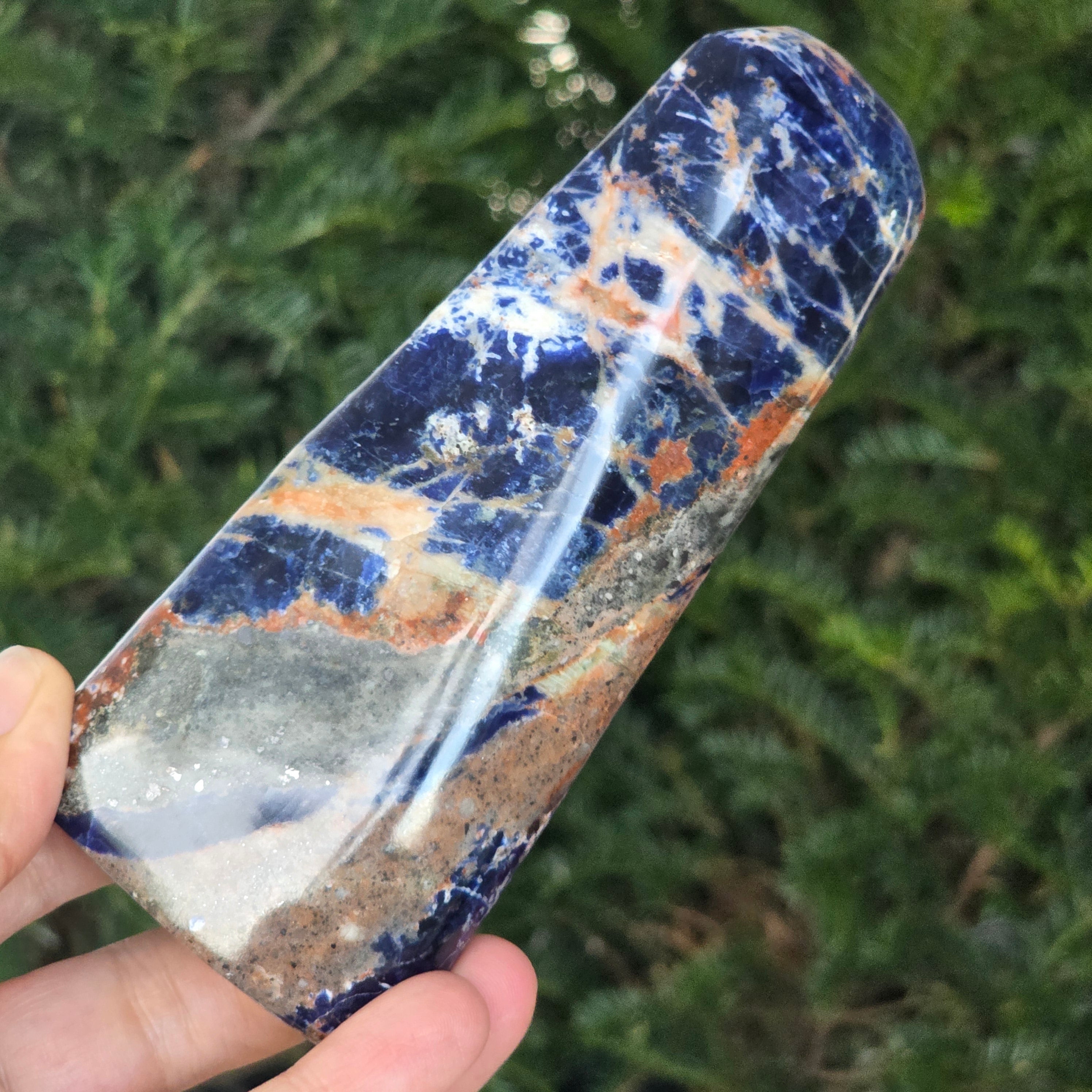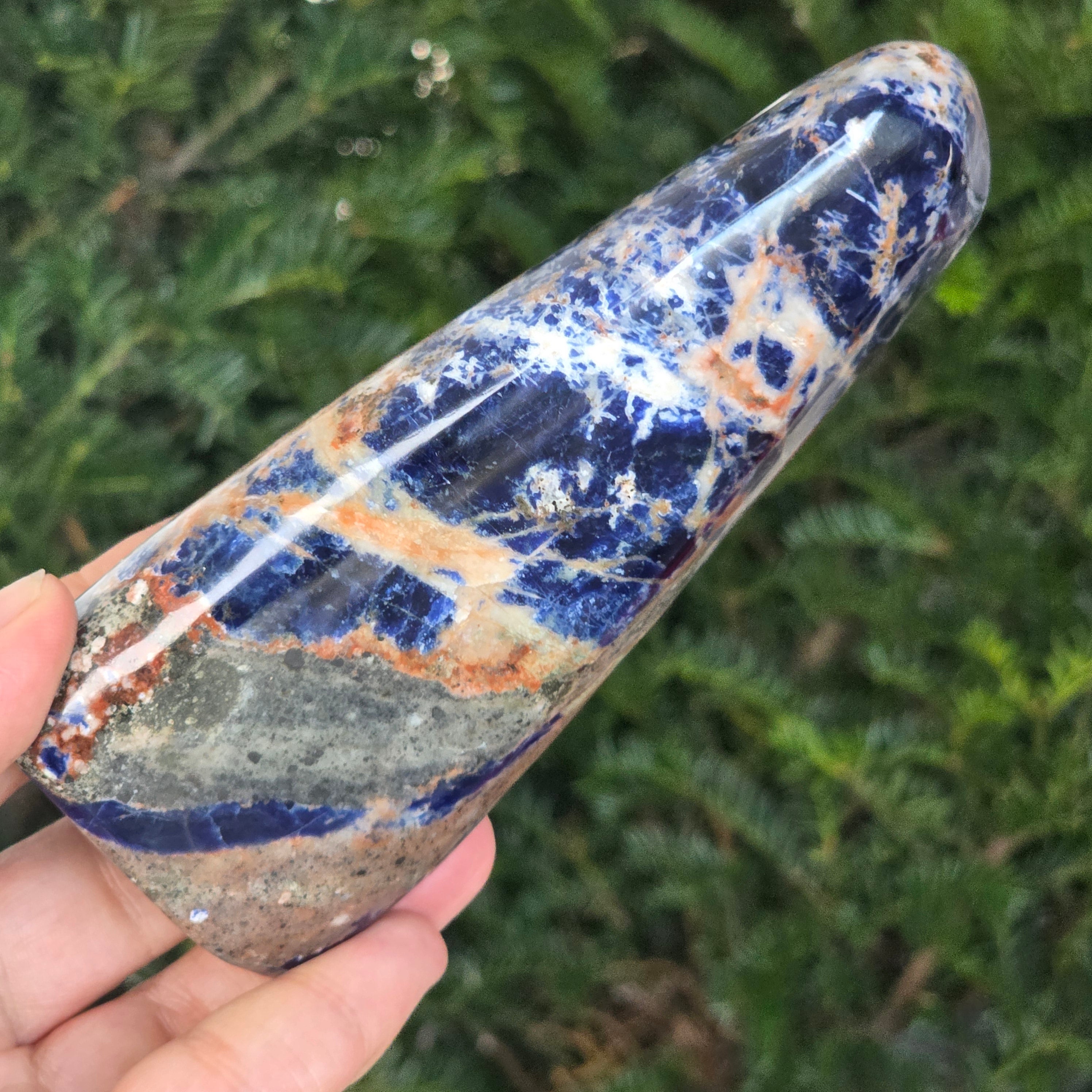 Добави една свободна форма от натурален содалит в колекцията си и остави неговата синя вибрация да донесе яснота, дълбочина и хармония в твоето пространство.