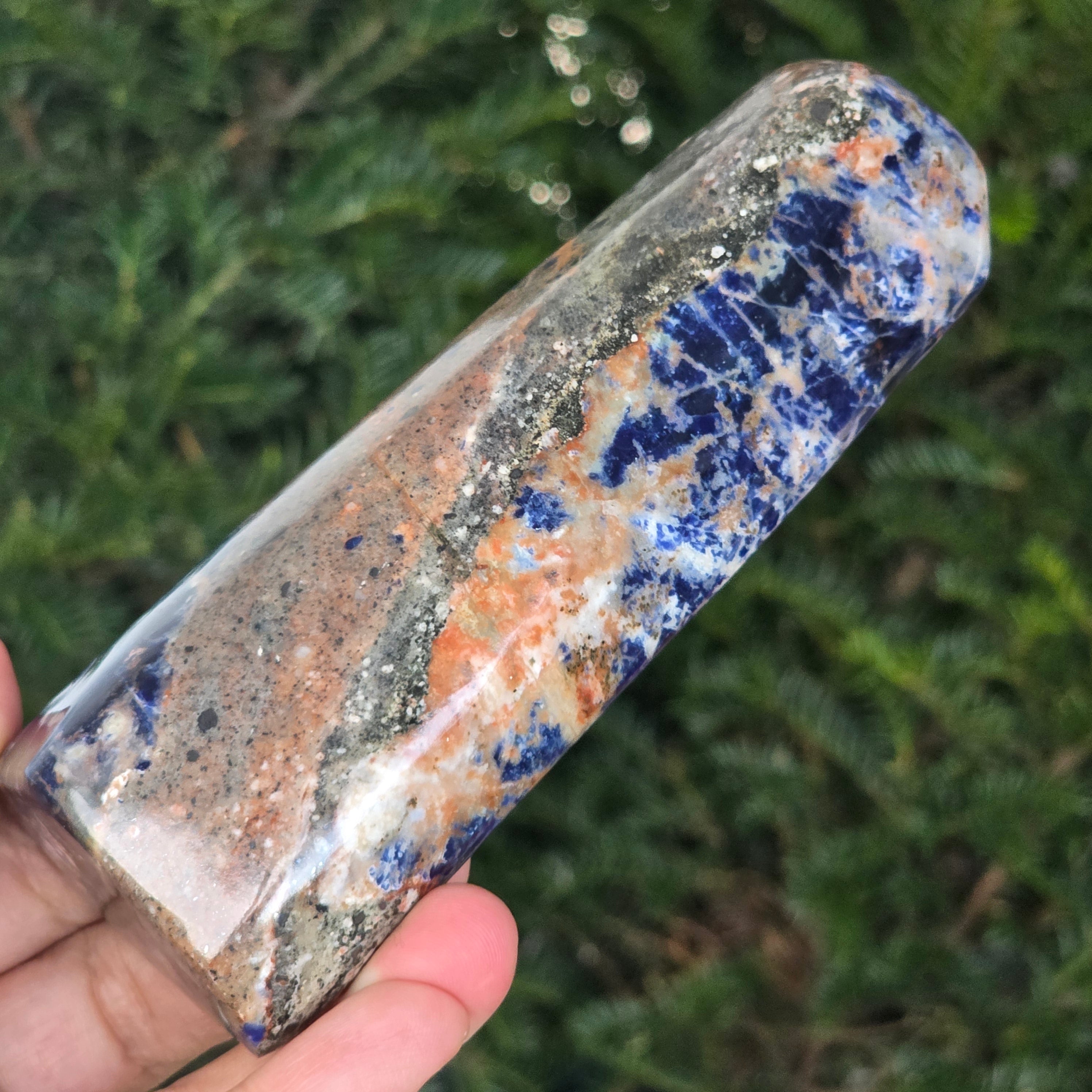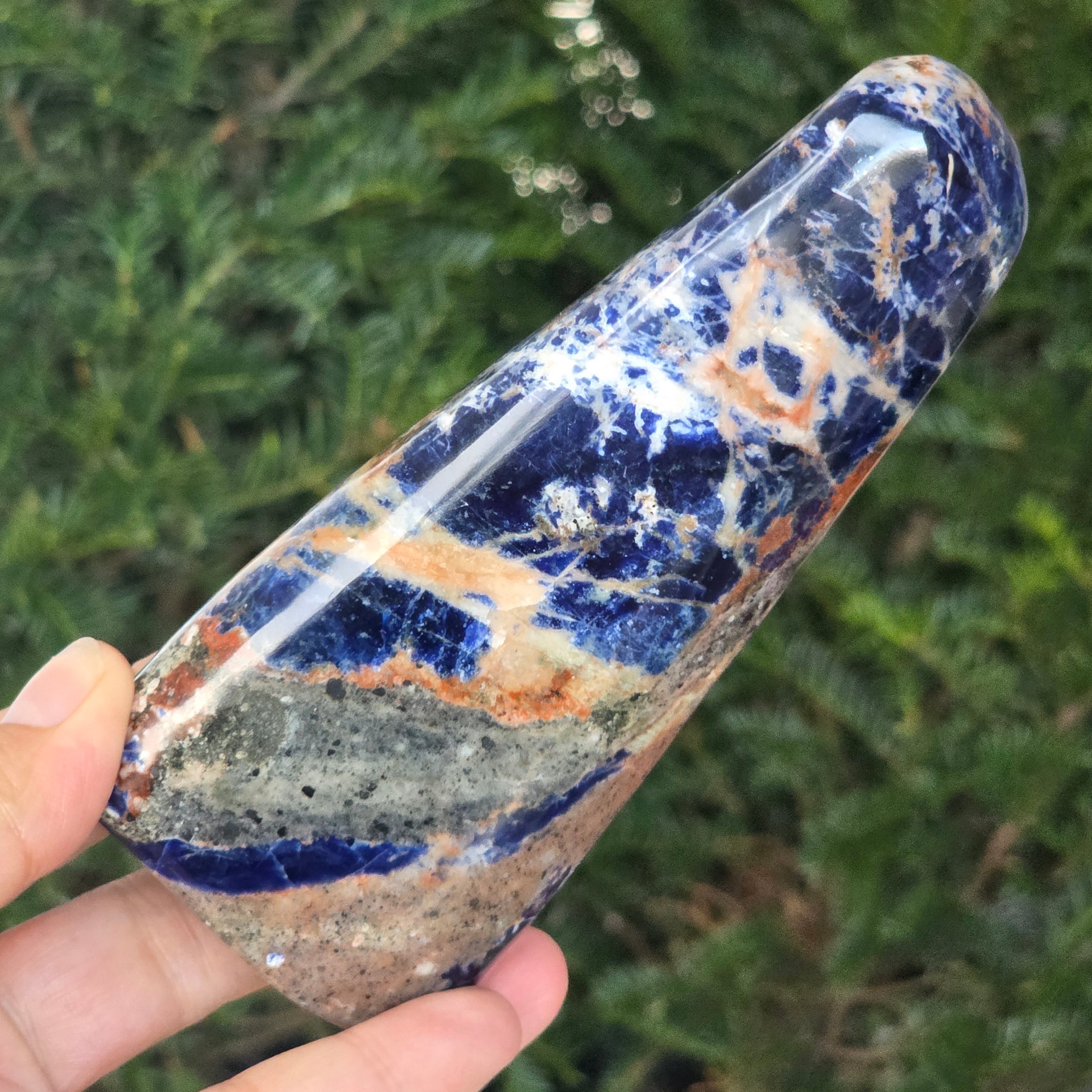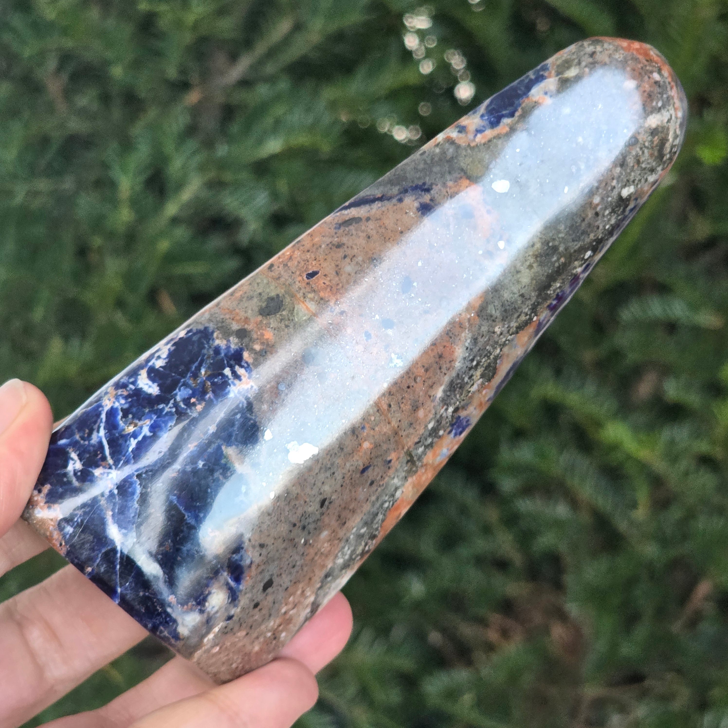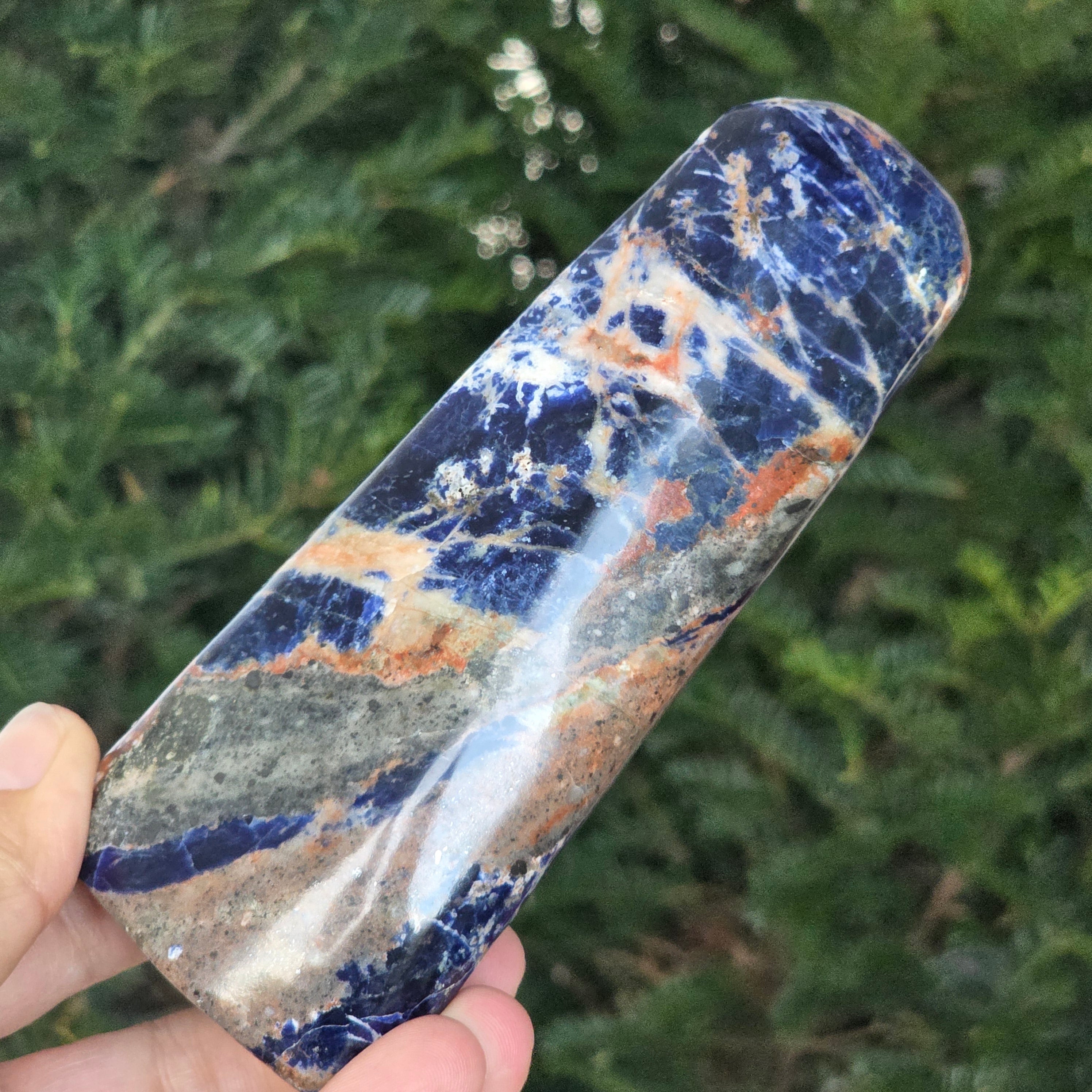 Добави една свободна форма от натурален содалит в колекцията си и остави неговата синя вибрация да донесе яснота, дълбочина и хармония в твоето пространство.