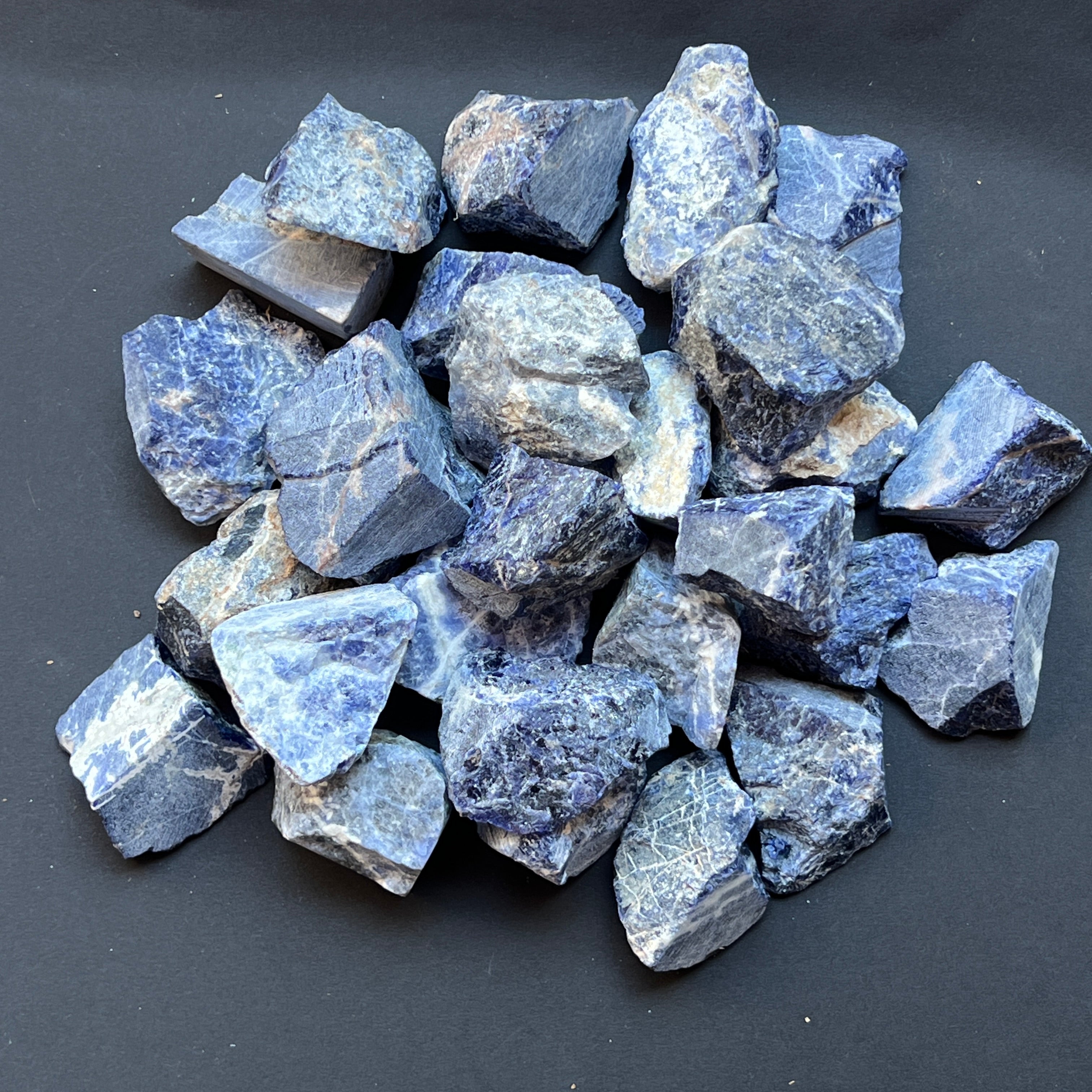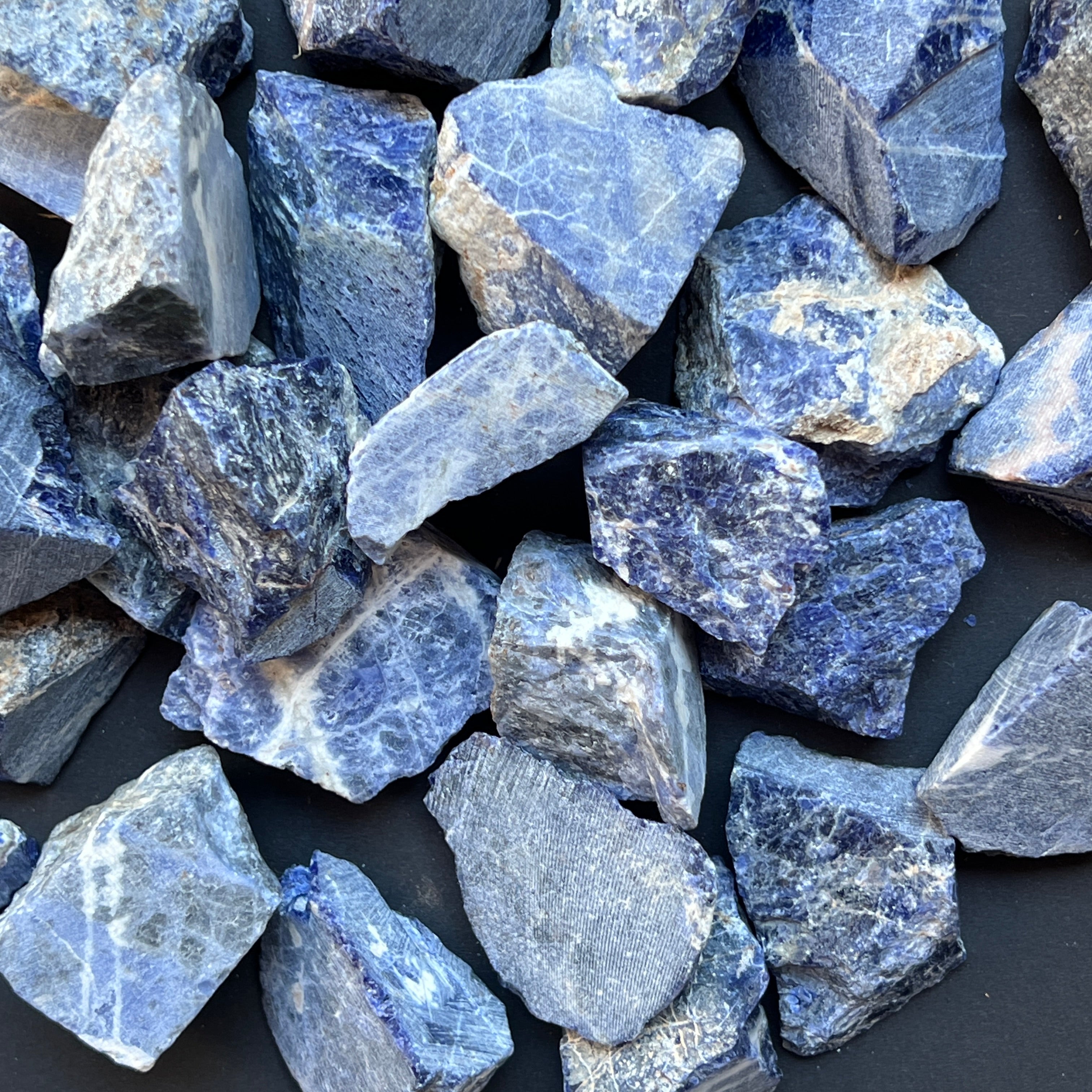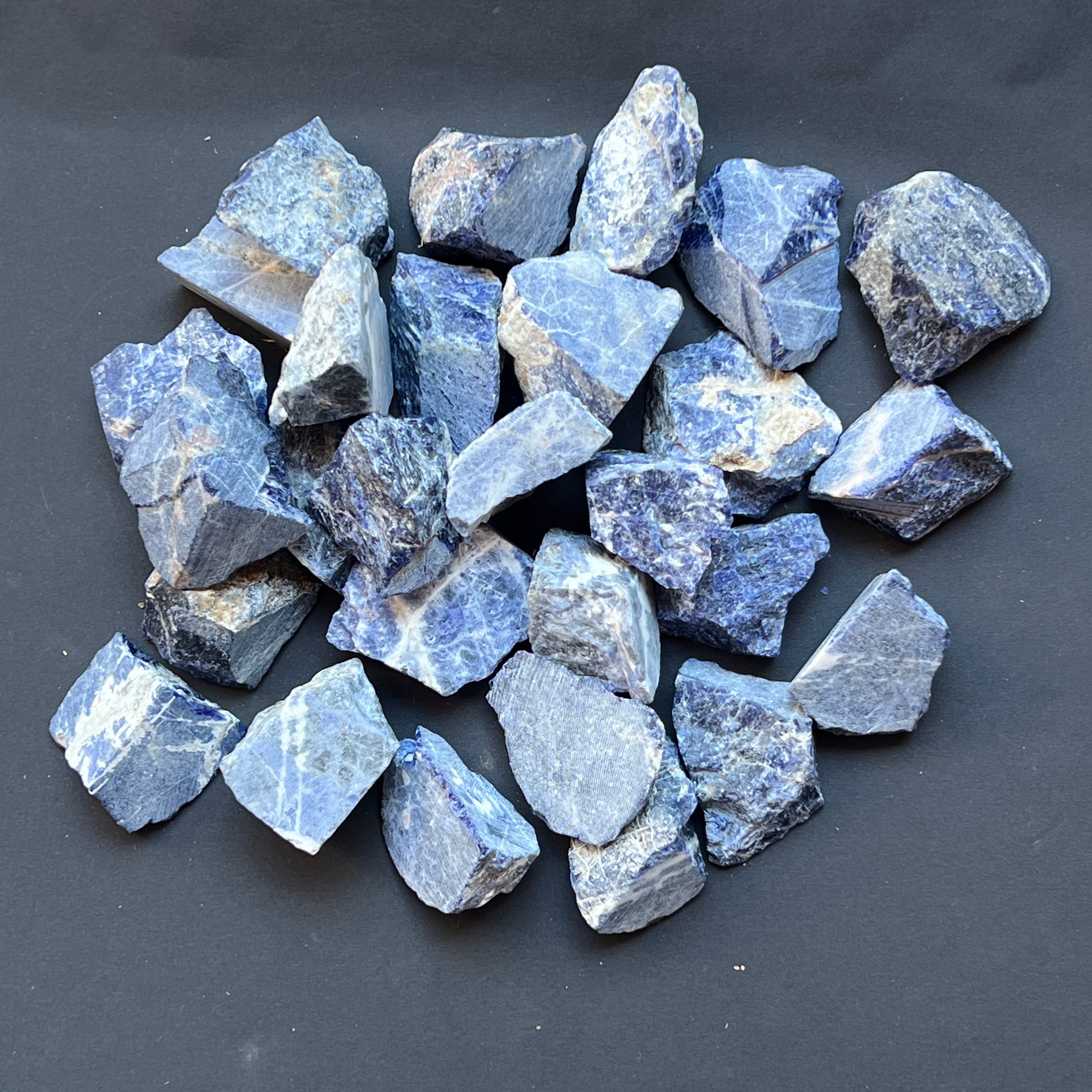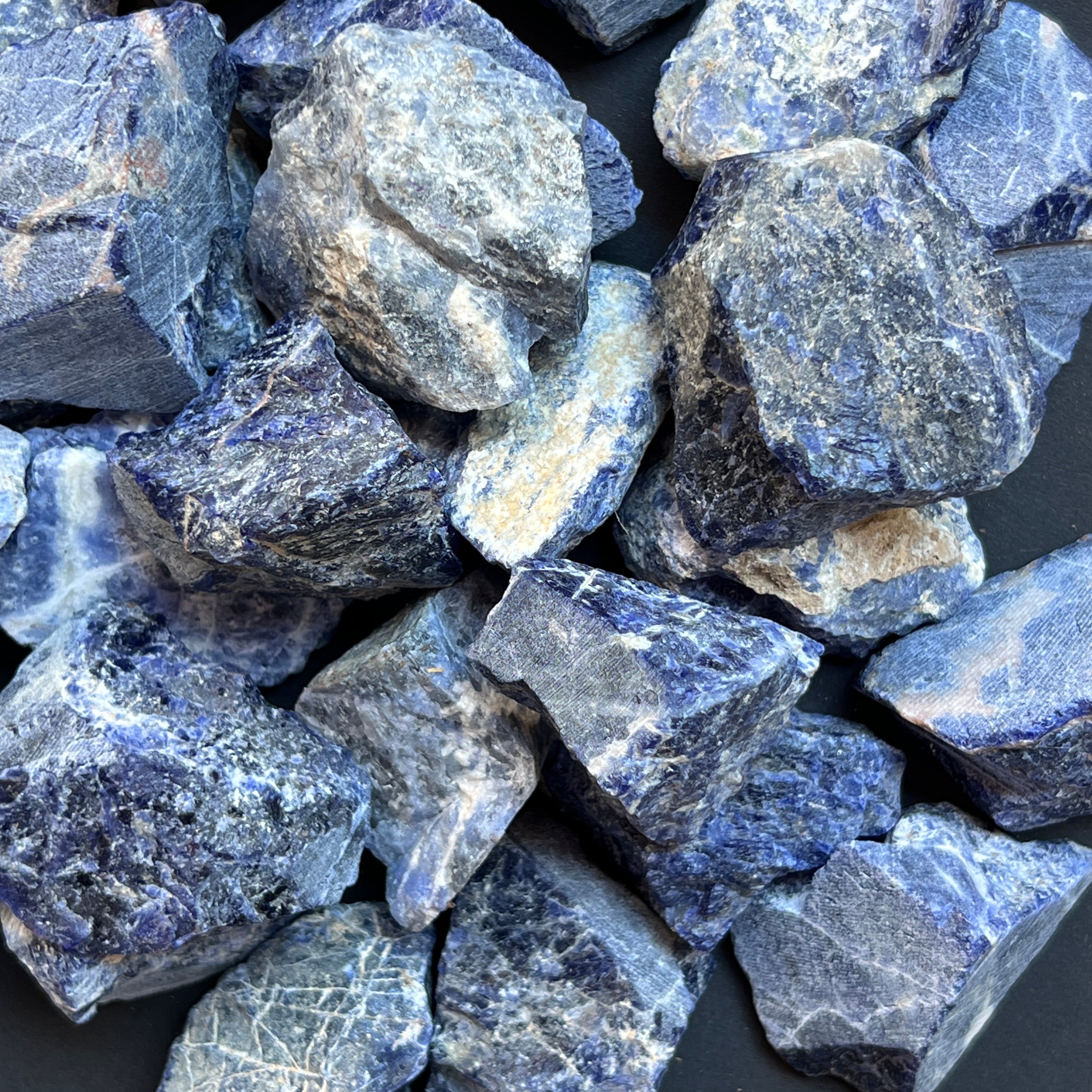 Содалит суров камък, размери между 2,5 и 4 см. Цената варира в зависимост от размера на камъка, моля изберете желания размер.