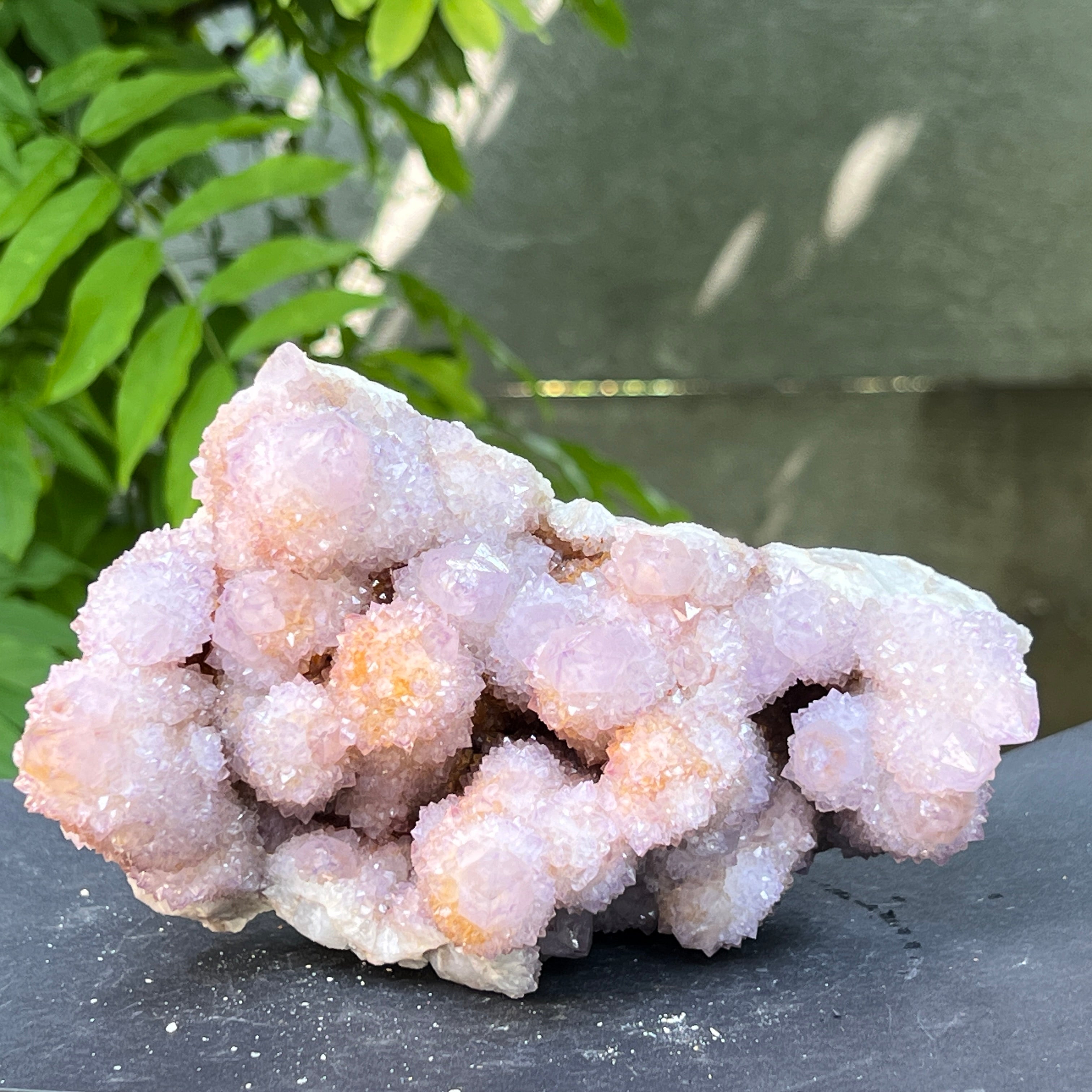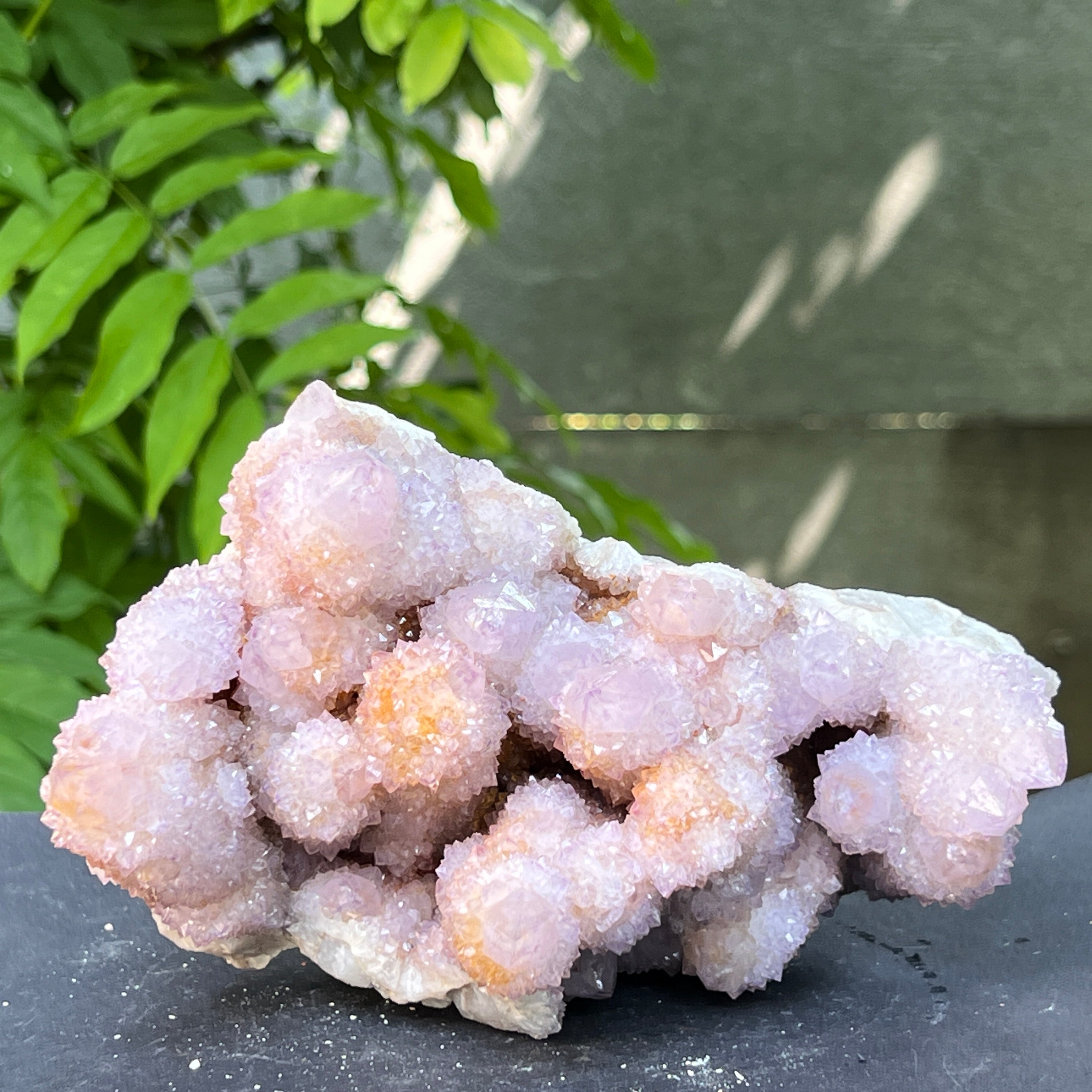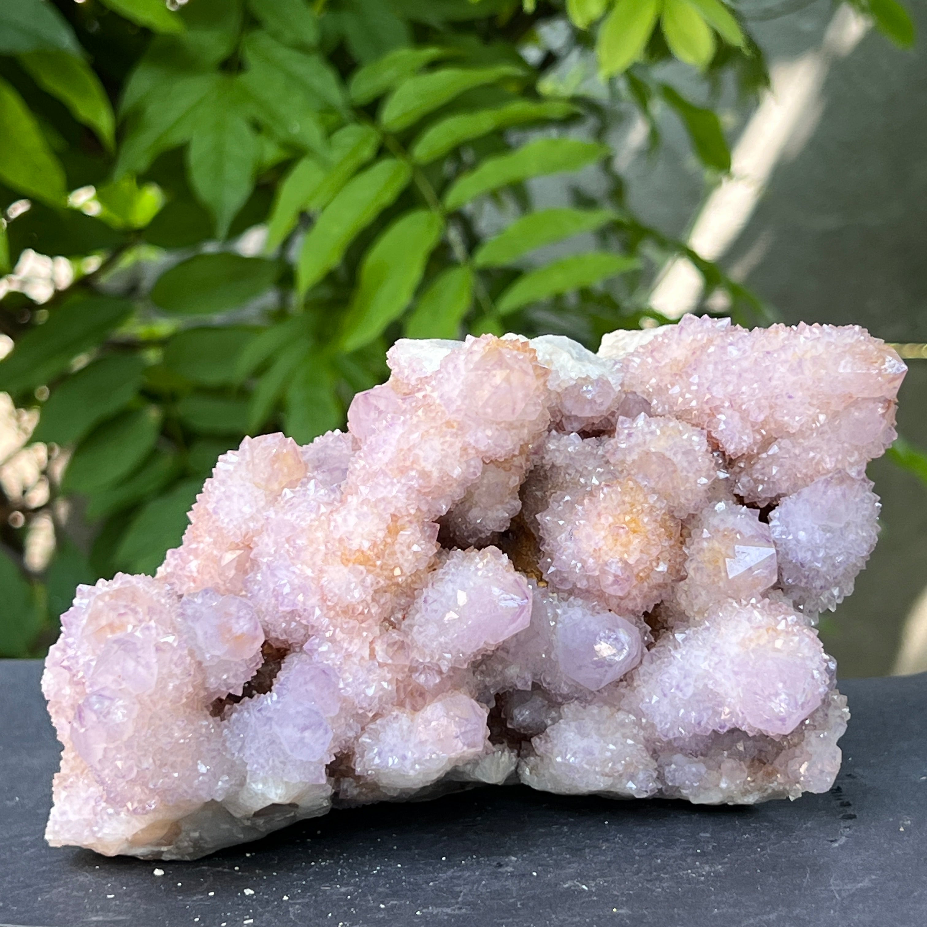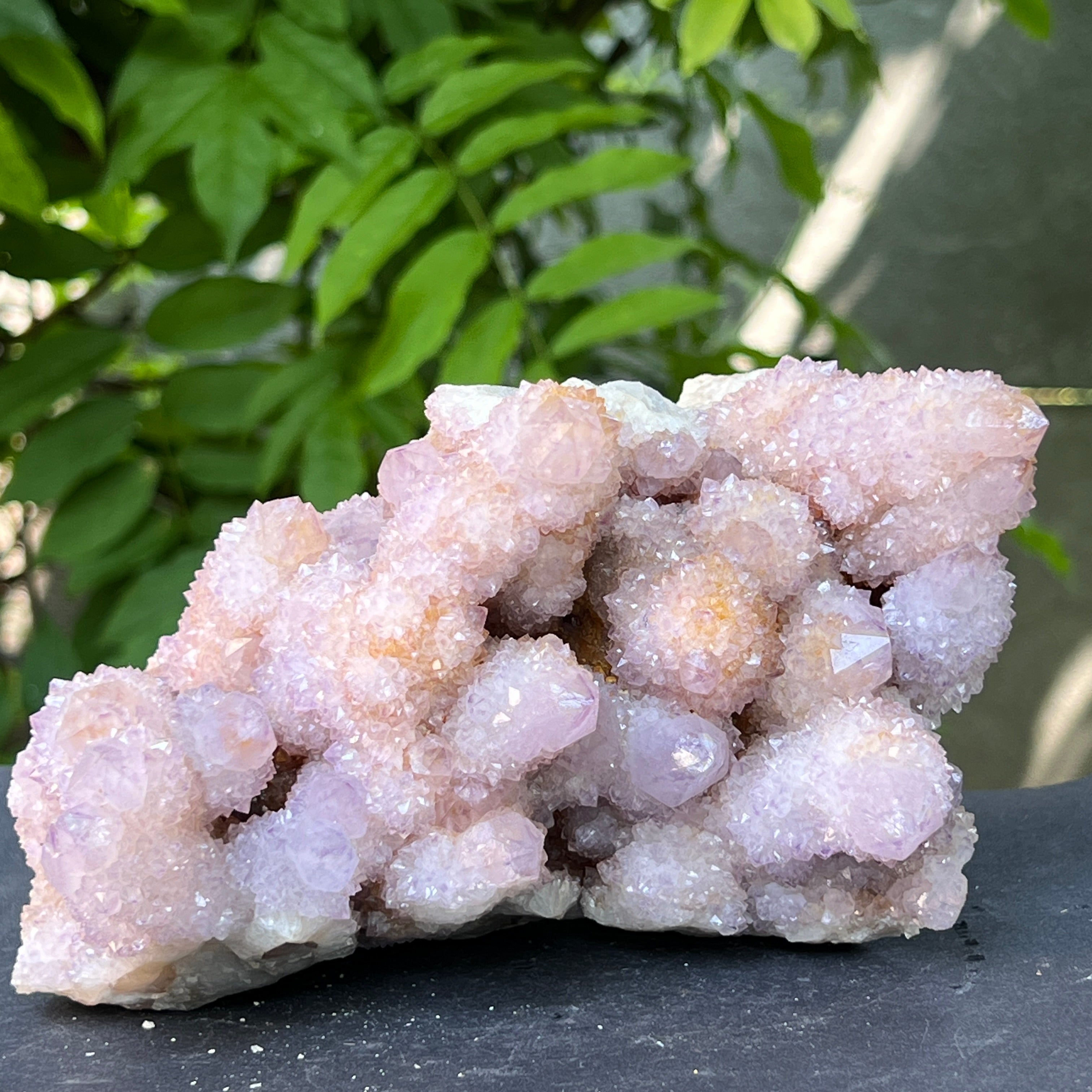 Произходът му е от Южна Африка, този уникален образец съчетава дълбоката енергия на кварца със високите вибрации на аметиста. Това е камък на сътрудничеството и духовната общност, символ на хармонията между индивидуалността и единството. Всеки малък кристал излъчва от общия център, като мрежа от съзнания в перфектна хармония.