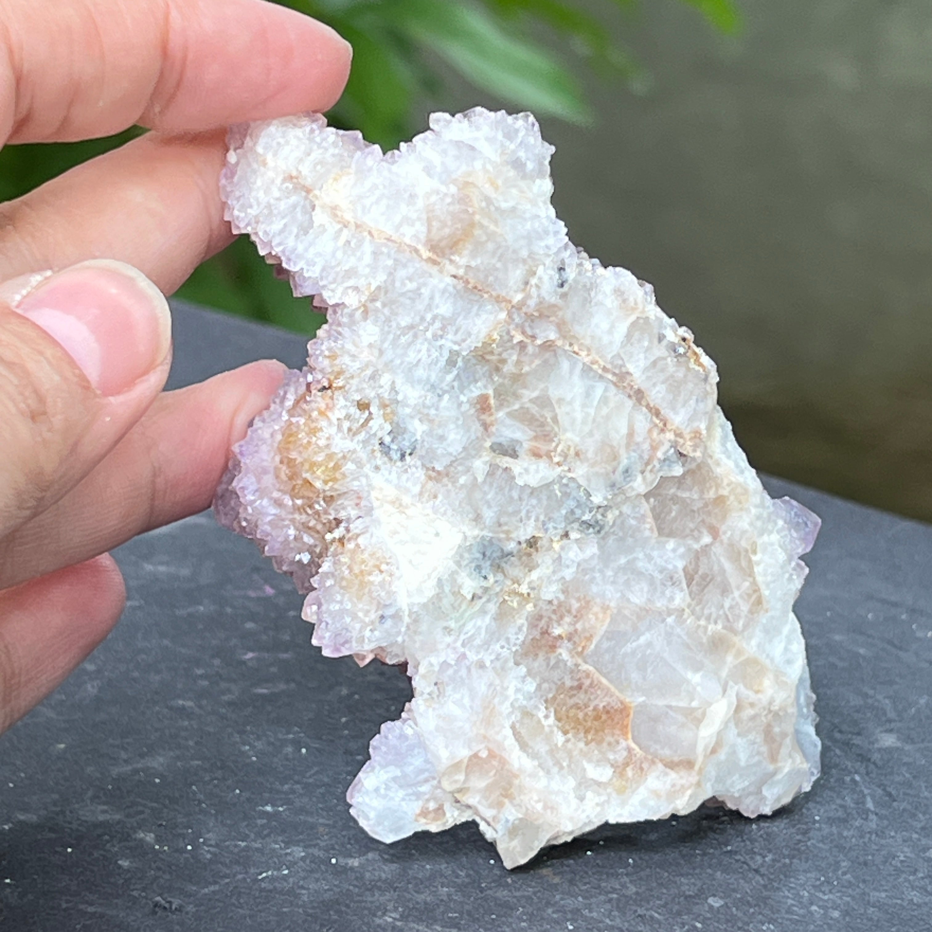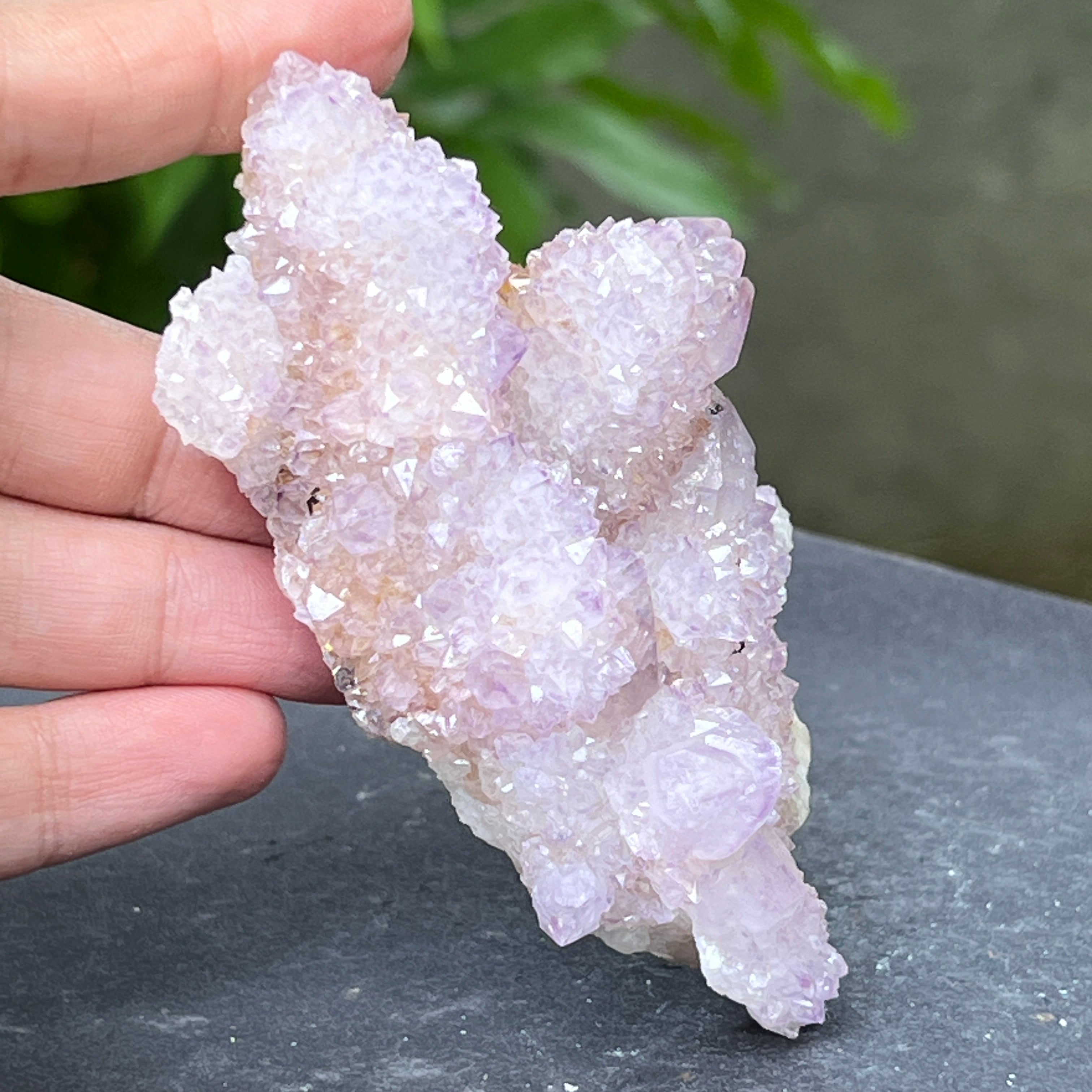 Произходът му е от Южна Африка, този уникален образец събира дълбоката енергия на кварца с висшите вибрации на аметиста. Той е камък на сътрудничеството и духовната общност, символ на хармонията между индивидуалността и единството. Всеки малък кристал излъчва от общия център, като мрежа от съзнания в перфектна хармония.