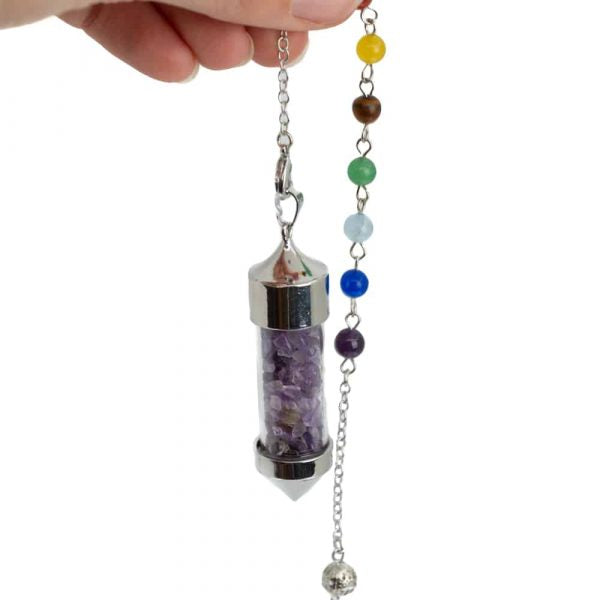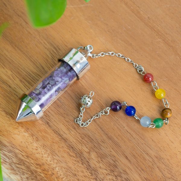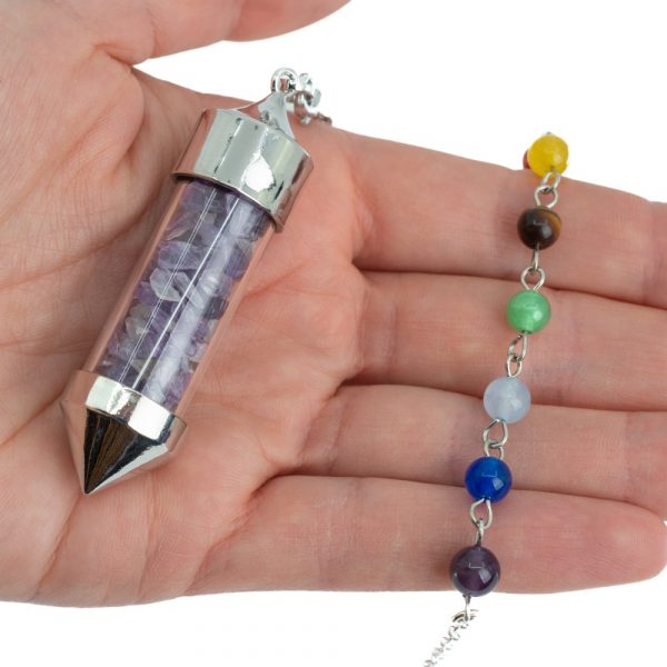 Ревюта – Сребрист метален махало с малки аметистови камъни