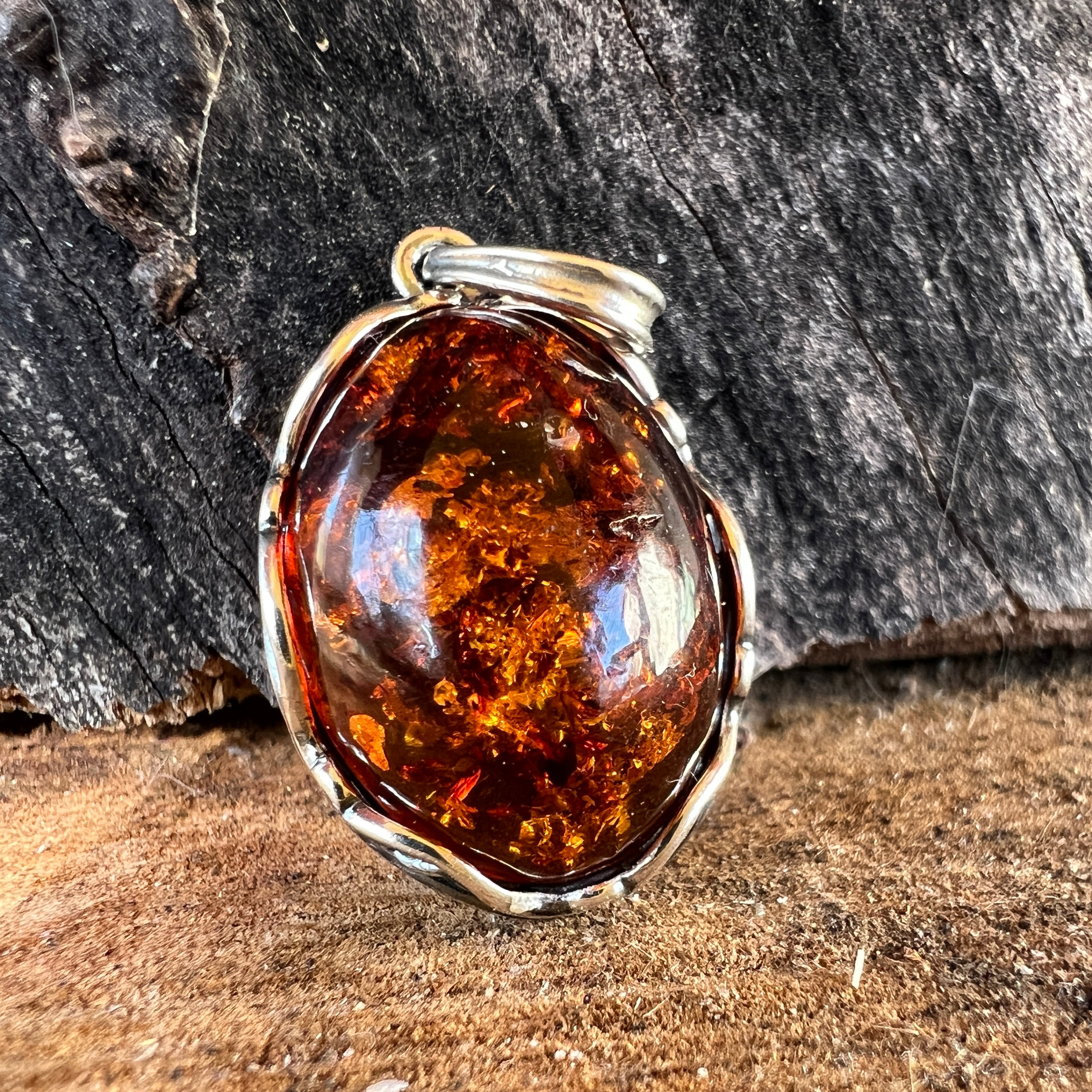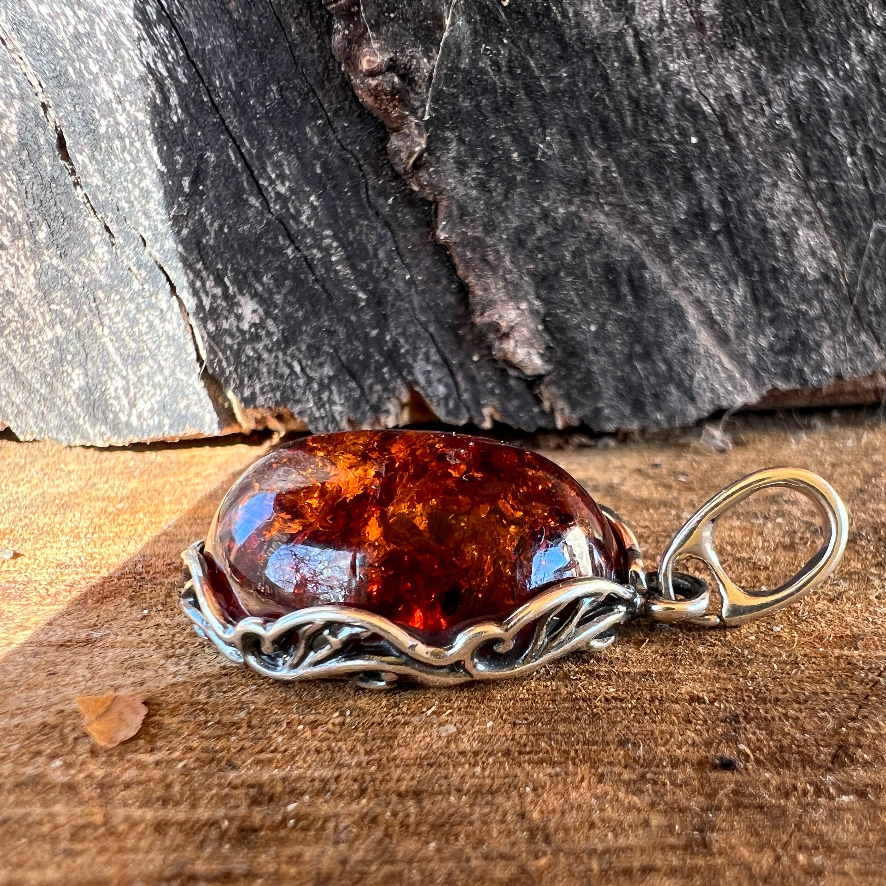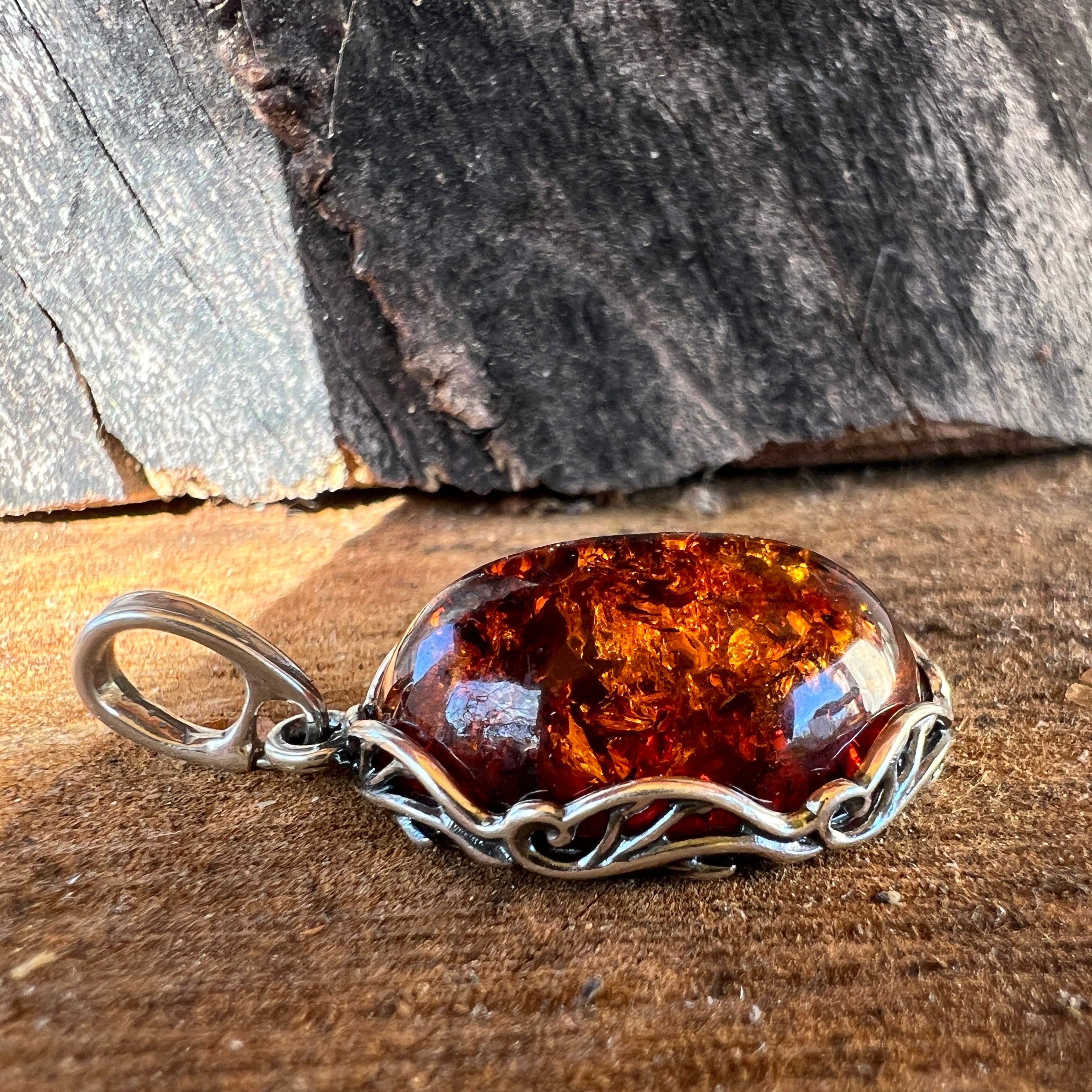 Ревюта – Сребърен висулка с кехлибар Amber12