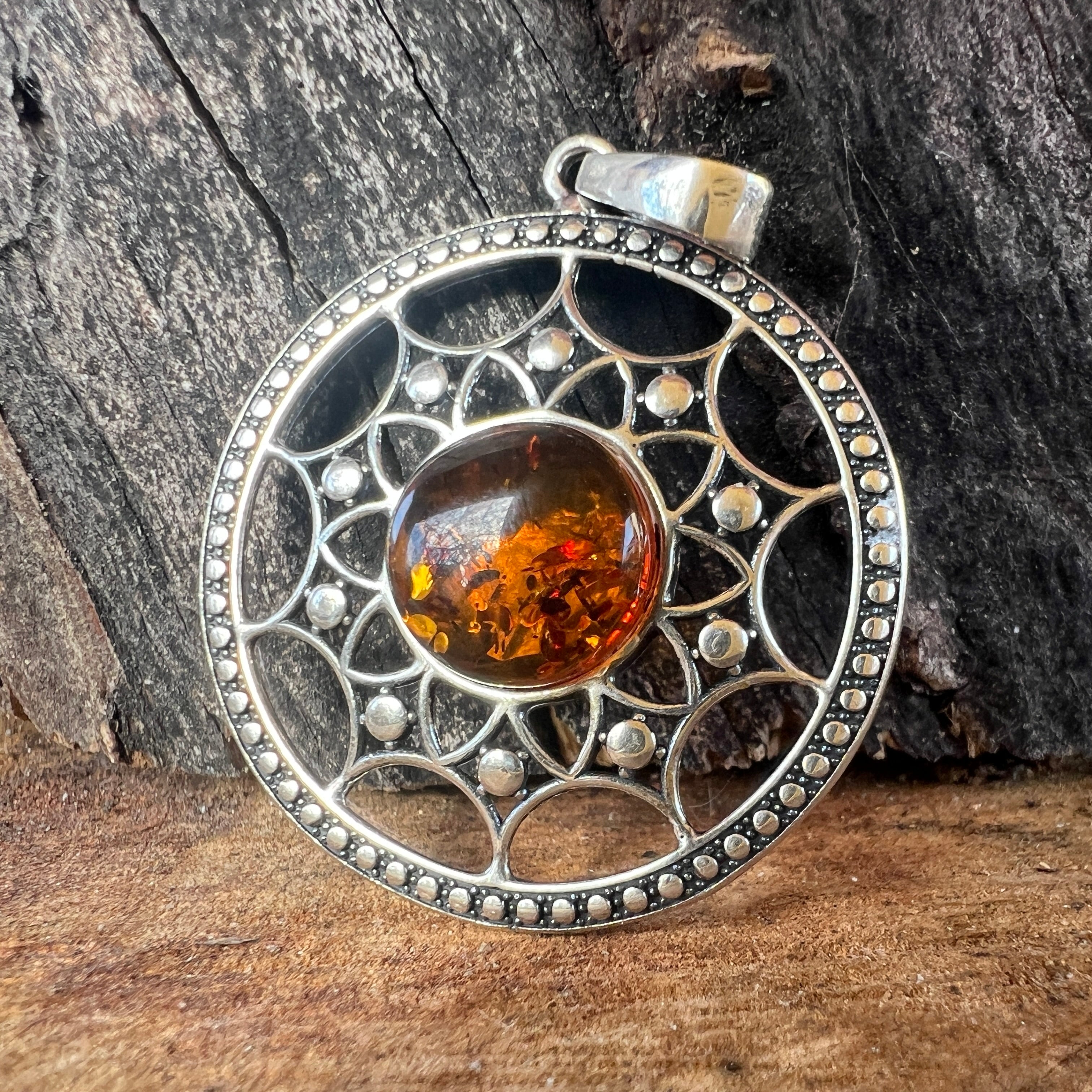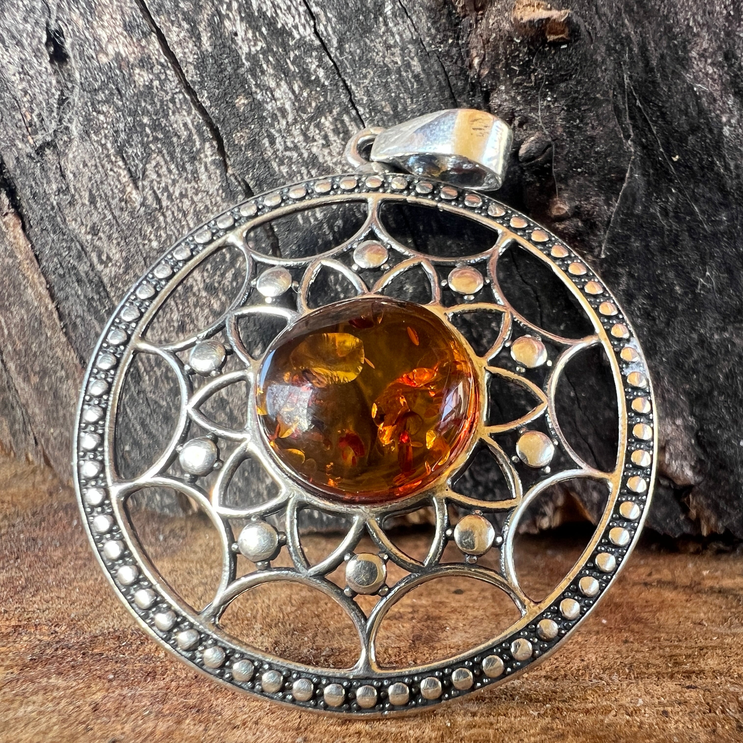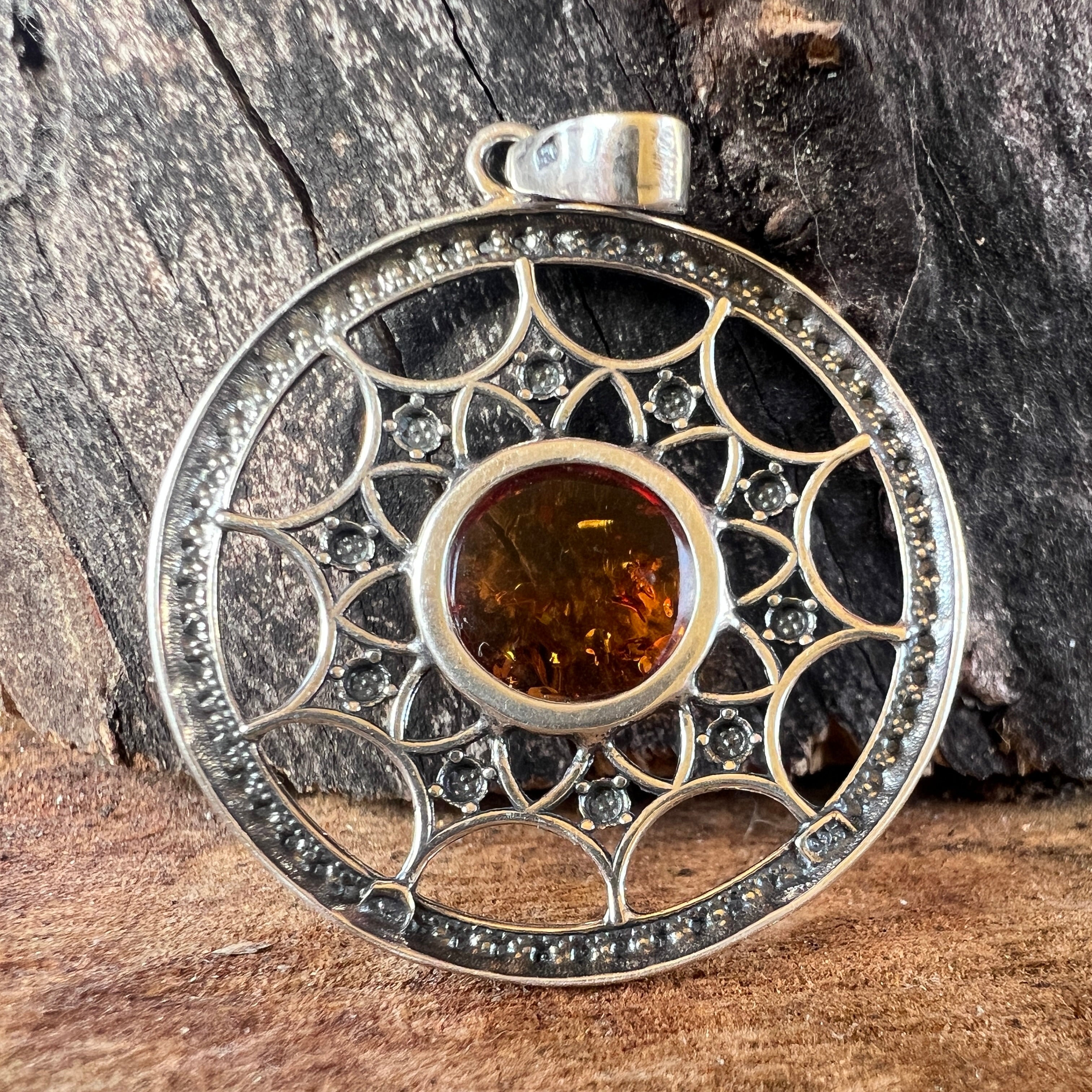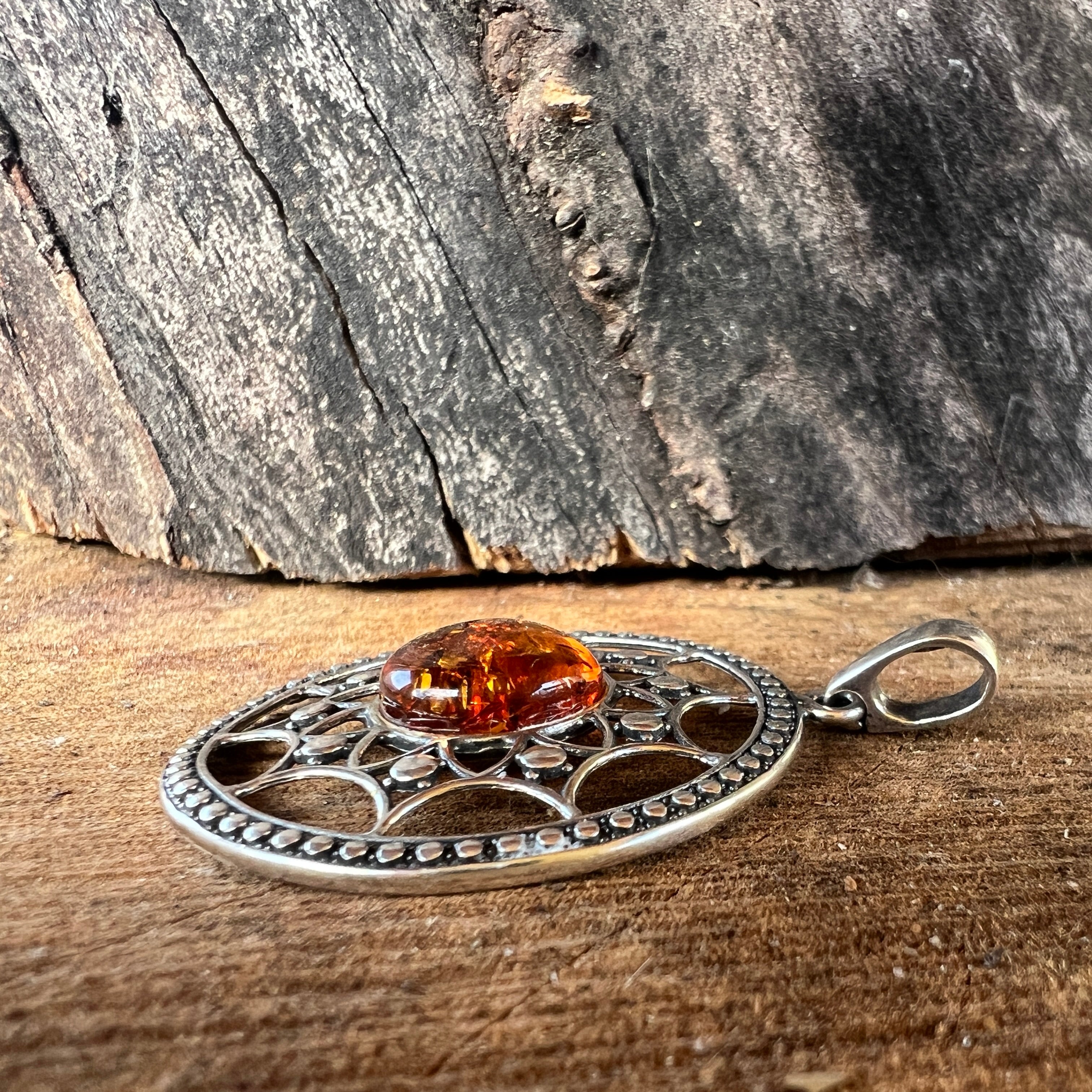 Ревюта – Сребърен висулка с кехлибар Amber21